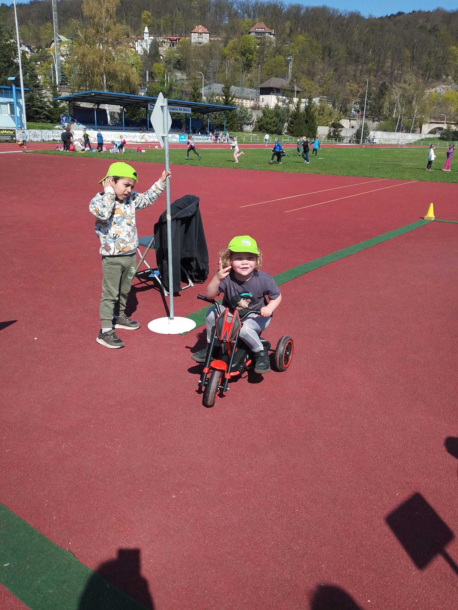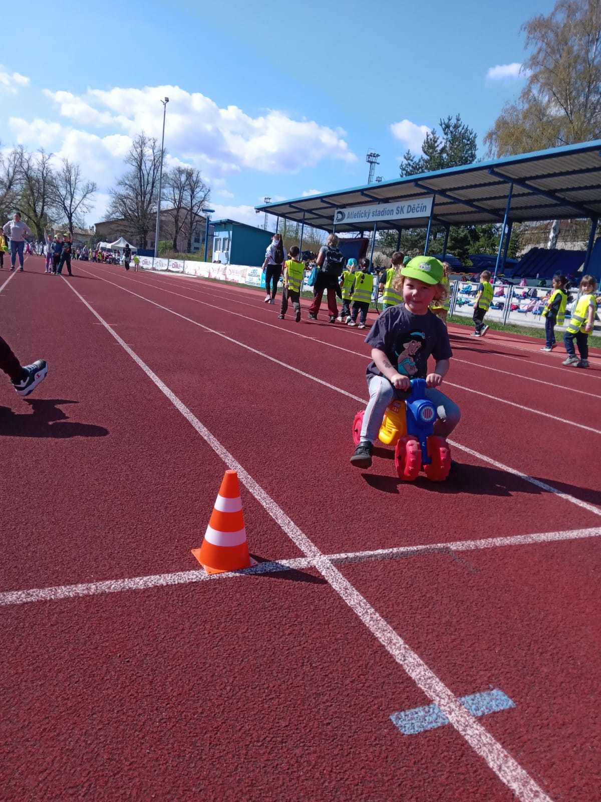 V pátek 17.4.2026 jsme se s dětmi vydali na Dopravní den pro MŠ na atletické hřiště v Děčíně. Museli jsme sice vyrazit opravdu brzy ráno, ale rozhodně se to vyplatilo. Už samotná cesta byla pro děti velkým zážitkem – jeli jsme vlakem a zpět jsme se vraceli autobusem. Počasí nám navíc přálo, svítilo sluníčko a celý den bylo krásné teplo.