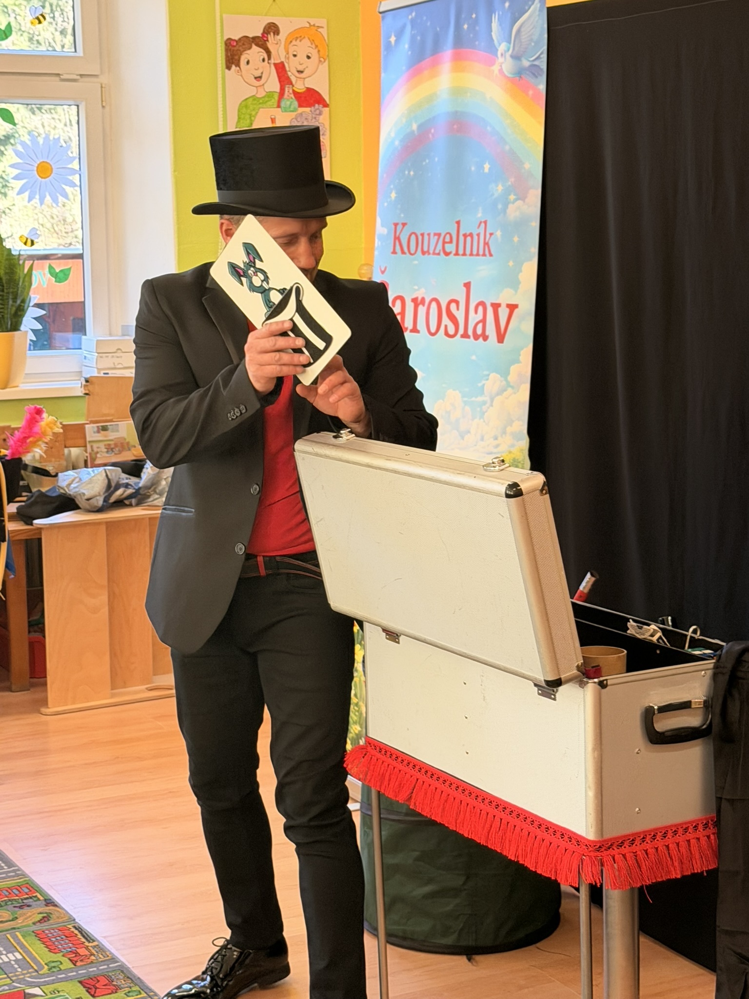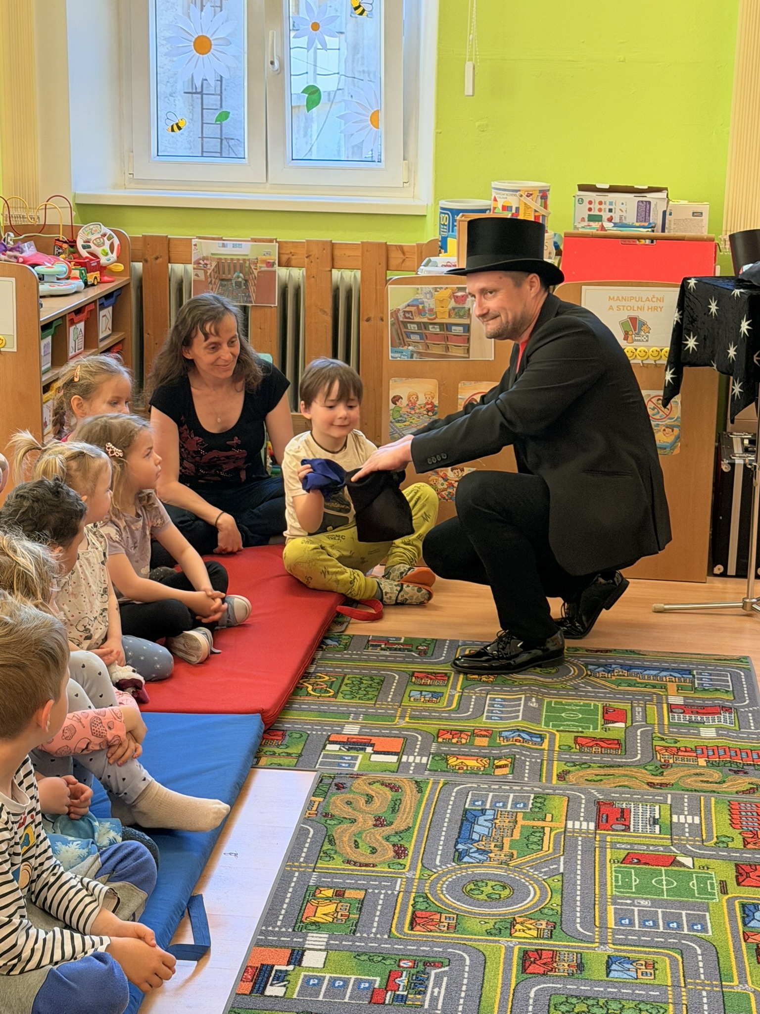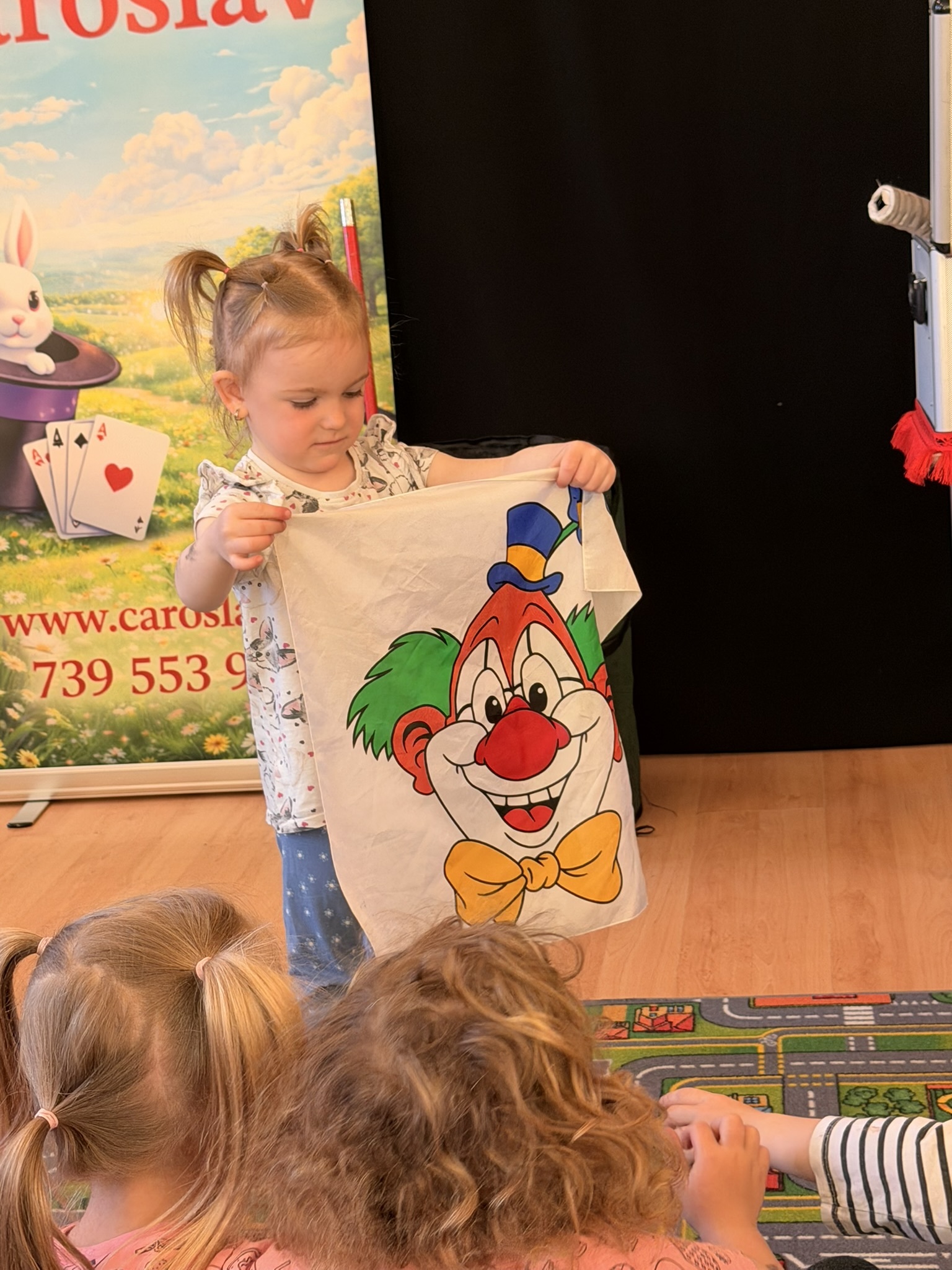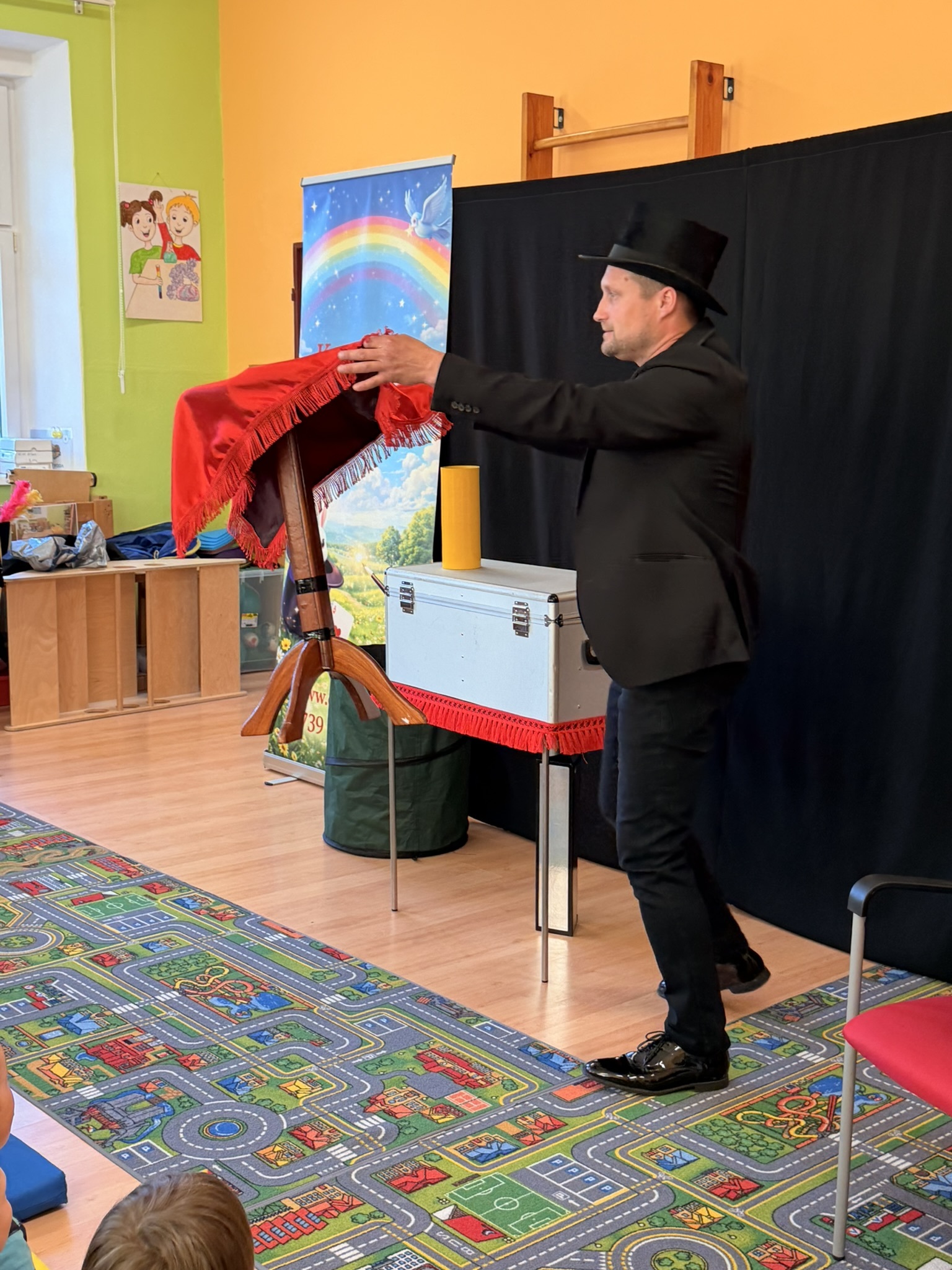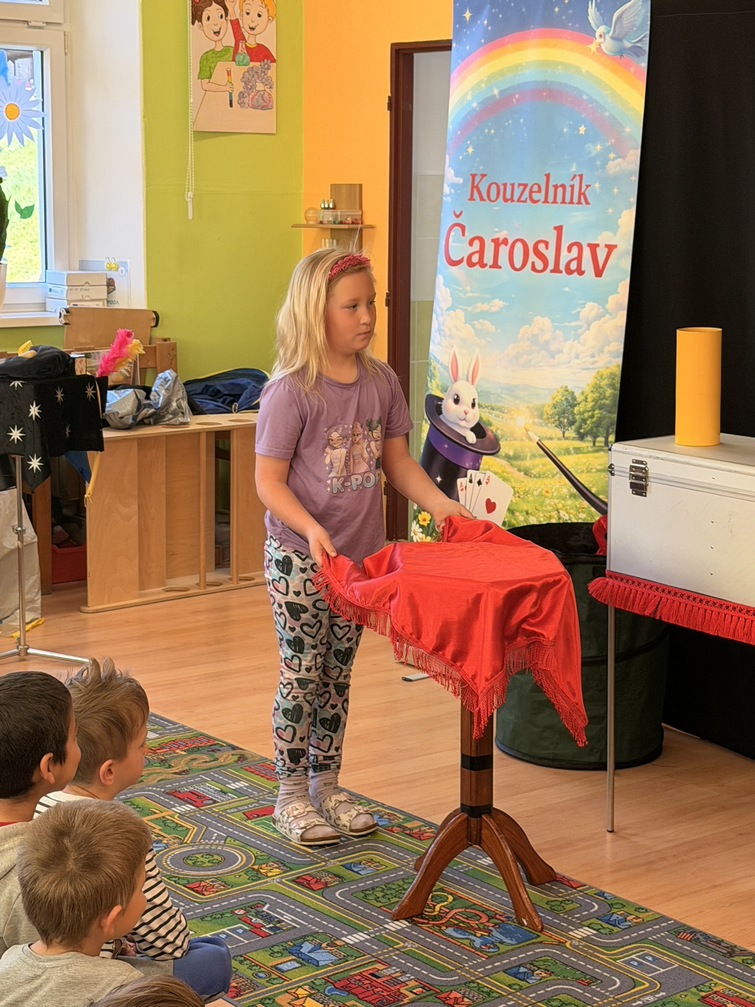 Dnešní den nám zpestřil svou návštěvou kouzelník Čaroslav, který si získal pozornost dětí hned v první minutě svého vystoupení. Od samého začátku bylo jasné, že nás čeká nezapomenutelná show plná překvapení, smíchu a úžasu.