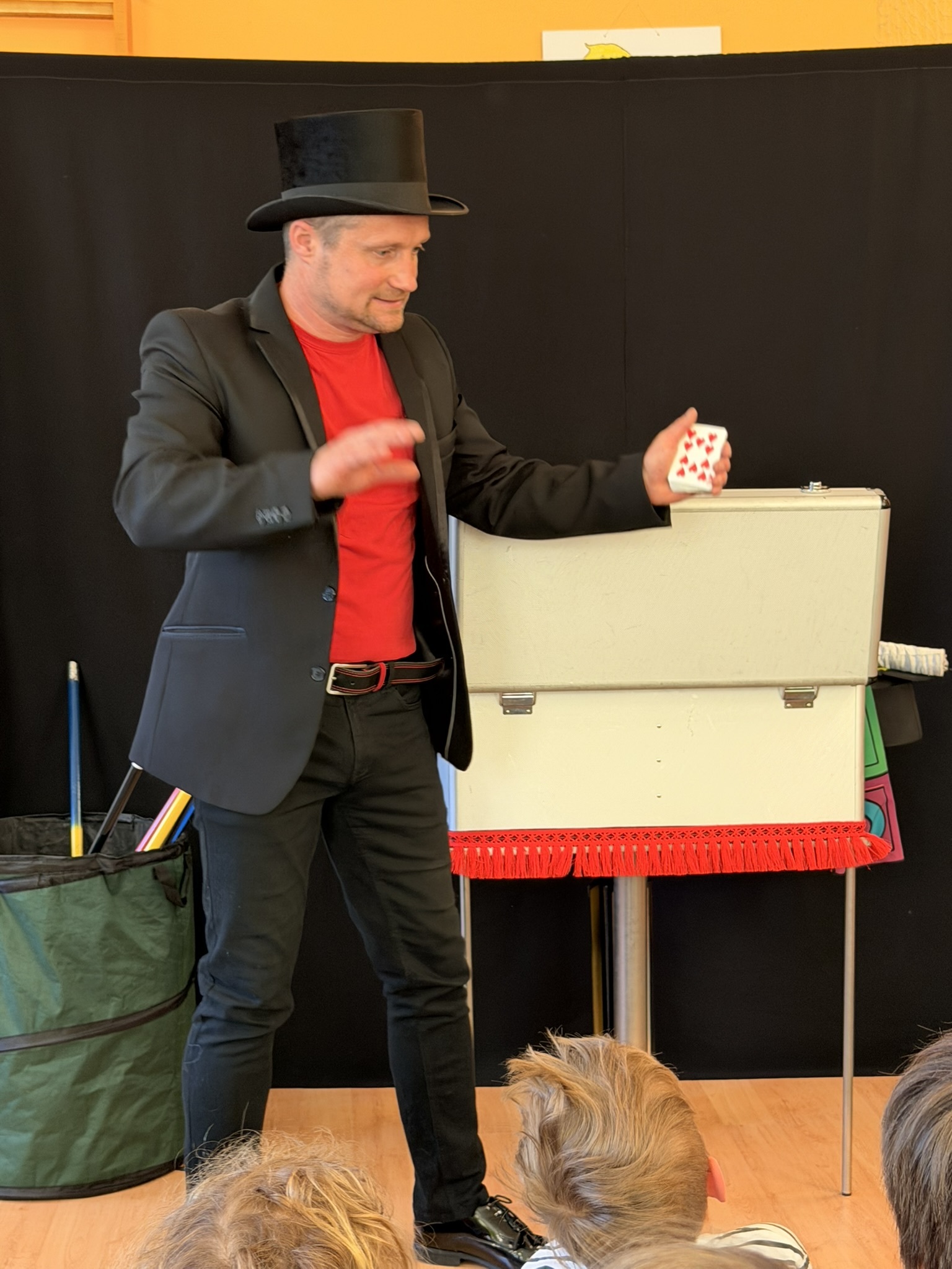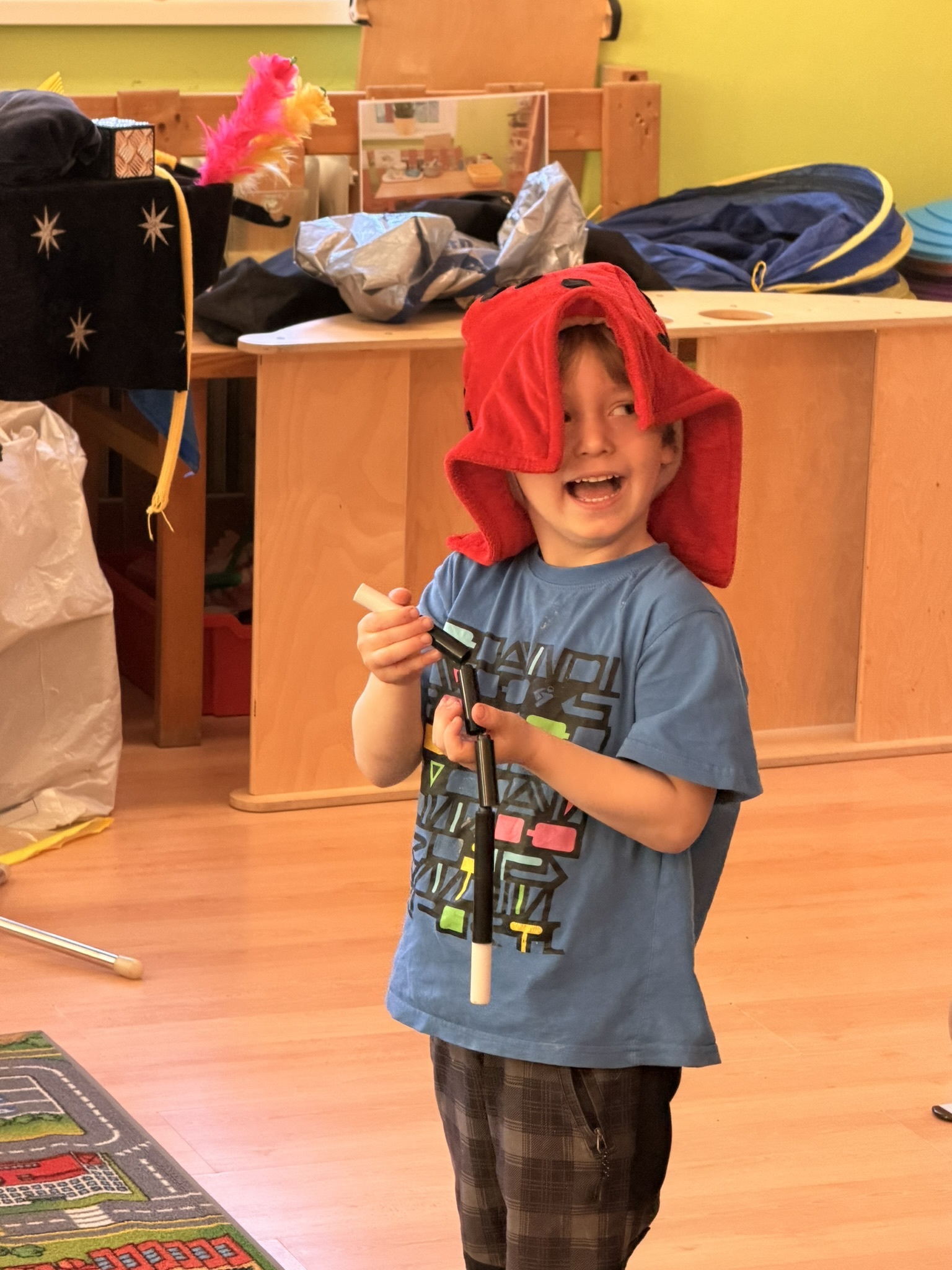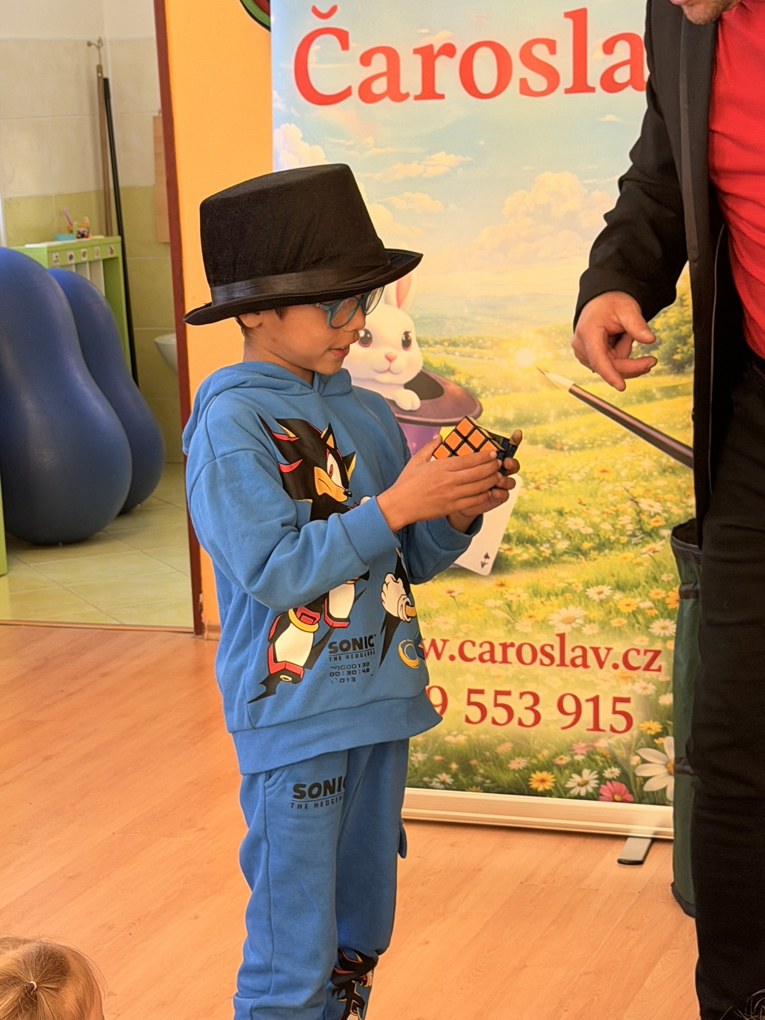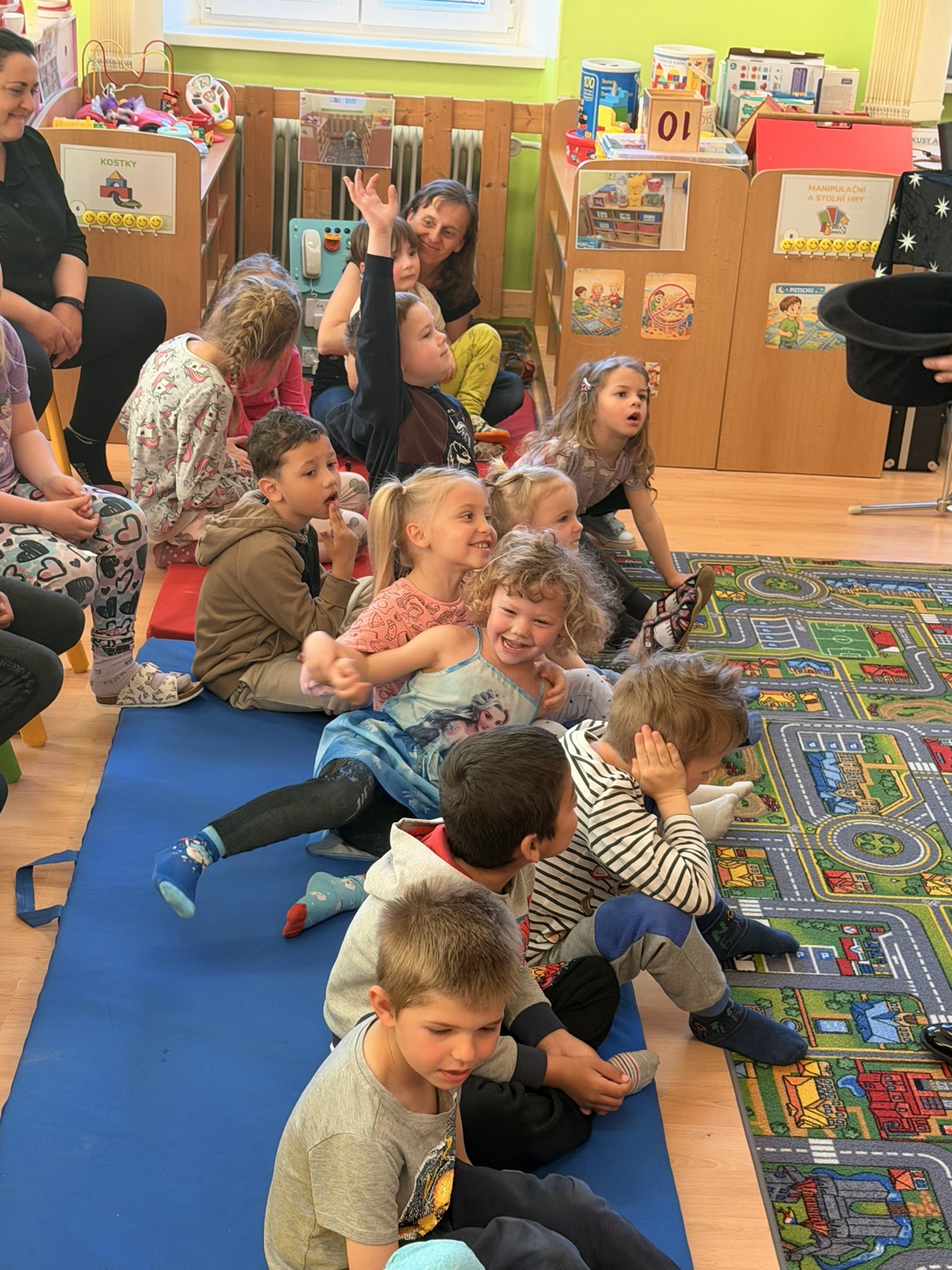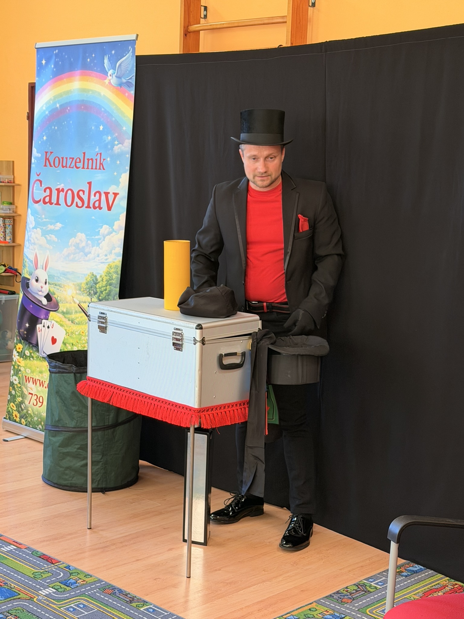 Dnešní den nám zpestřil svou návštěvou kouzelník Čaroslav, který si získal pozornost dětí hned v první minutě svého vystoupení. Od samého začátku bylo jasné, že nás čeká nezapomenutelná show plná překvapení, smíchu a úžasu.
