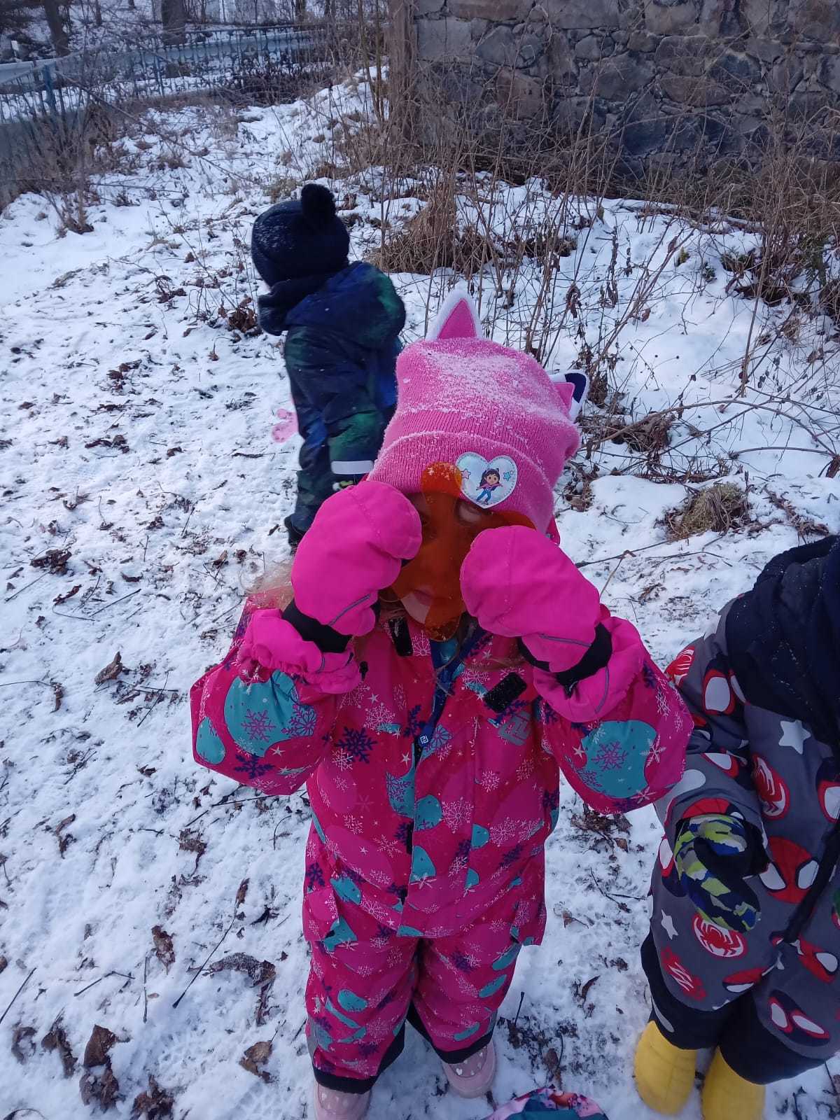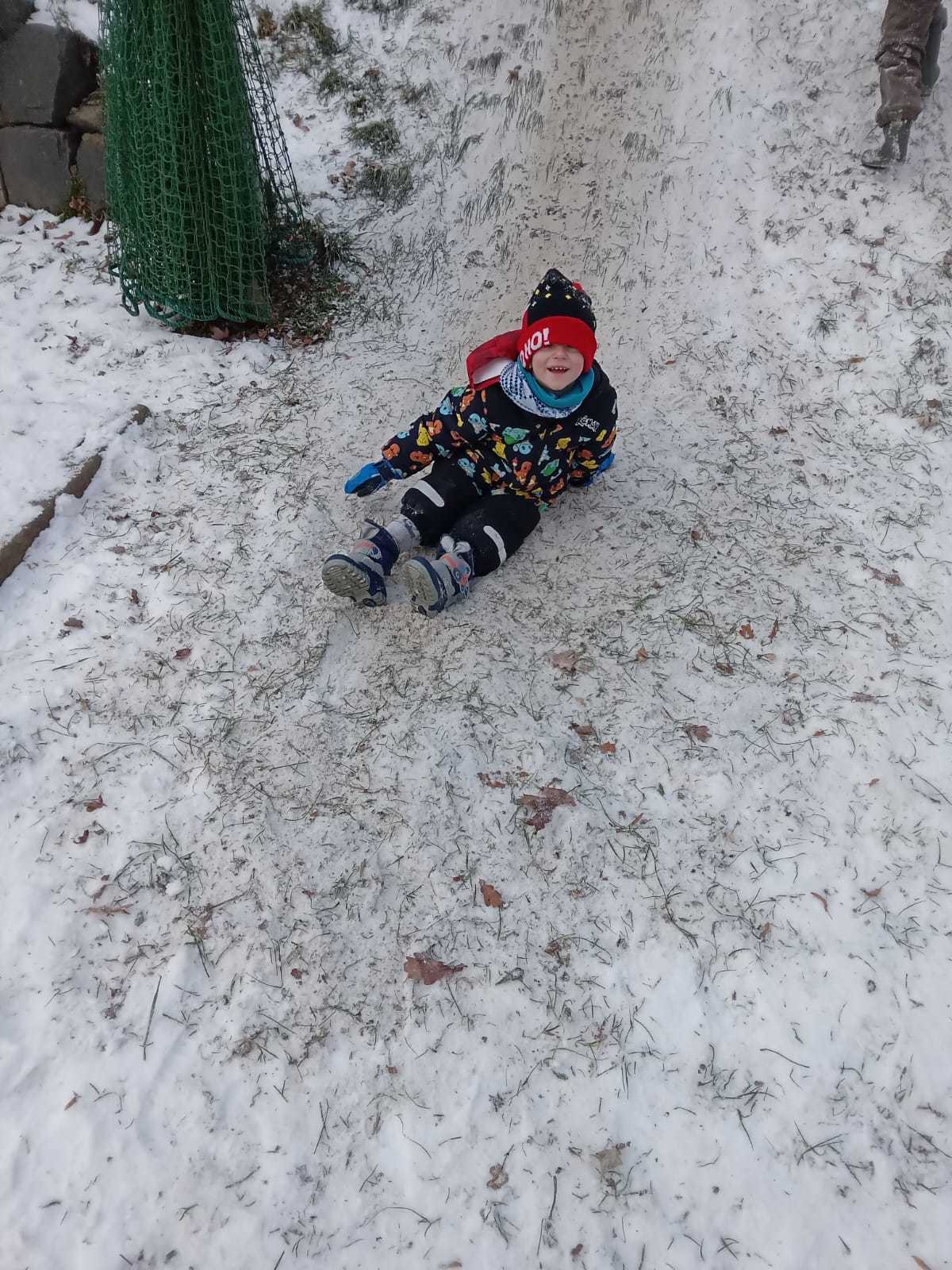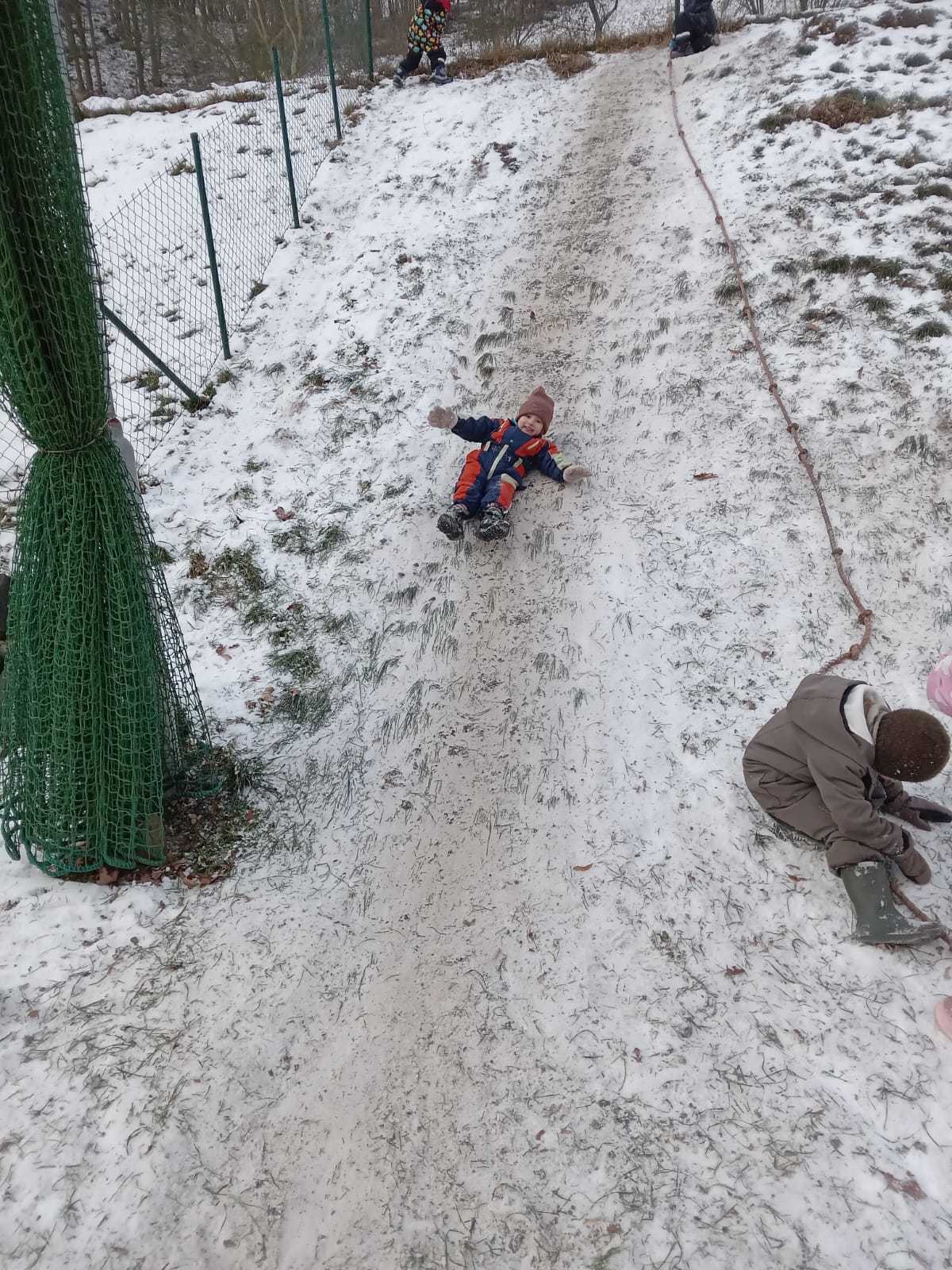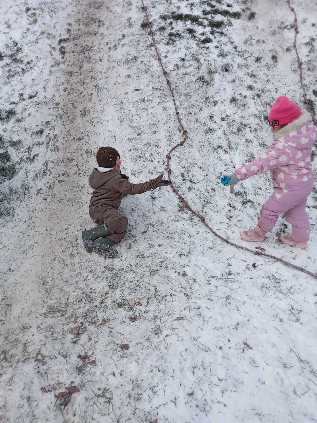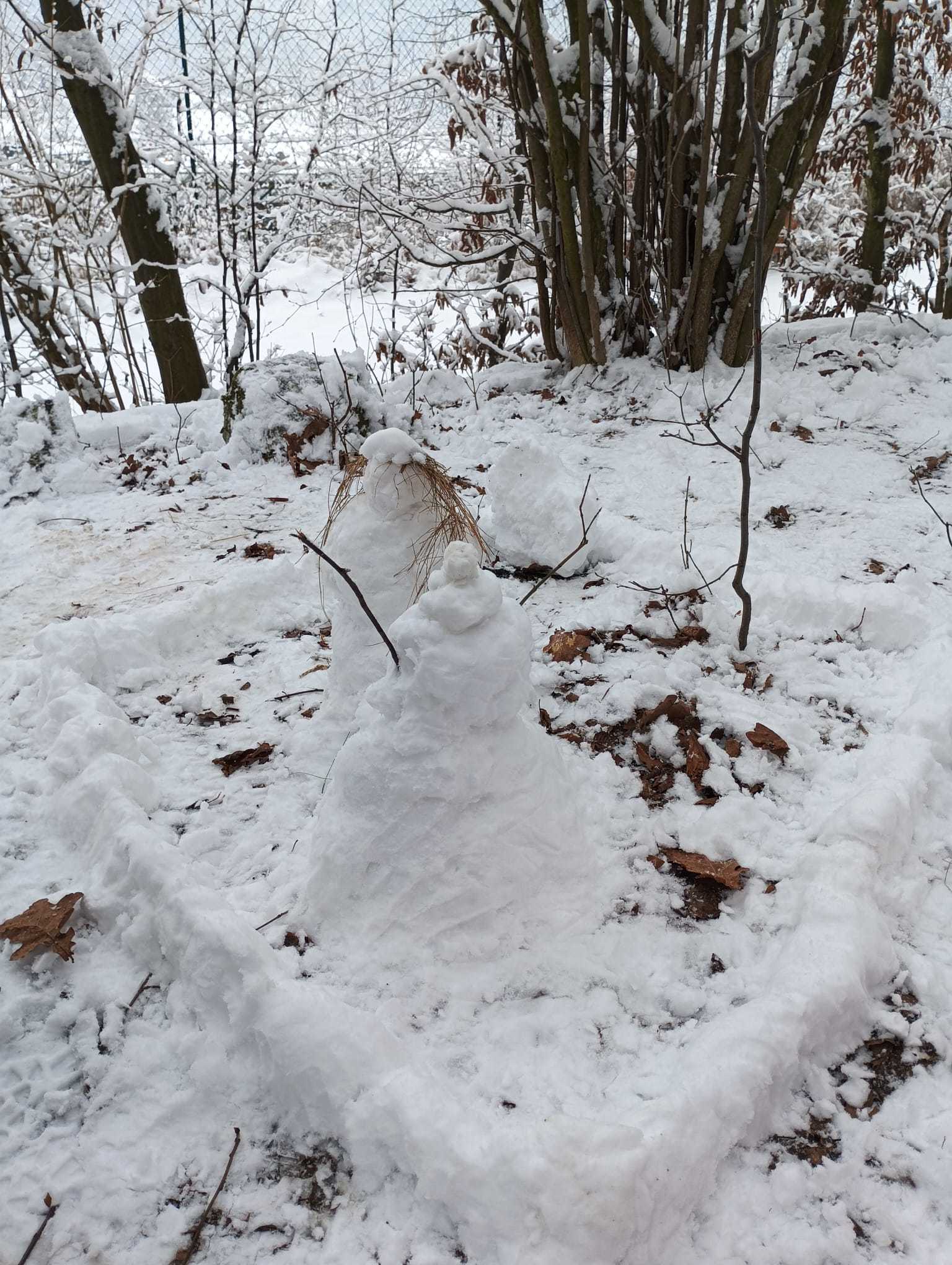 Poslední týden jsme sníh využili do poslední vločky! Každý den jsme trávili venku. Dokud sníh nebyl cvičili jsme s obručemi a míči, ale jakmile napadl, vytáhli jsme ježdíky. Pomáhali jsme odklízet sníh z cesty a ze zmrzlých kusů ledu a sněhu jsme na zahradě postavili celou „Eskymáckou vesnici“. Sníh pro nás byl i příležitost k pokusům. Barvili jsme ho vodovkami a sledovali, jak se barva vpíjí. Zkoumali jsme, kolik vody zbude ve sklenicích, když sníh roztaje. Když venku opravdu mrzlo, pomocí barvy, vody a balónků jsme si vytvořili barevná, ledová vejce. Naopak, když sníh začal tát vzniklo nám na zahradě velké „moře“. Měřili jsme jeho hloubku, délku i šířku a zkoušeli jsme, které předměty plavou a které jdou ke dnu. Samozřejmě nesmělo chybět klasické stavění sněhuláků a koulovačky.