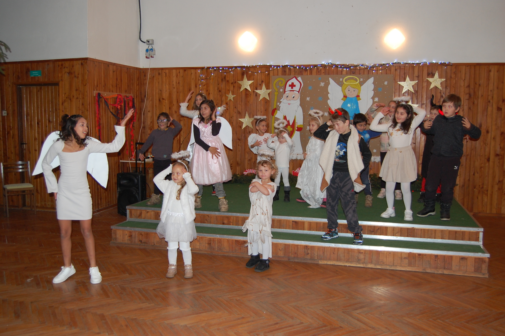 Program zahájila mateřská škola svým vystoupením – naši malí andílci nádherně zazpívali i zatančili a sklidili zasloužený potlesk. Poté se představily děti ze základní školy, které ukázaly, jak jsou šikovné a kolik talentu se v nich skrývá. Velkým potěšením pro nás bylo, že si děti vedly svá vystoupení téměř samy – a my jsme na ně opravdu moc pyšní.