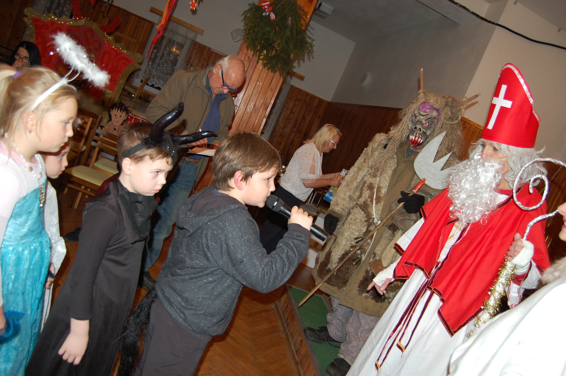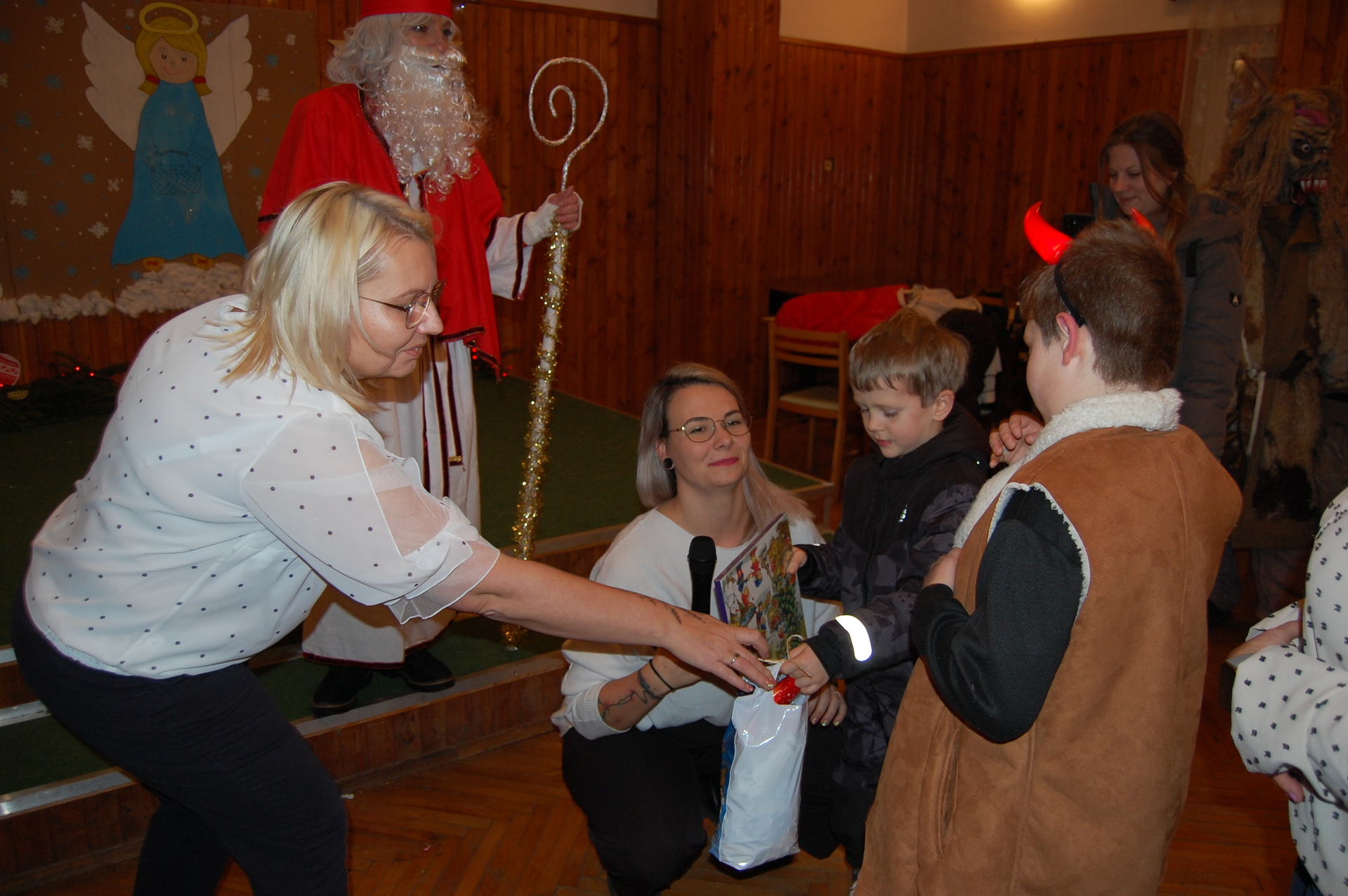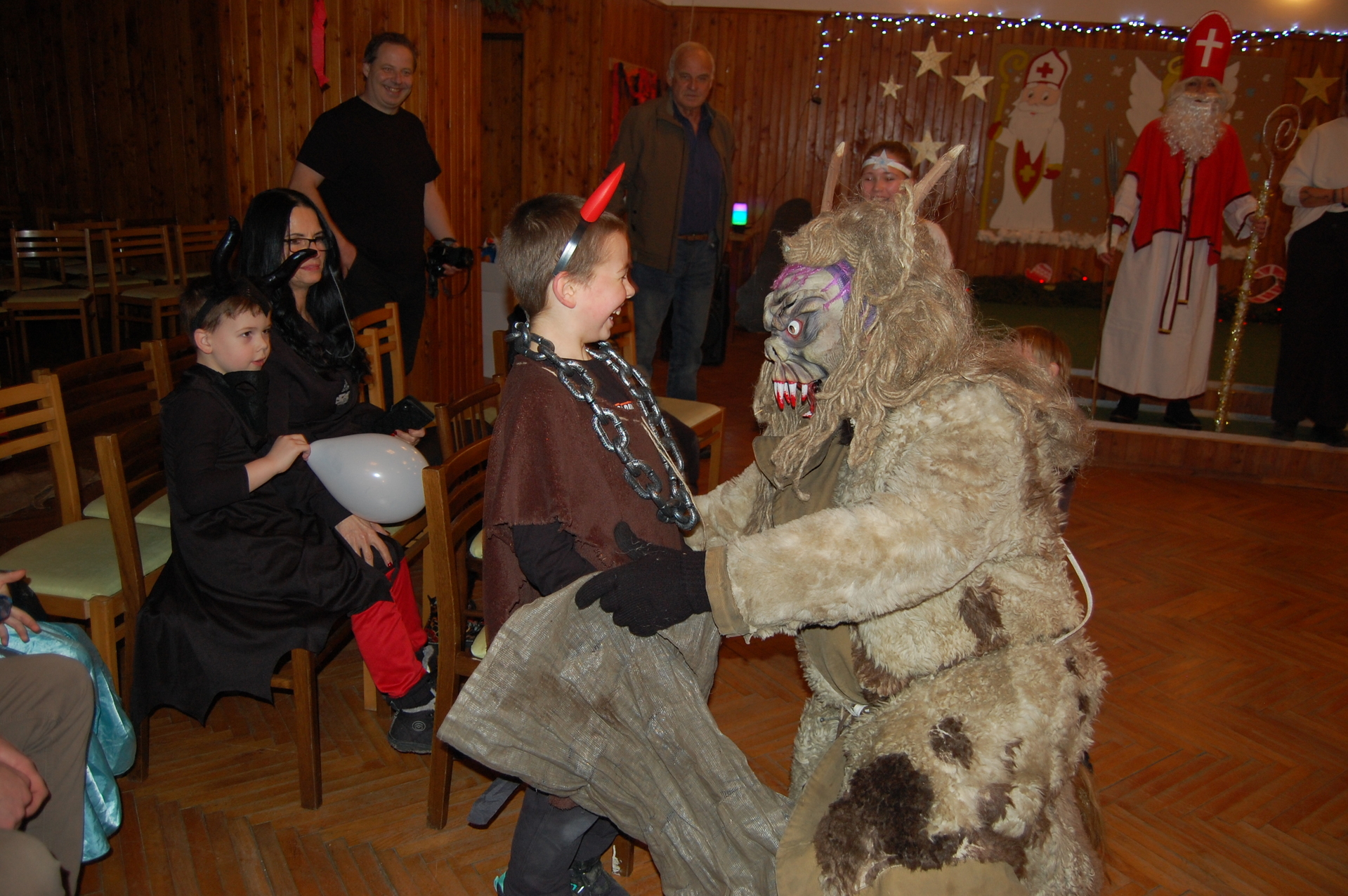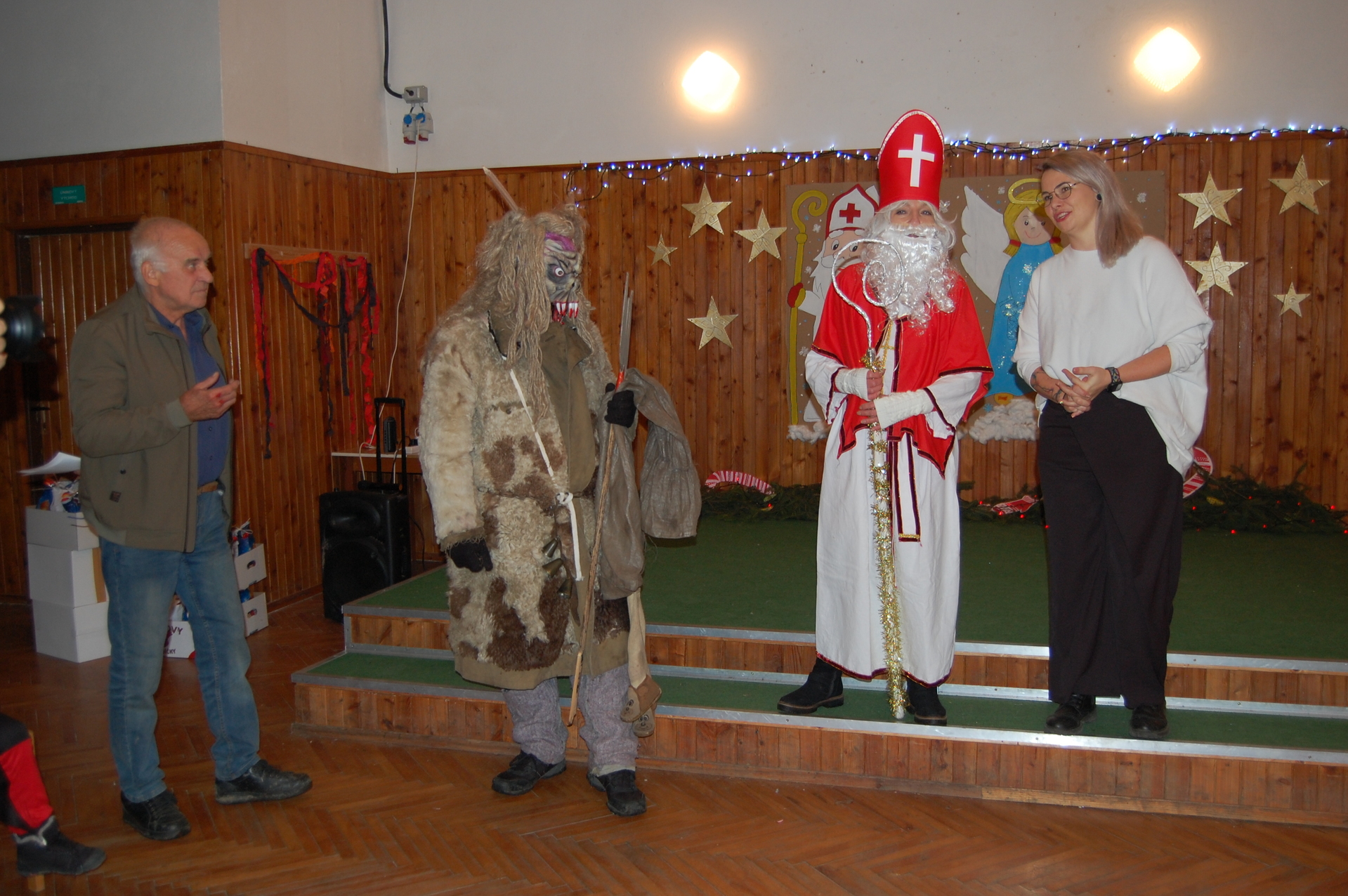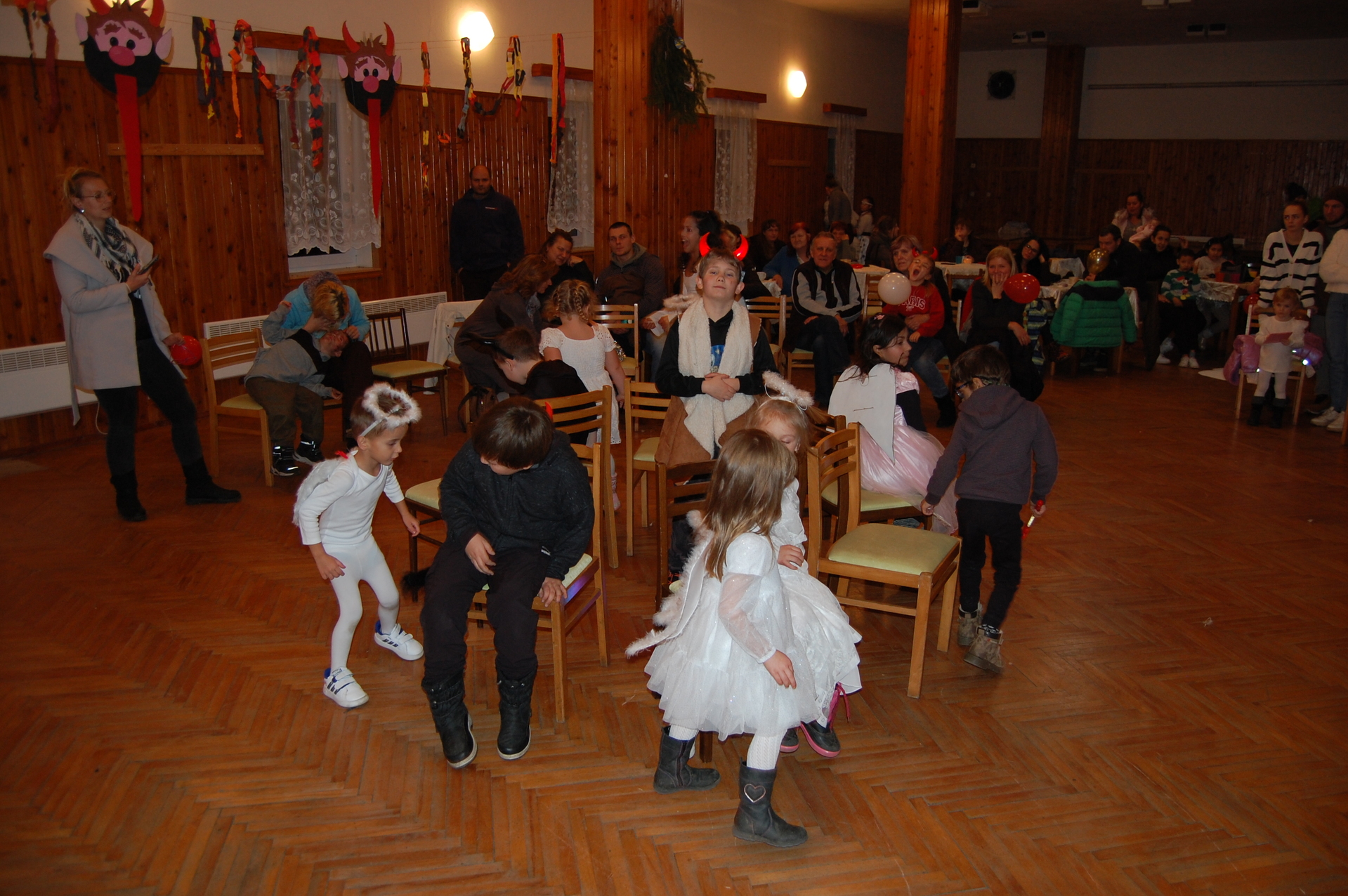 Po oficiálním programu jsme si společně zatančili, zahráli si oblíbenou židličkovanou a užili si příjemné chvíle s rodiči, dětmi a přáteli. Besídka by samozřejmě nebyla úplná bez návštěvy Mikuláše a čerta, kteří dorazili společně s panem starostou a přinesli dětem milou nadílku, za kterou velmi děkujeme.