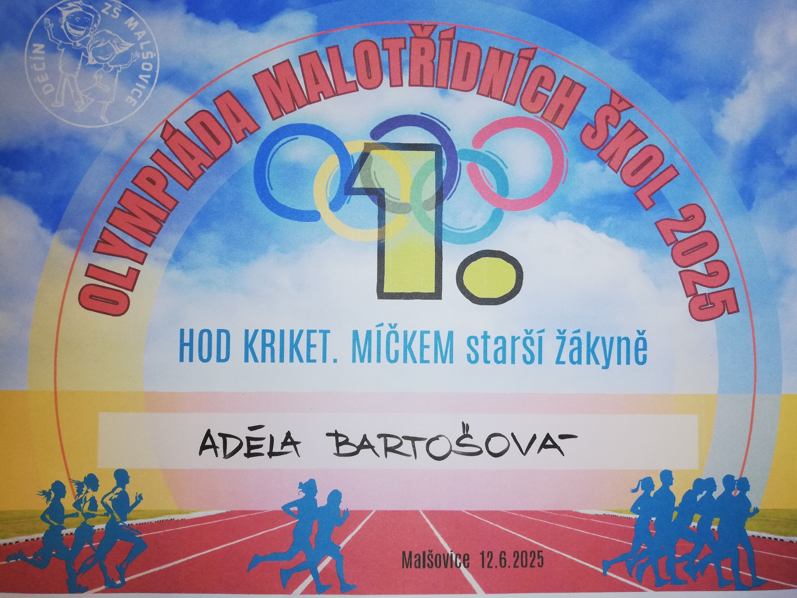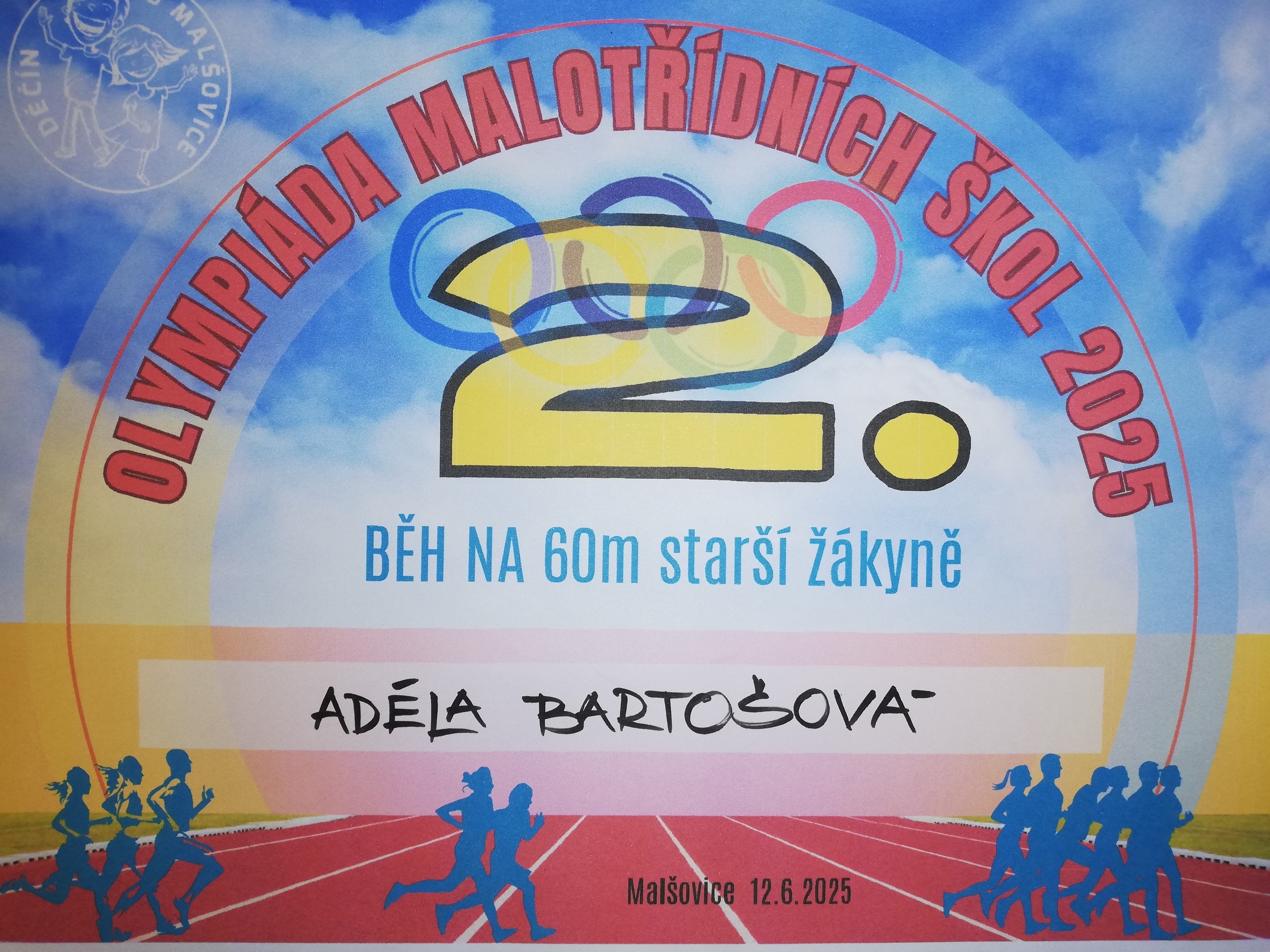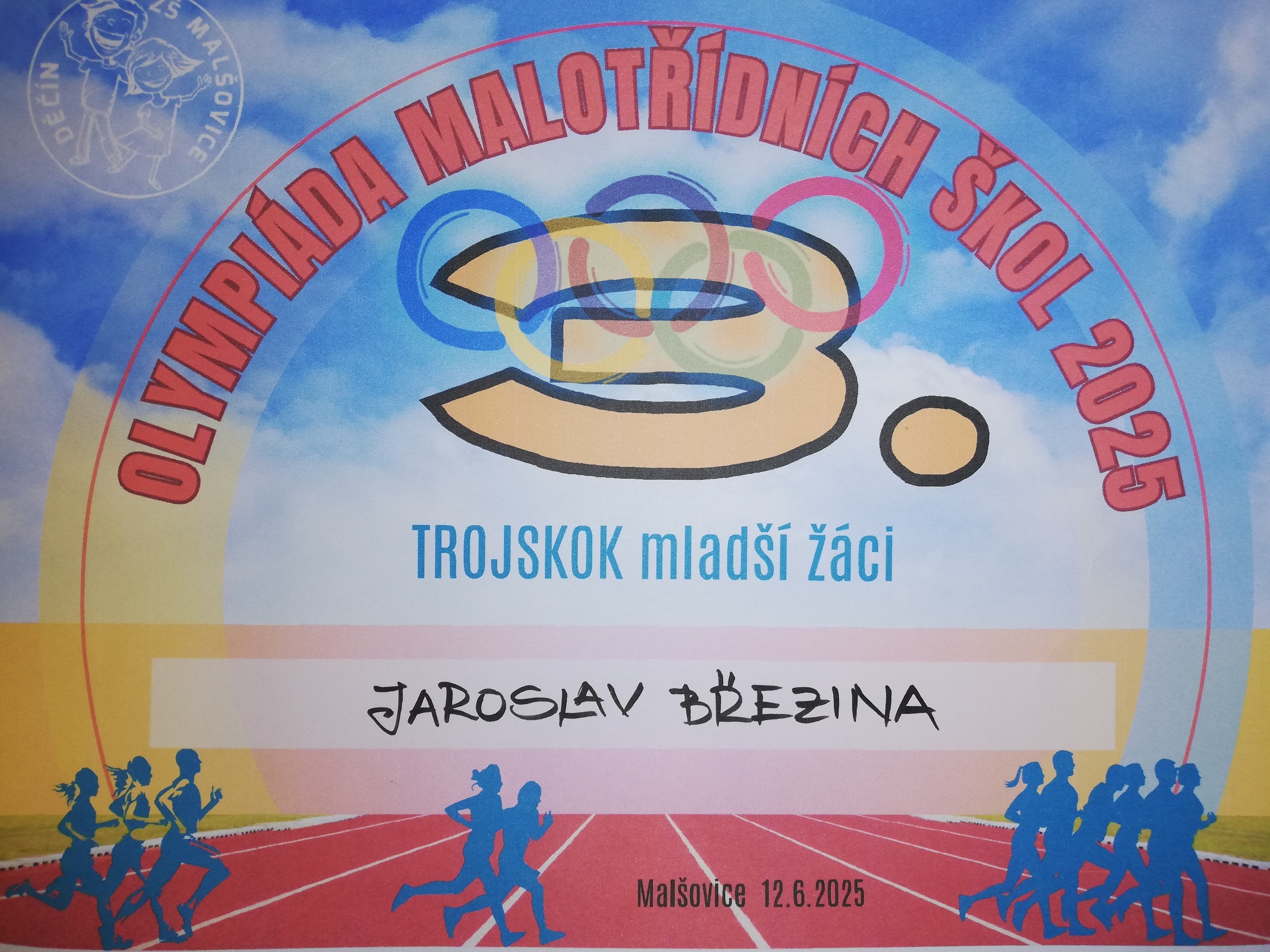 Ve čtvrtek se žáci naší základní školy zúčastnili olympiády malotřídních škol, která se tentokrát konala v Malšovicích. Děti si vyzkoušely různé atletické disciplíny a změřily své síly se soupeři z okolních škol.