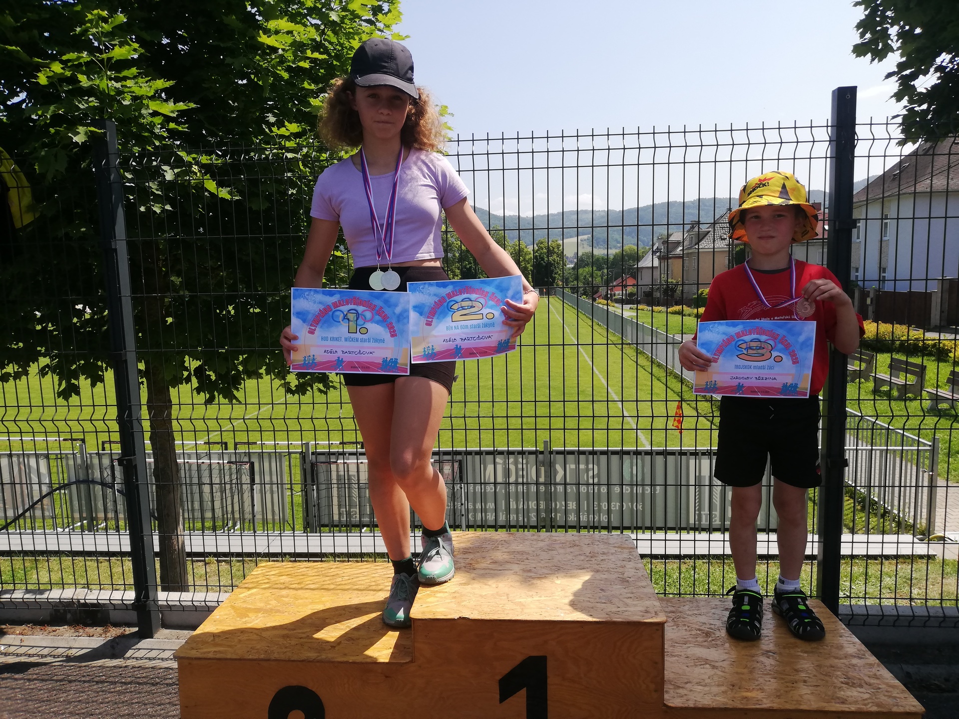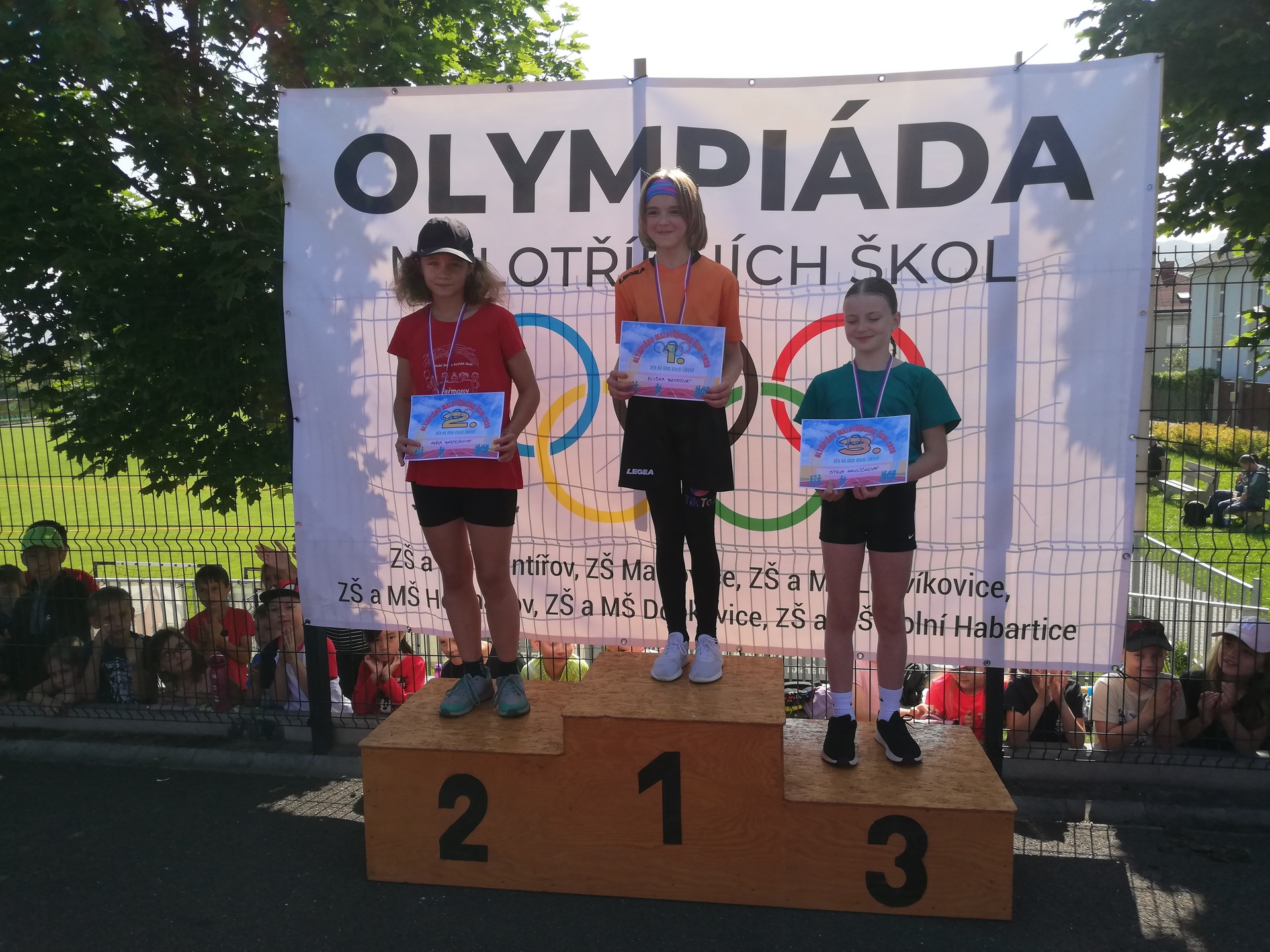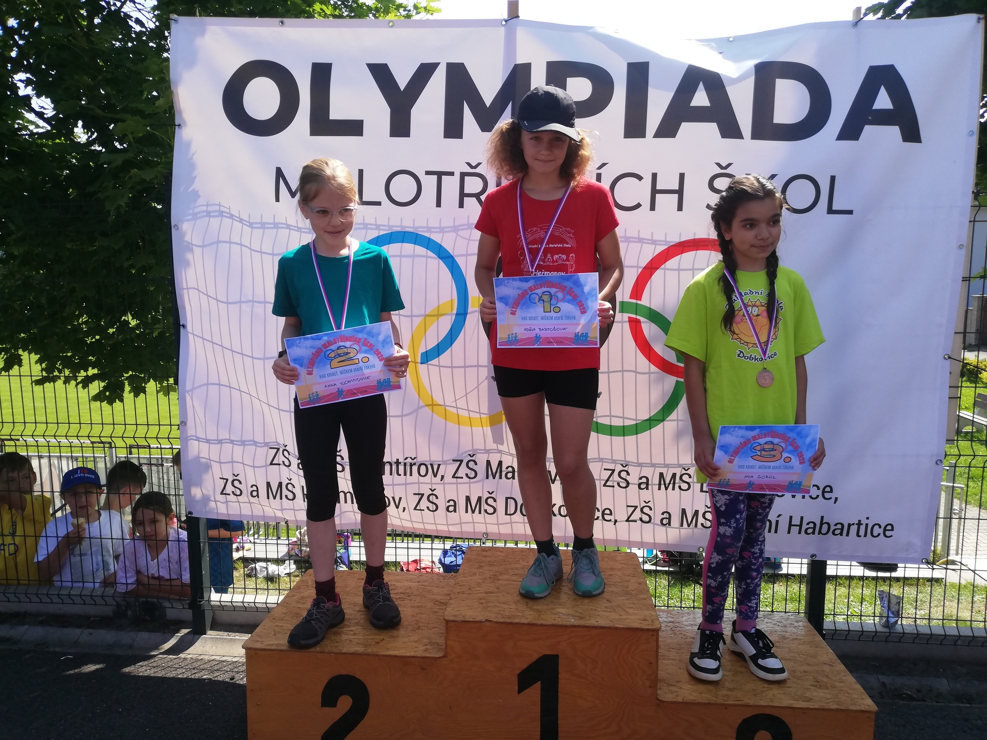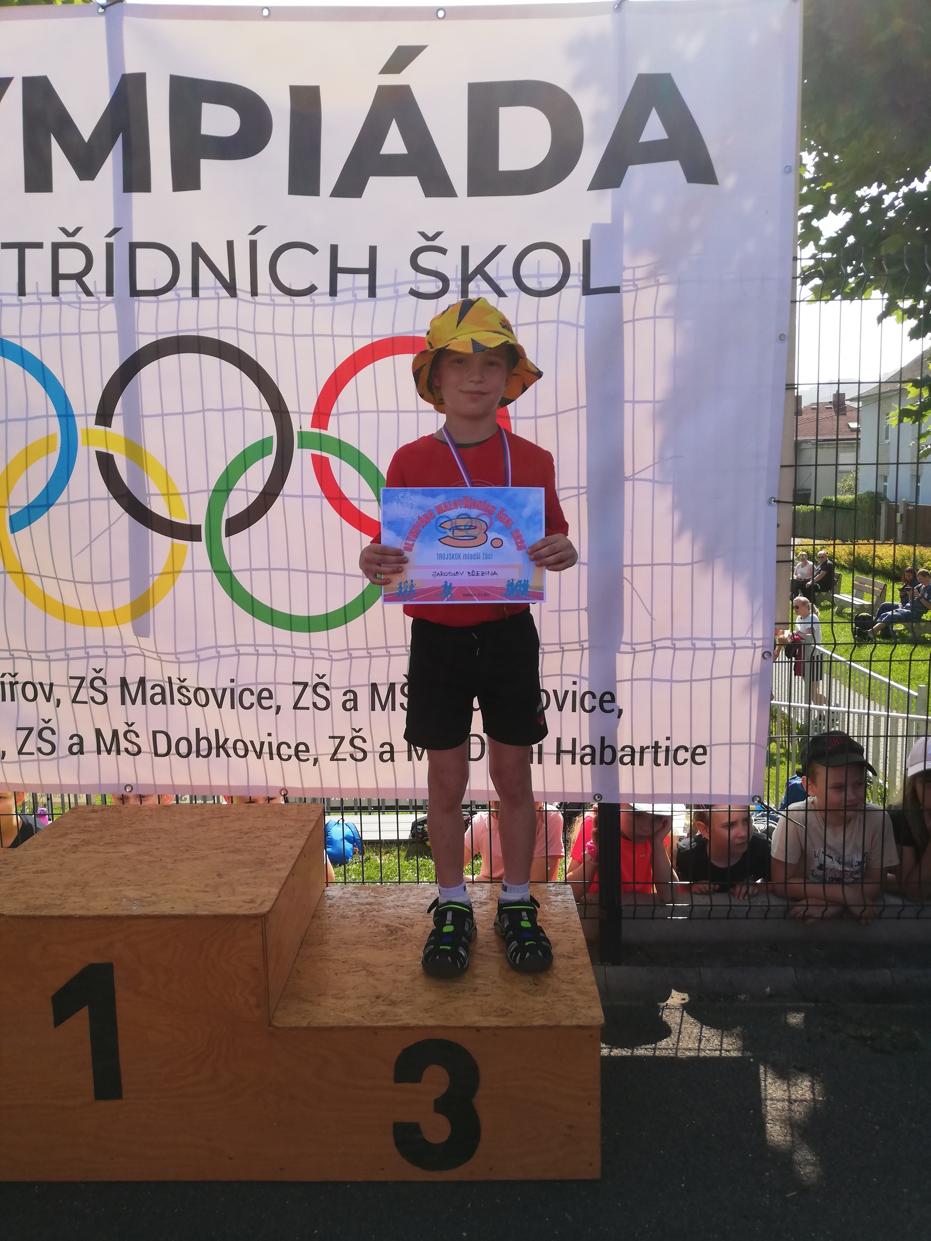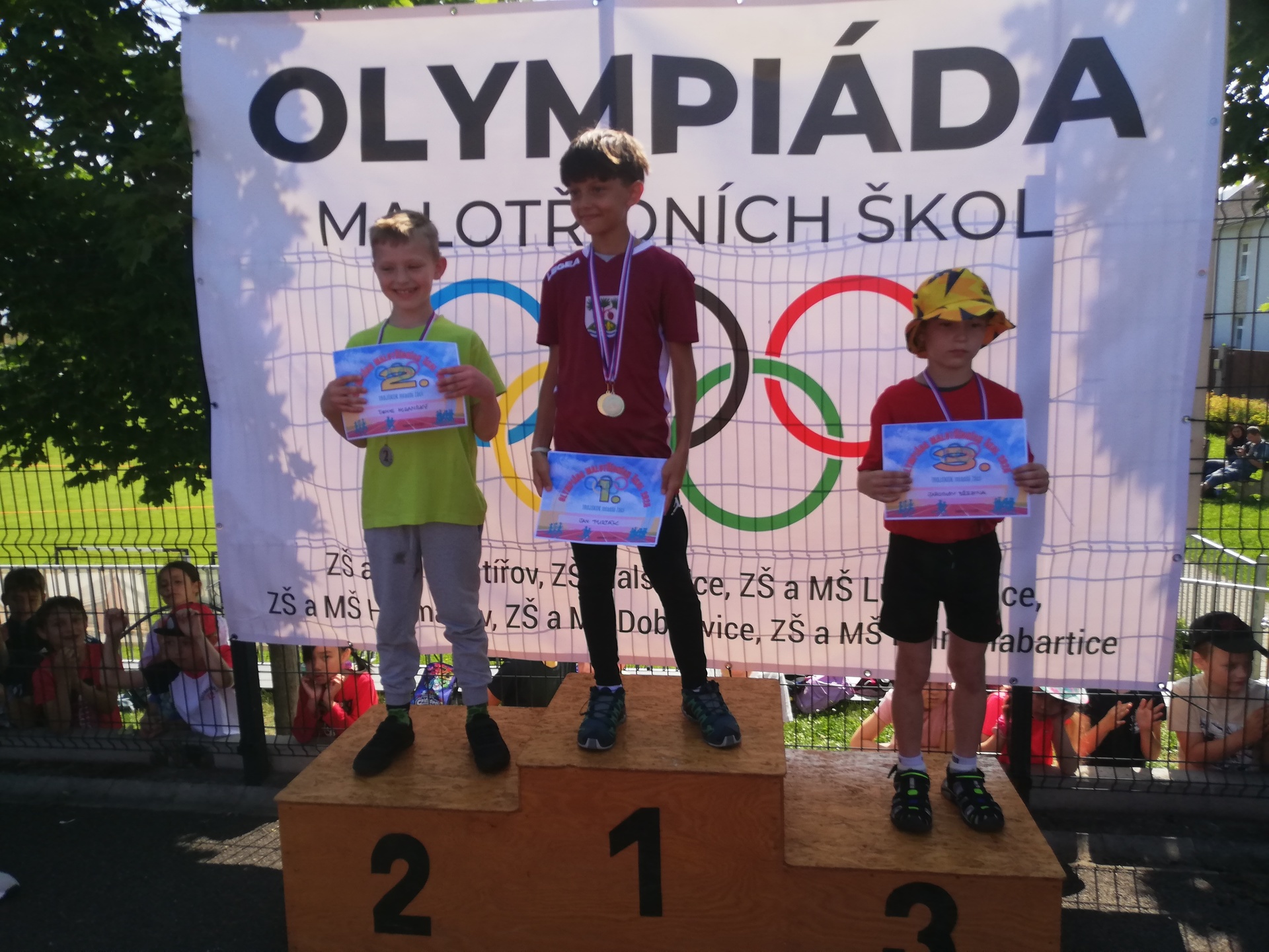 Naši sportovci si vedli skvěle a domů přivezli hned tři cenné medaile! Největšího úspěchu dosáhla Aďa Bartošová, která vybojovala 1. místo v hodu do dálky a 2. místo v běhu. Skvělý výkon předvedl i Jára Březina, který získal 3. místo v trojskoku.