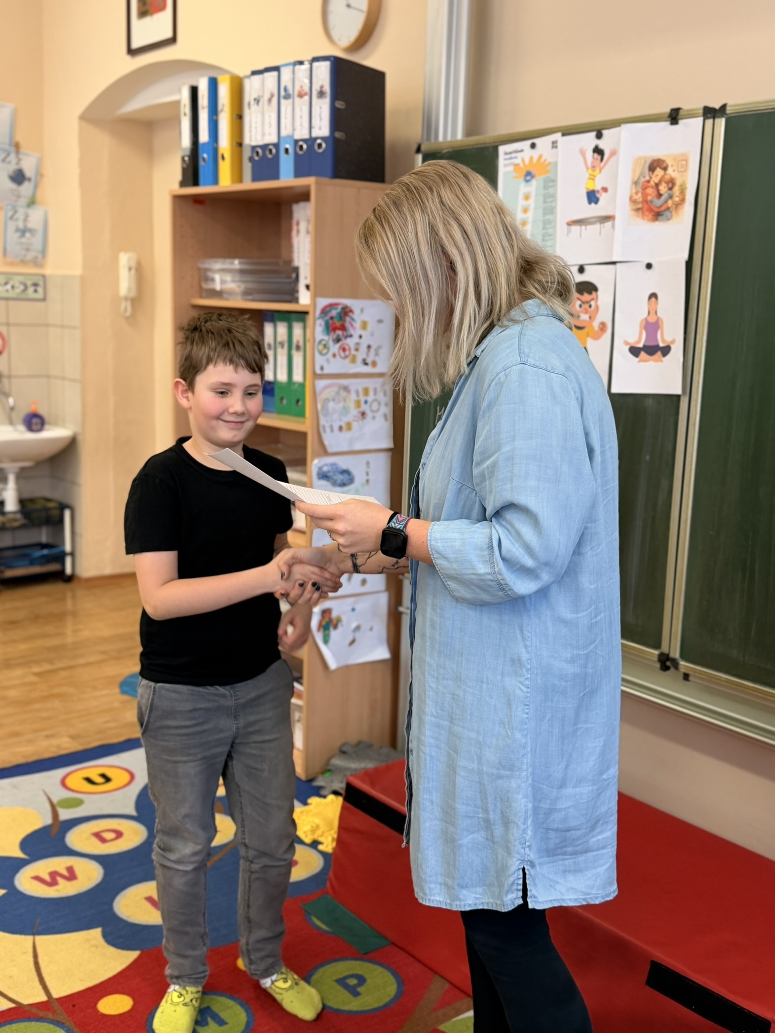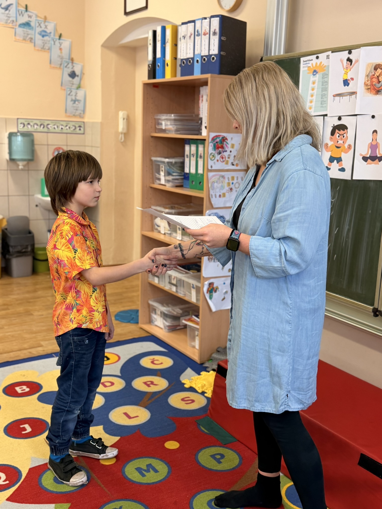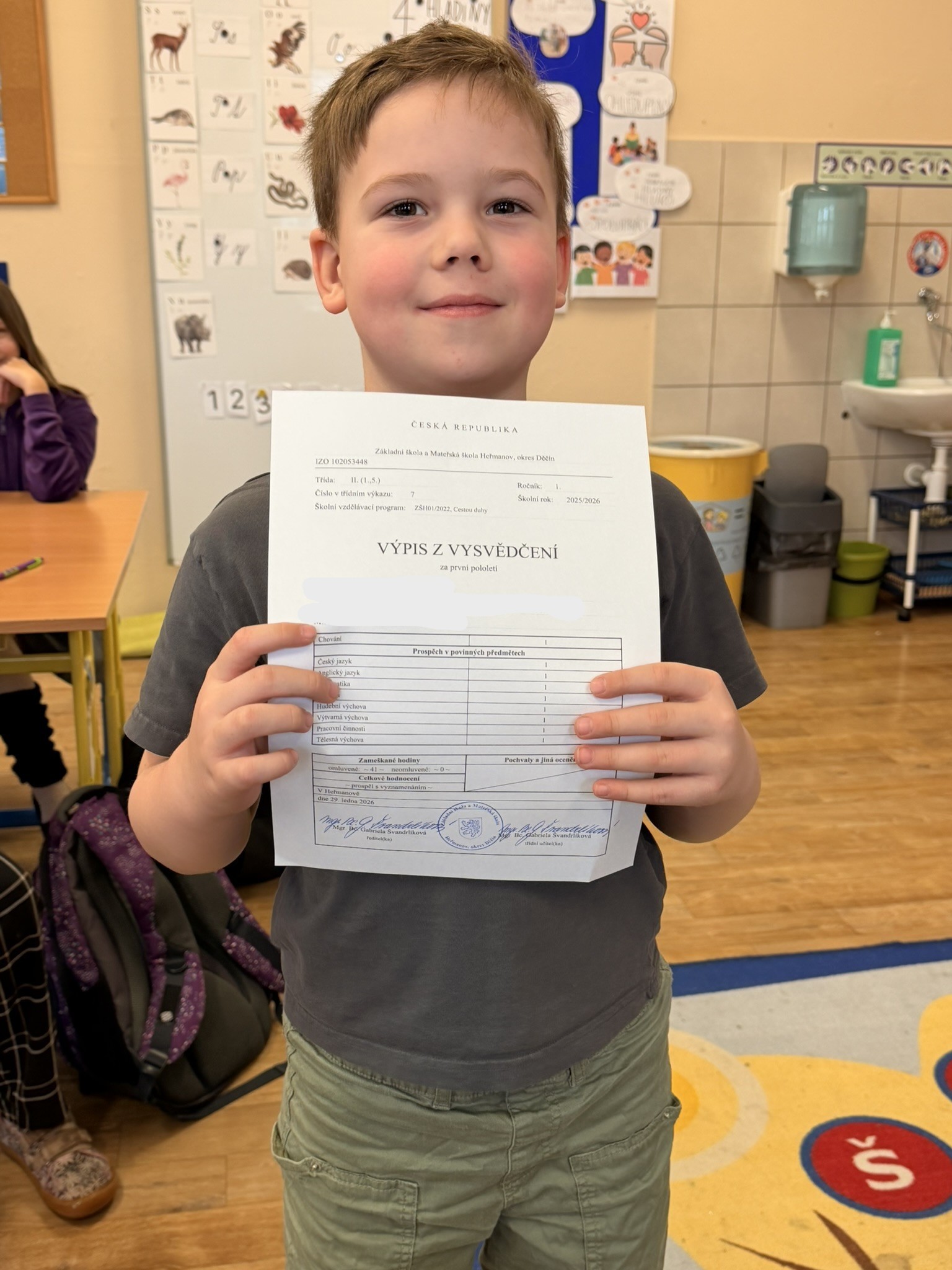 Poslední školní lednový den patřil pololetnímu vysvědčení – a byla to opravdu milá událost. Společně jsme si užili slavnostní atmosféru, ohlédli se za uplynulými měsíci a připomněli si, kolik nových věcí se děti od začátku školního roku naučily.