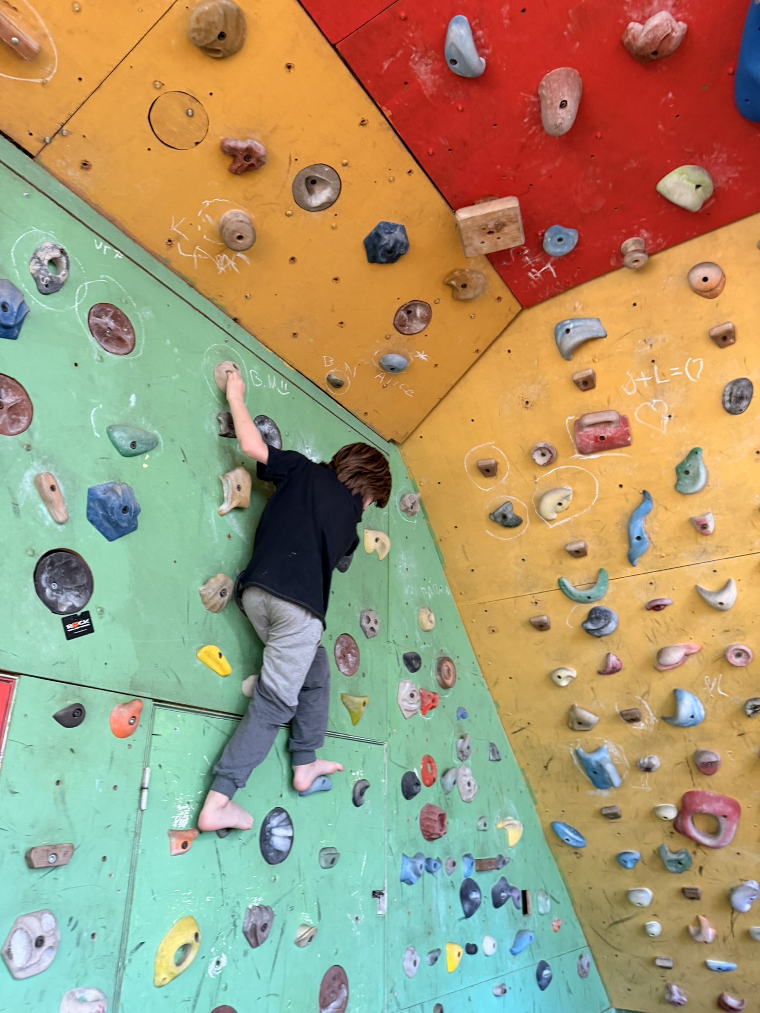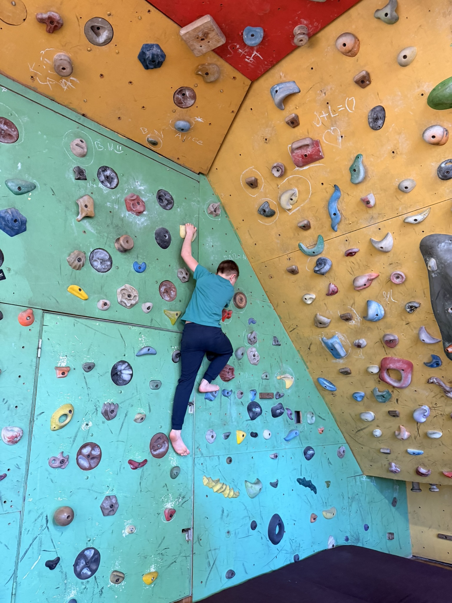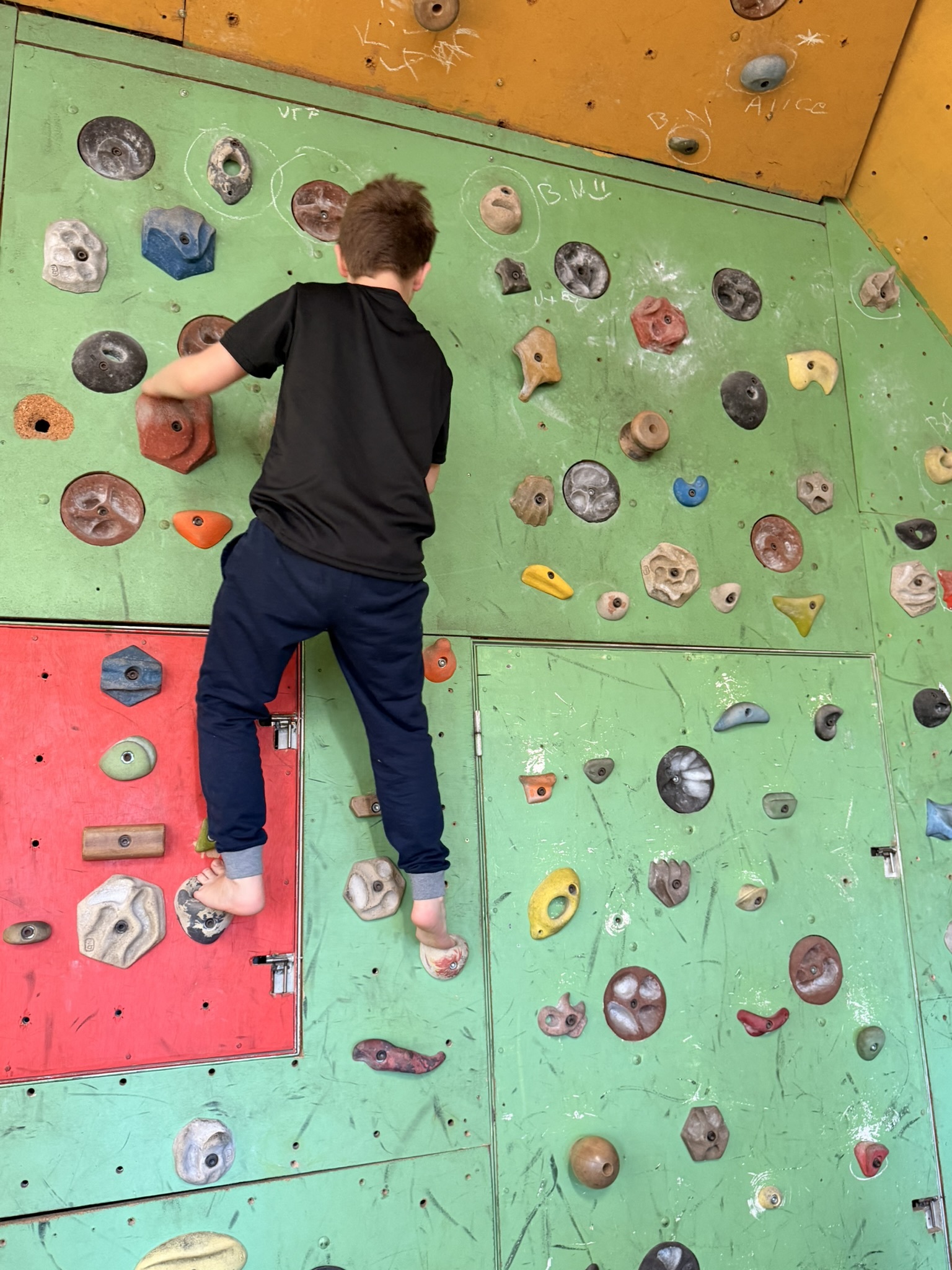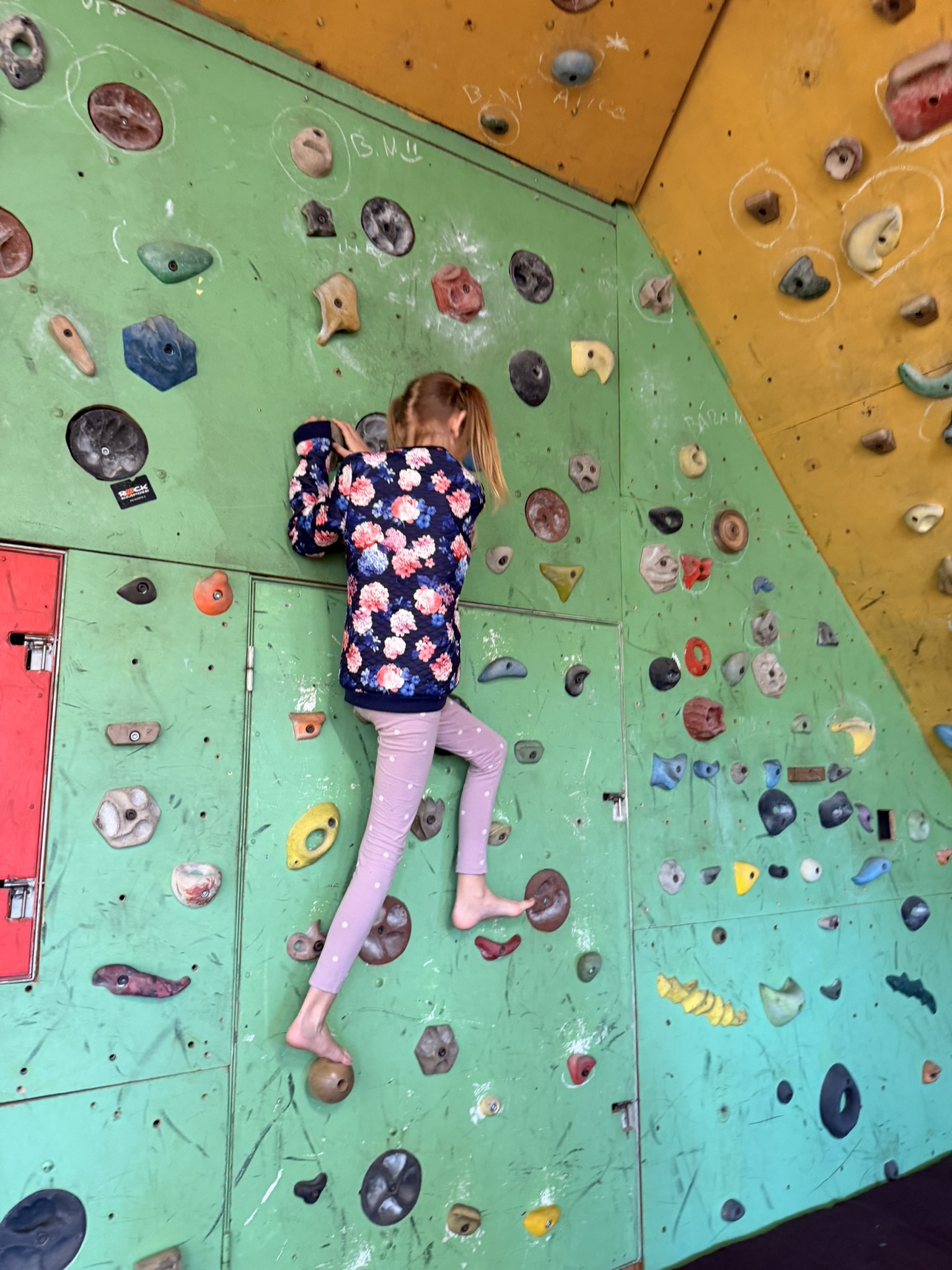 V hodině tělesné výchovy jsme si tentokrát vyzkoušeli lezení na horolezecké stěně. Děti při lezení procvičily především sílu celého těla, koordinaci pohybů, rovnováhu i správné držení těla. Zároveň si trénovaly vytrvalost, soustředění a také odvahu překonávat samy sebe.