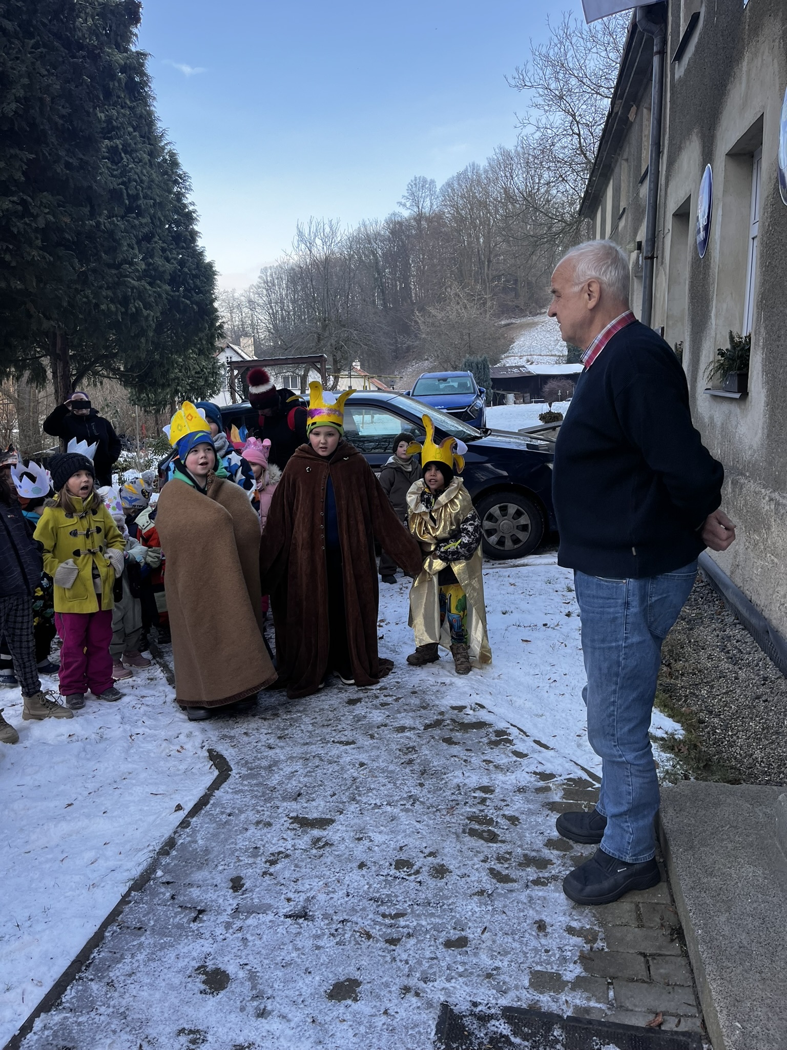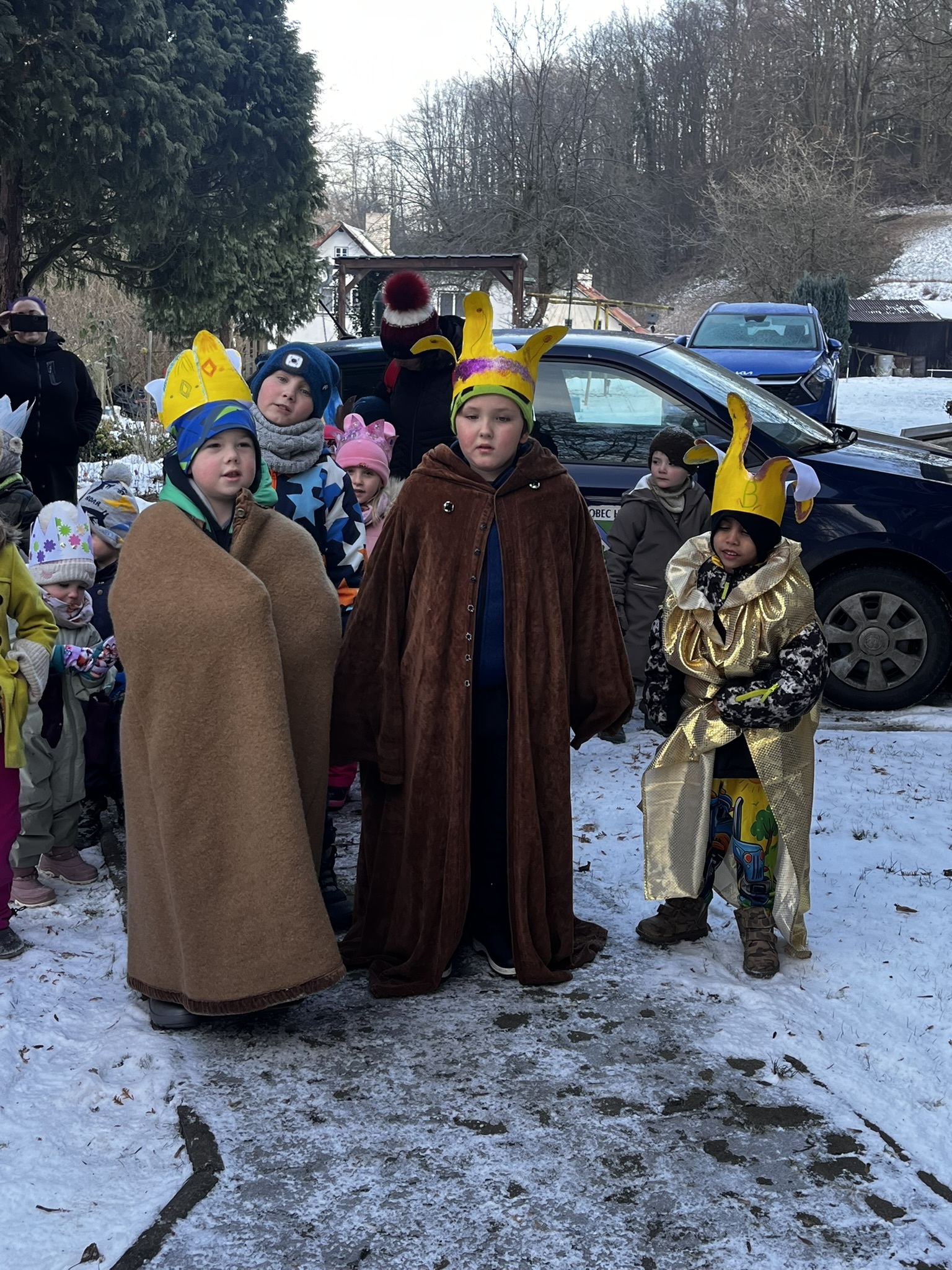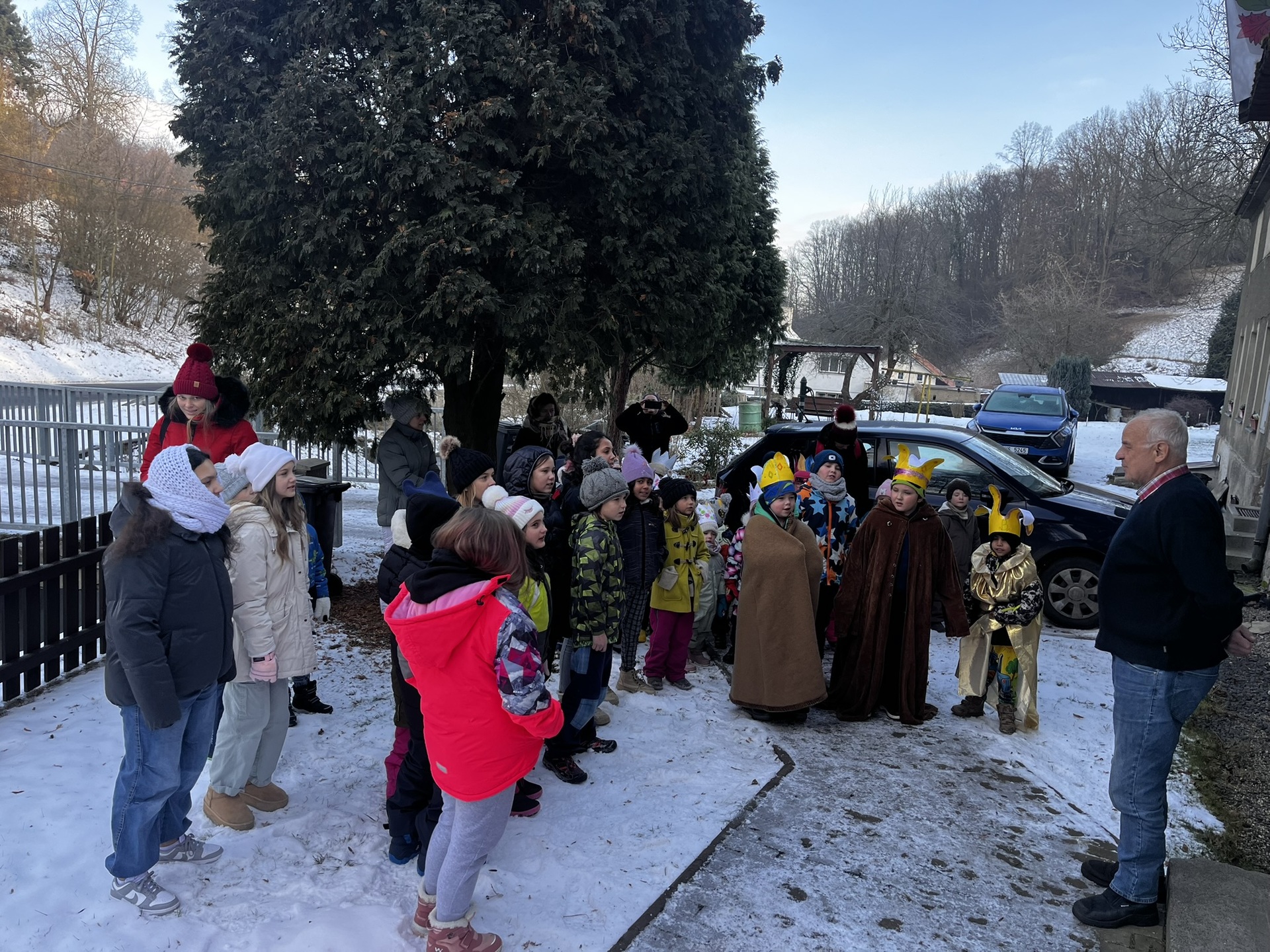 V úterý 6. ledna se děti z naší mateřské školy i základní školy vydaly na milou novoroční návštěvu k panu starostovi. Nešly samy – doprovod jim dělali také Tři králové, kteří celému setkání dodali pravou sváteční atmosféru.