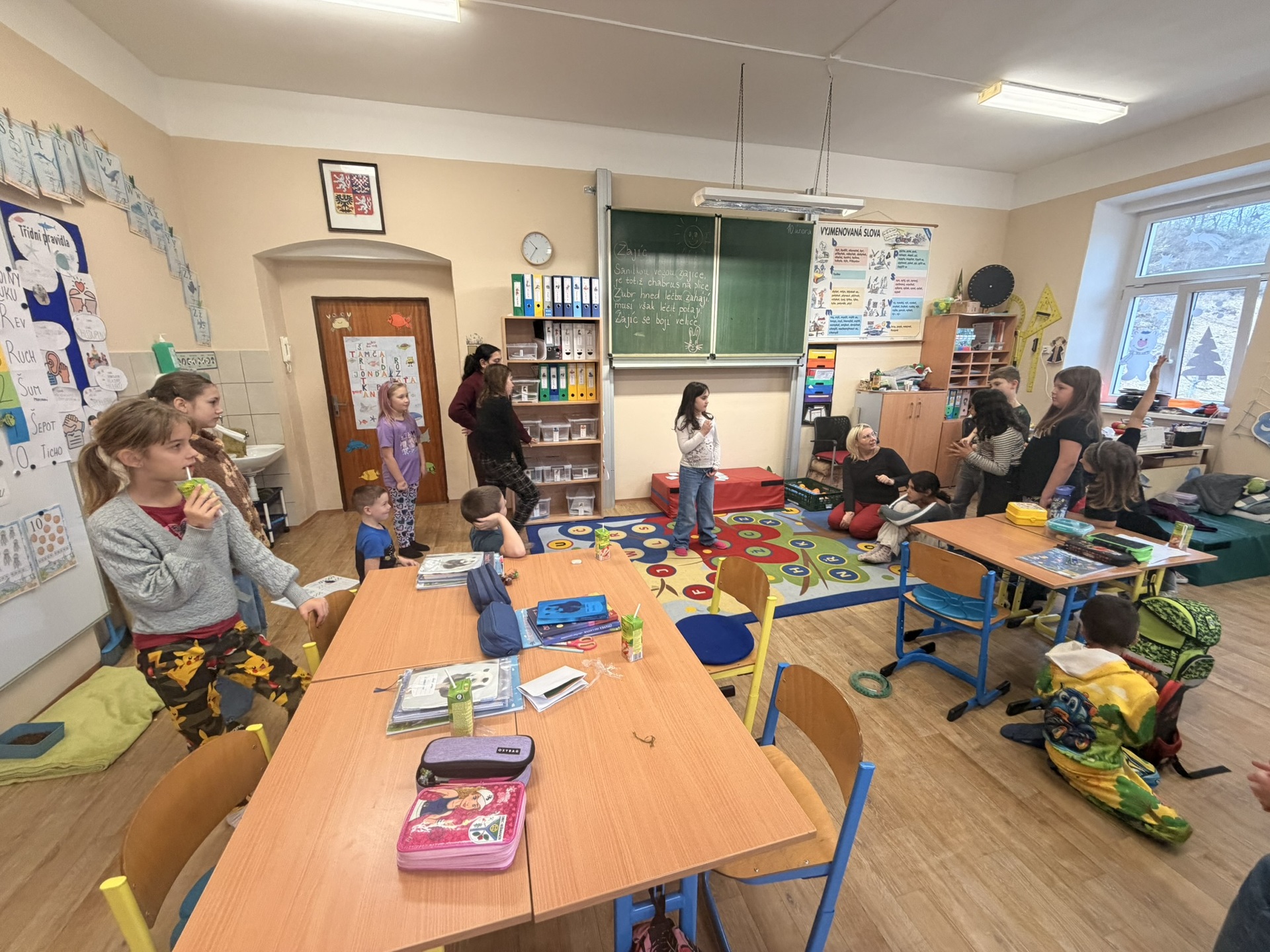 Každé ráno jsme začínali krátkou relaxační chvilkou. Učili jsme se správně dýchat, protáhnout si tělo, na chvíli zavřít oči a jen vnímat klid kolem sebe. Některé děti si oblíbily tichou hudbu, jiné krátké vedené představy nebo „minutku ticha“, kdy jsme si uvědomovali, co se nám honí hlavou.