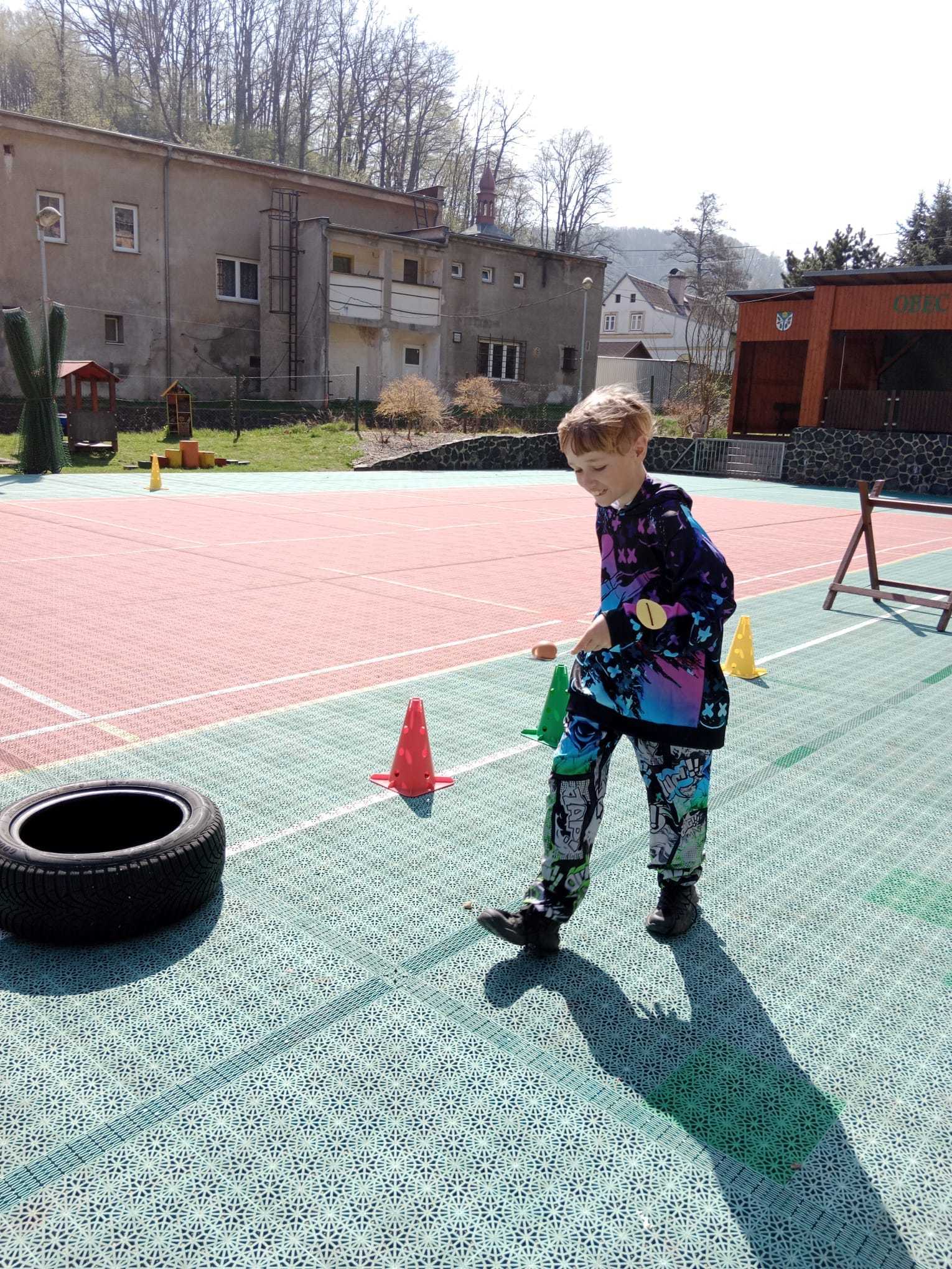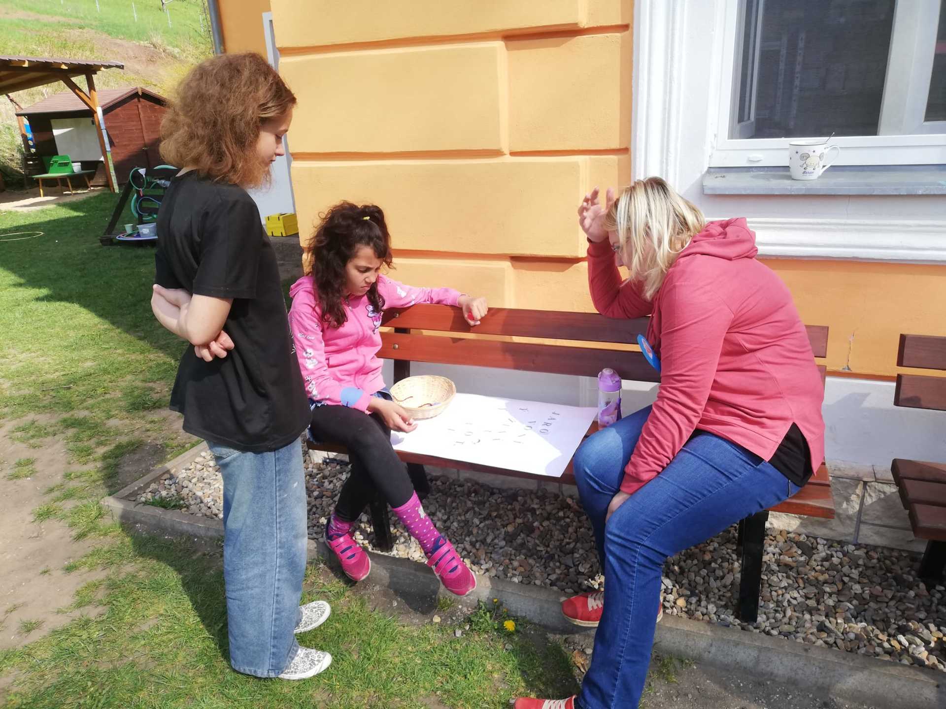 Po společné kontrole úkolů jsme se přesunuli ven, kde už čekalo další dobrodružství. Děti jsme rozdělili do smíšených družstev a soutěž mohlo začít!