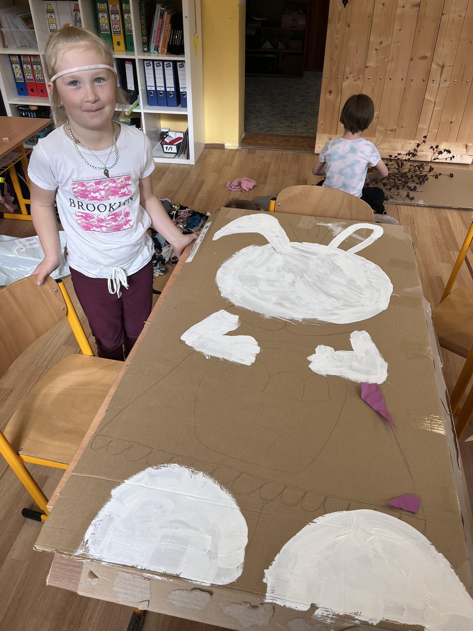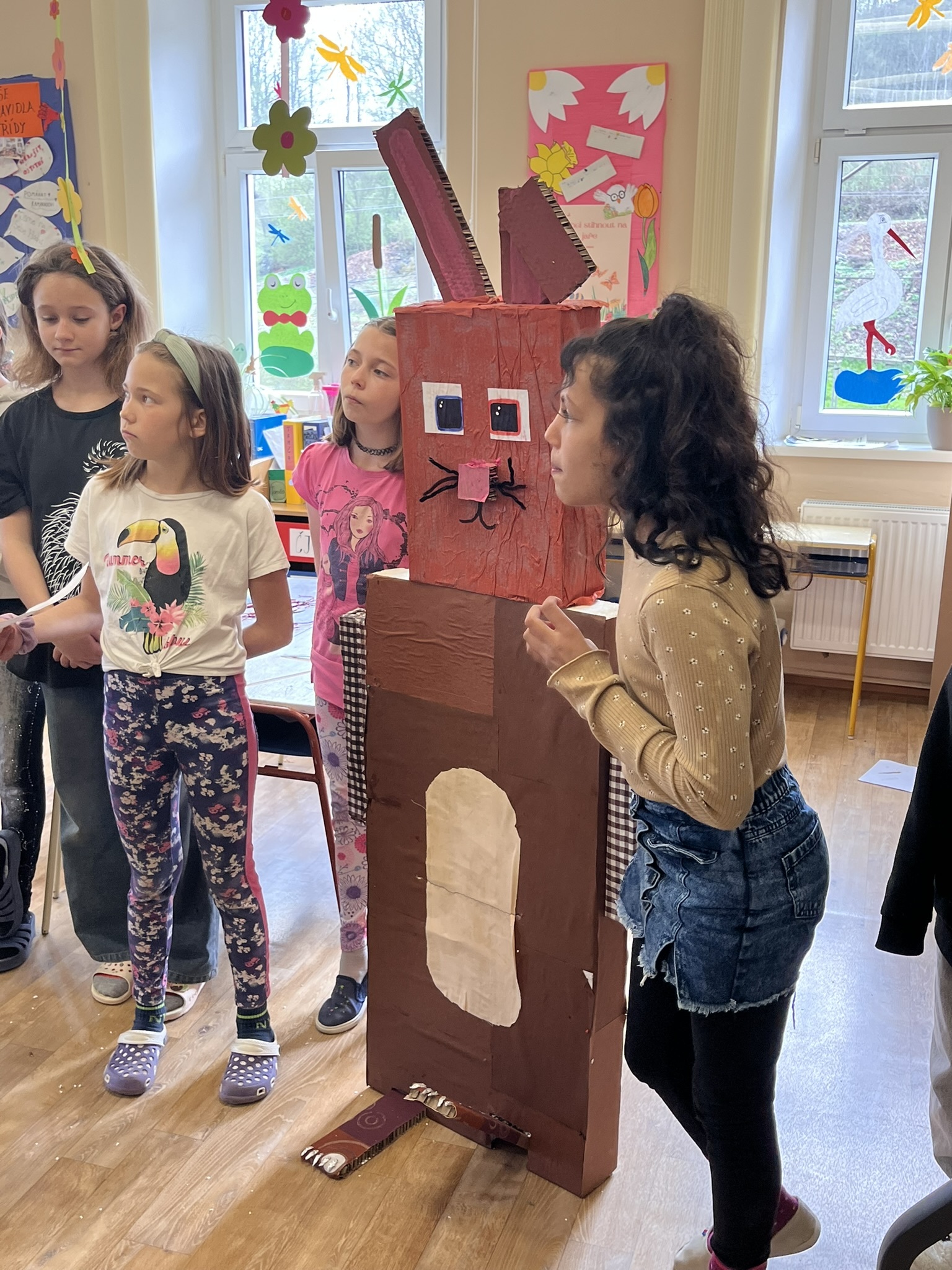 Hned na začátku všechny překvapil dopis od velikonočního zajíčka , který každému zadal úkol – vytvořit svého zaječího kamaráda podle přesných parametrů. Děti se pustily do práce a vznikla tak celá parta originálních zajíčků!