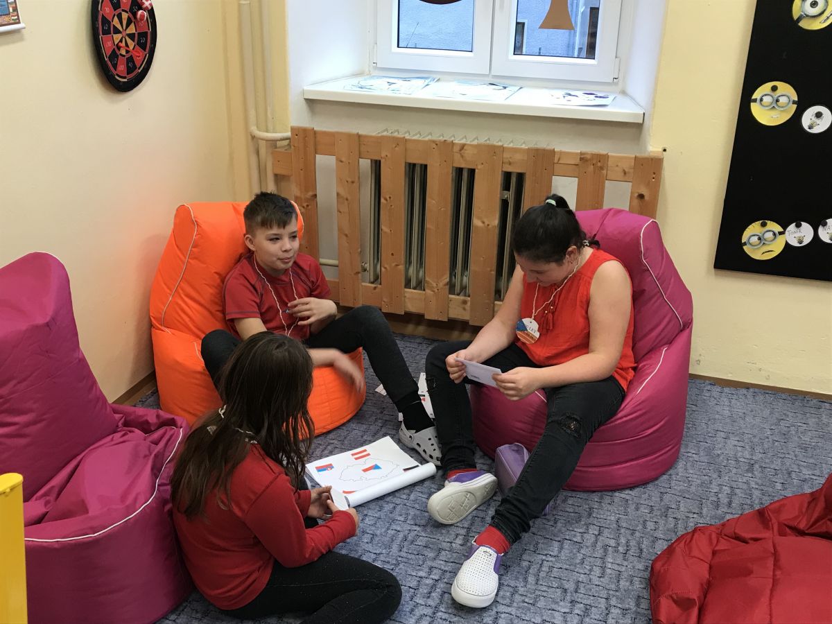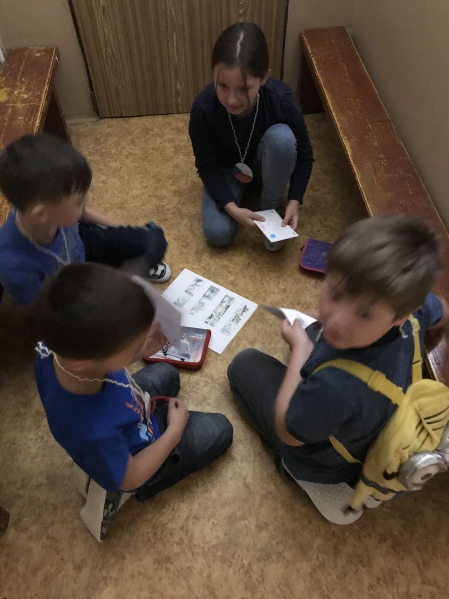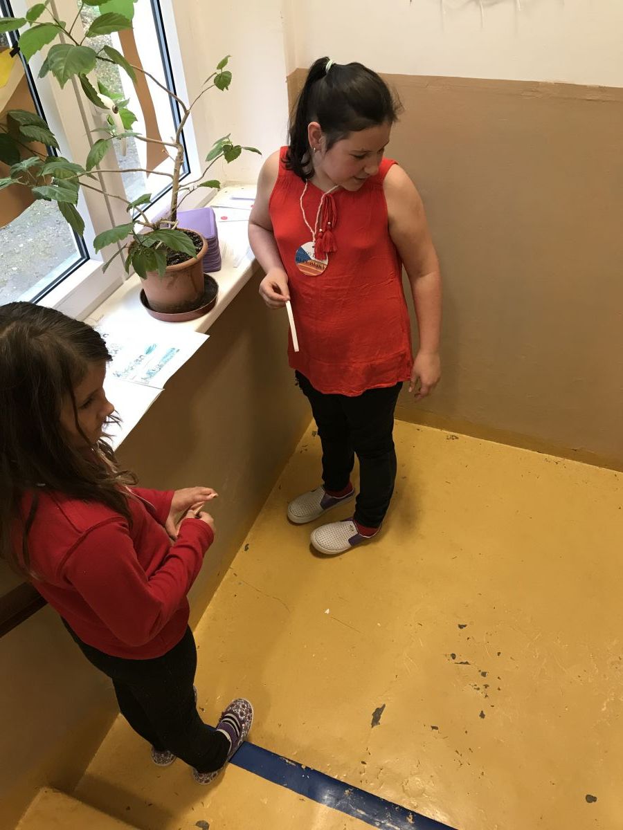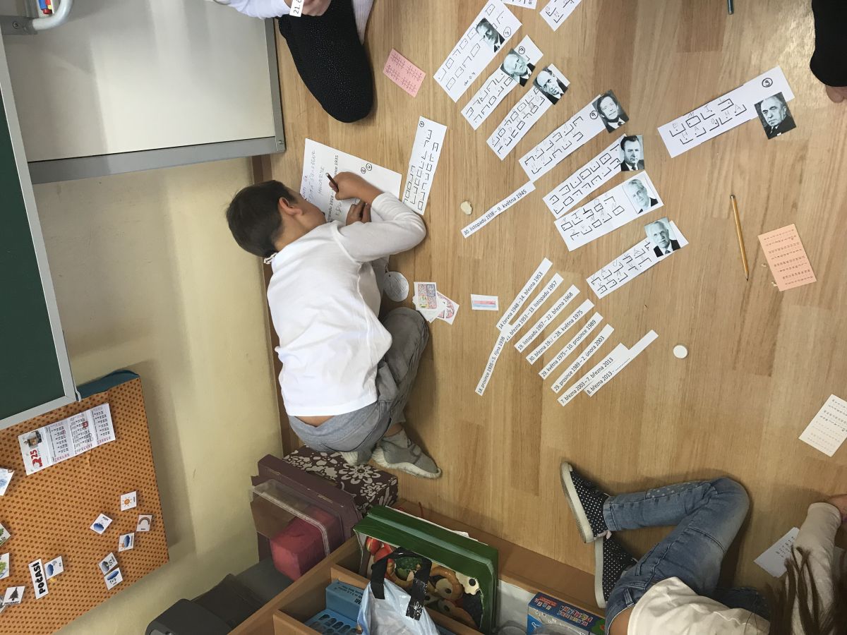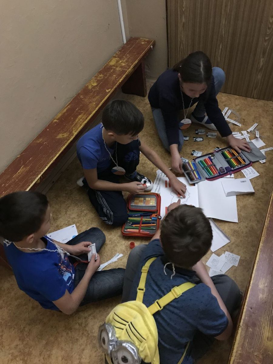 Poté byli žáci rozděleni do 5 týmů napříč ročníky a každý tým musel najít 5 obálek s úkoly, které byly poschovávané po budově školy. Každá skupina měla svůj zápisový arch, do kterého plnila jednotlivé úkoly.