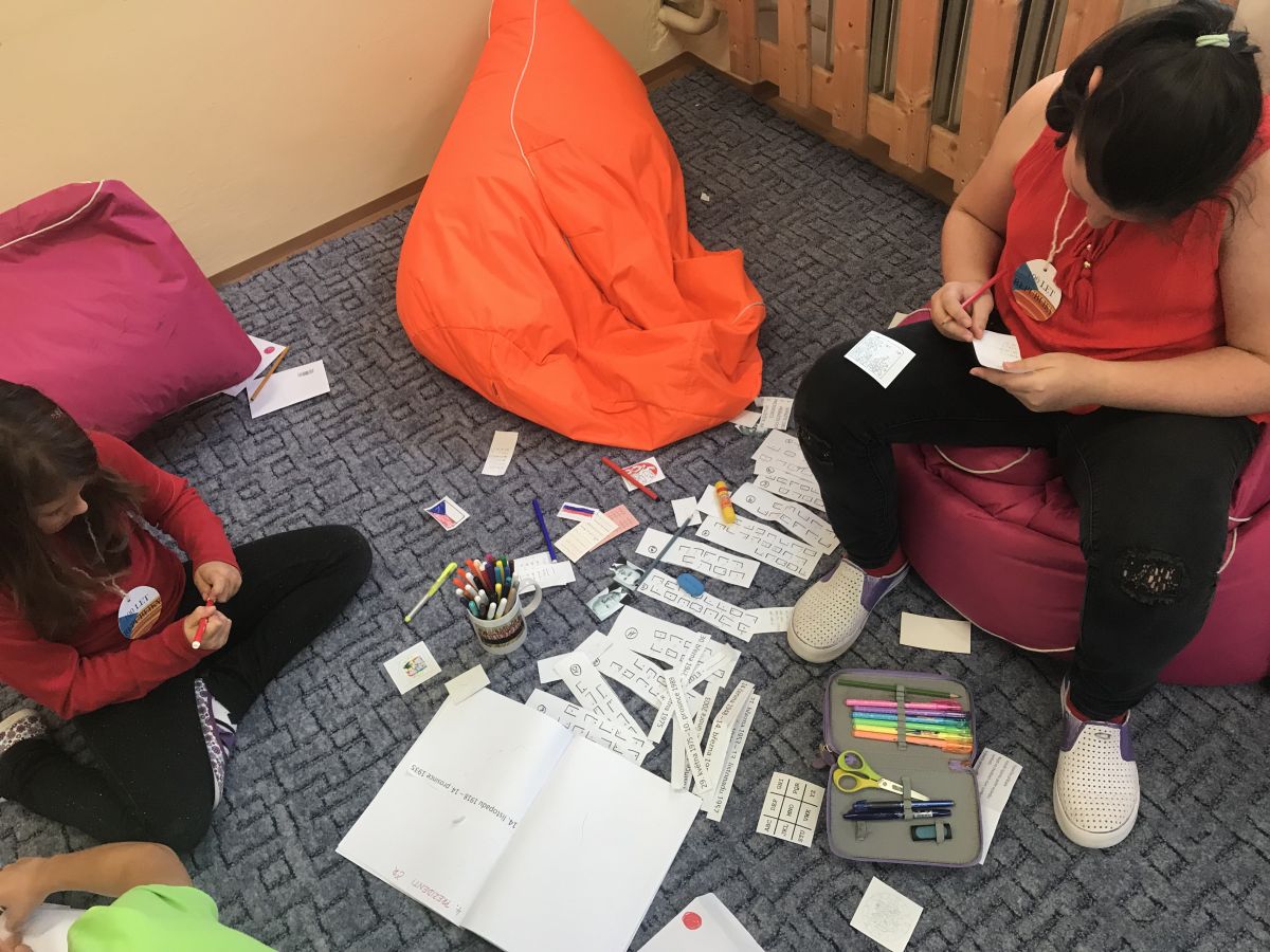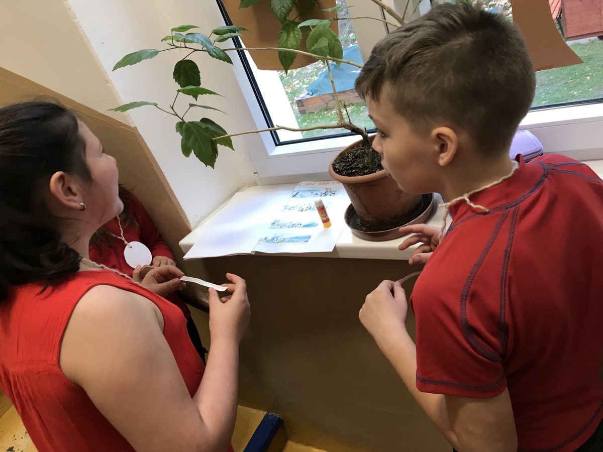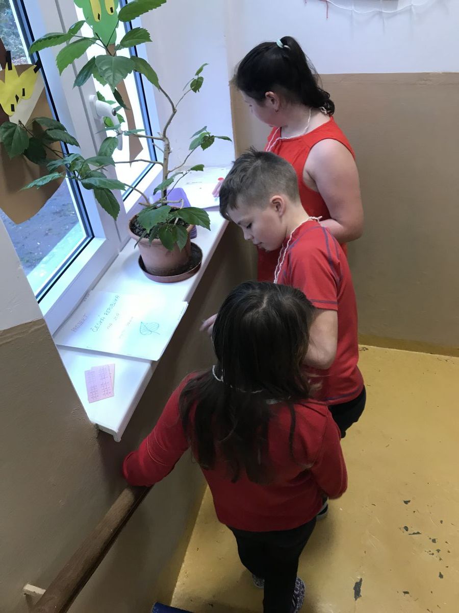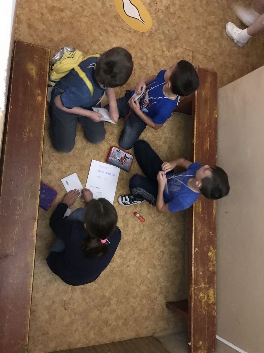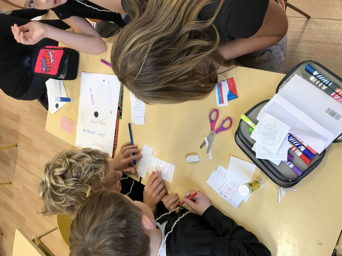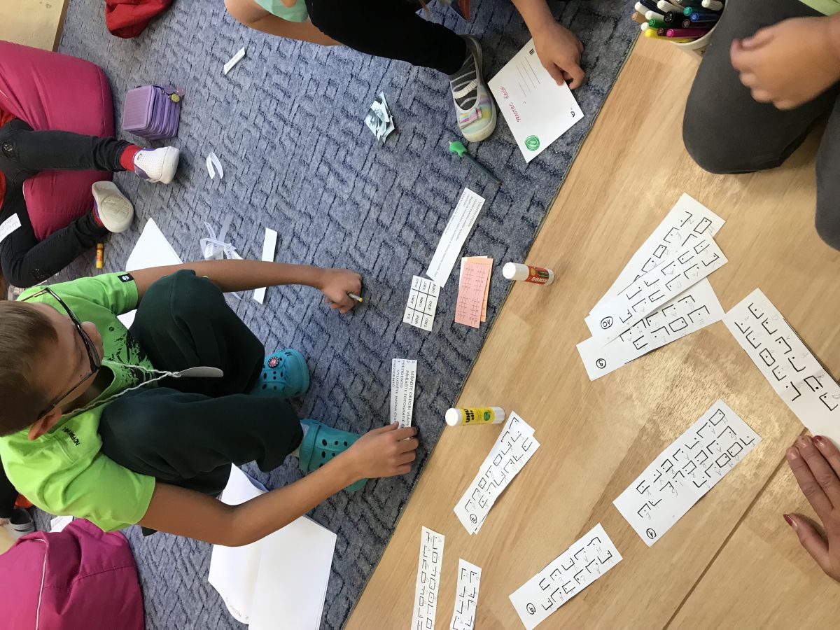 Poté byli žáci rozděleni do 5 týmů napříč ročníky a každý tým musel najít 5 obálek s úkoly, které byly poschovávané po budově školy. Každá skupina měla svůj zápisový arch, do kterého plnila jednotlivé úkoly.