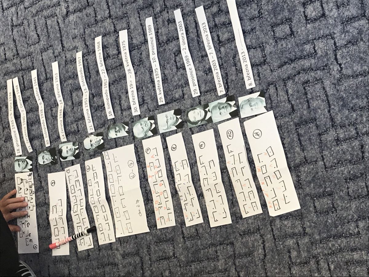 4. Luštili jména československých a českých prezidentů, přiřazovali jejich fotografie a funkční období.