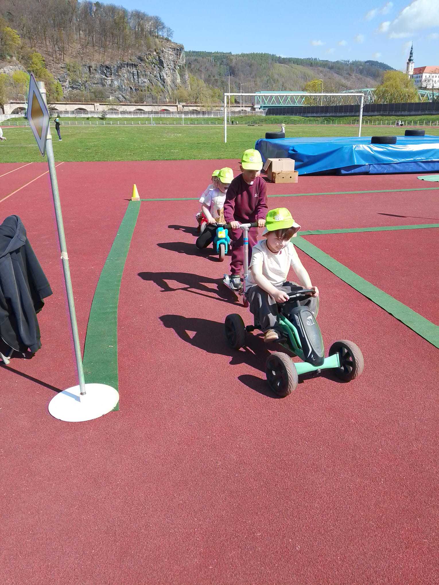 V pátek 17.4.2026 jsme se s dětmi vydali na Dopravní den pro MŠ na atletické hřiště v Děčíně. Museli jsme sice vyrazit opravdu brzy ráno, ale rozhodně se to vyplatilo. Už samotná cesta byla pro děti velkým zážitkem – jeli jsme vlakem a zpět jsme se vraceli autobusem. Počasí nám navíc přálo, svítilo sluníčko a celý den bylo krásné teplo.