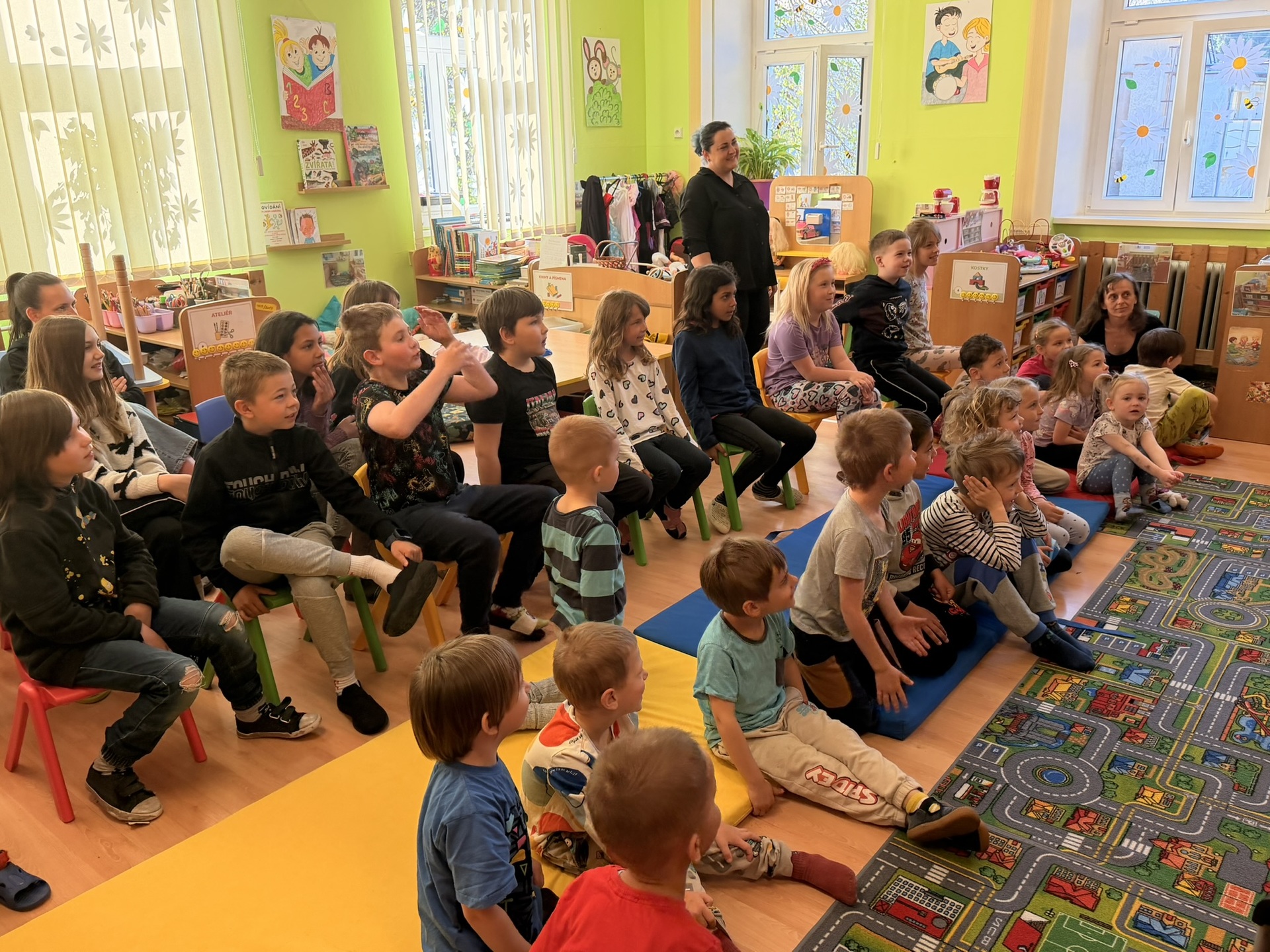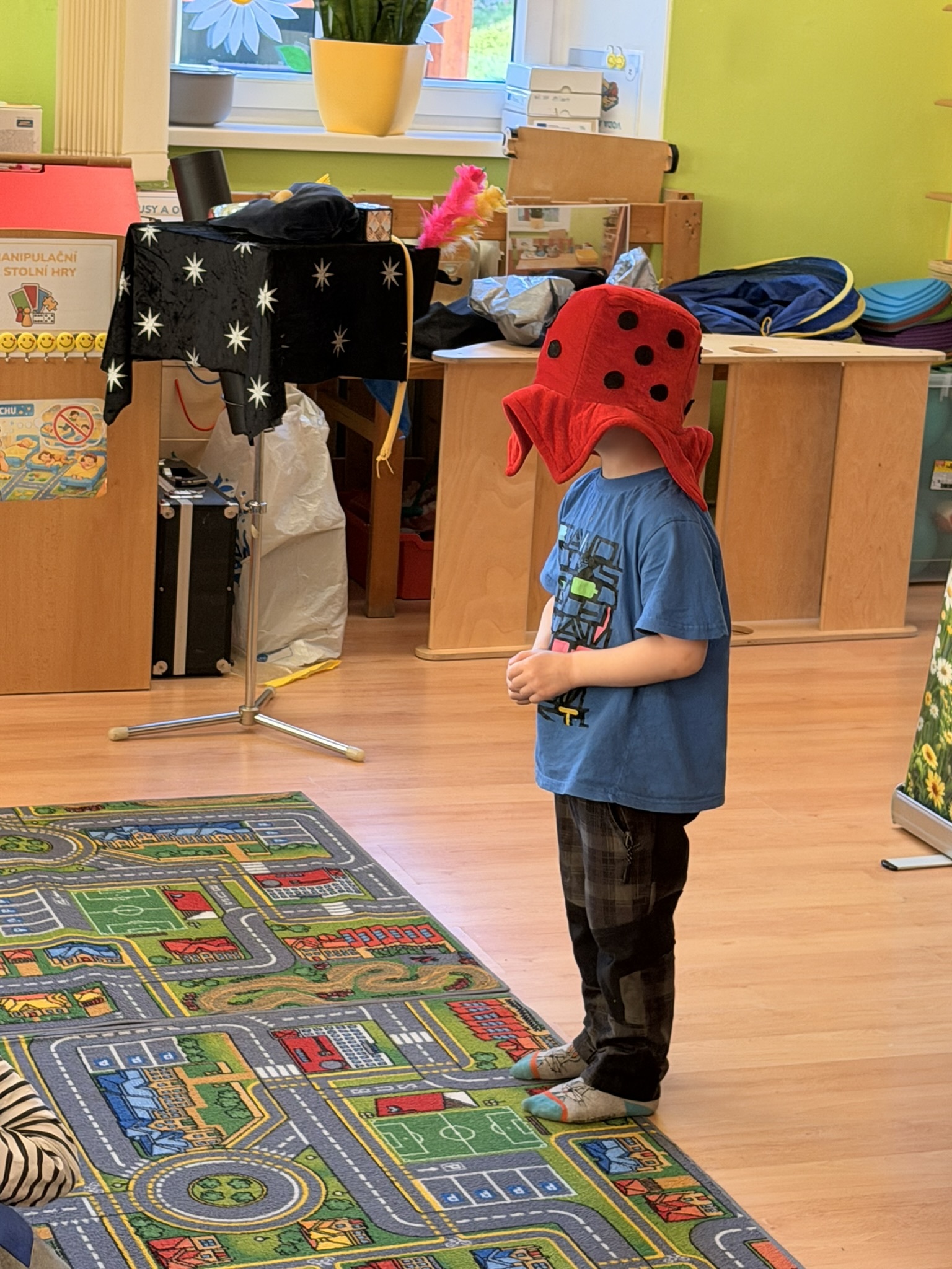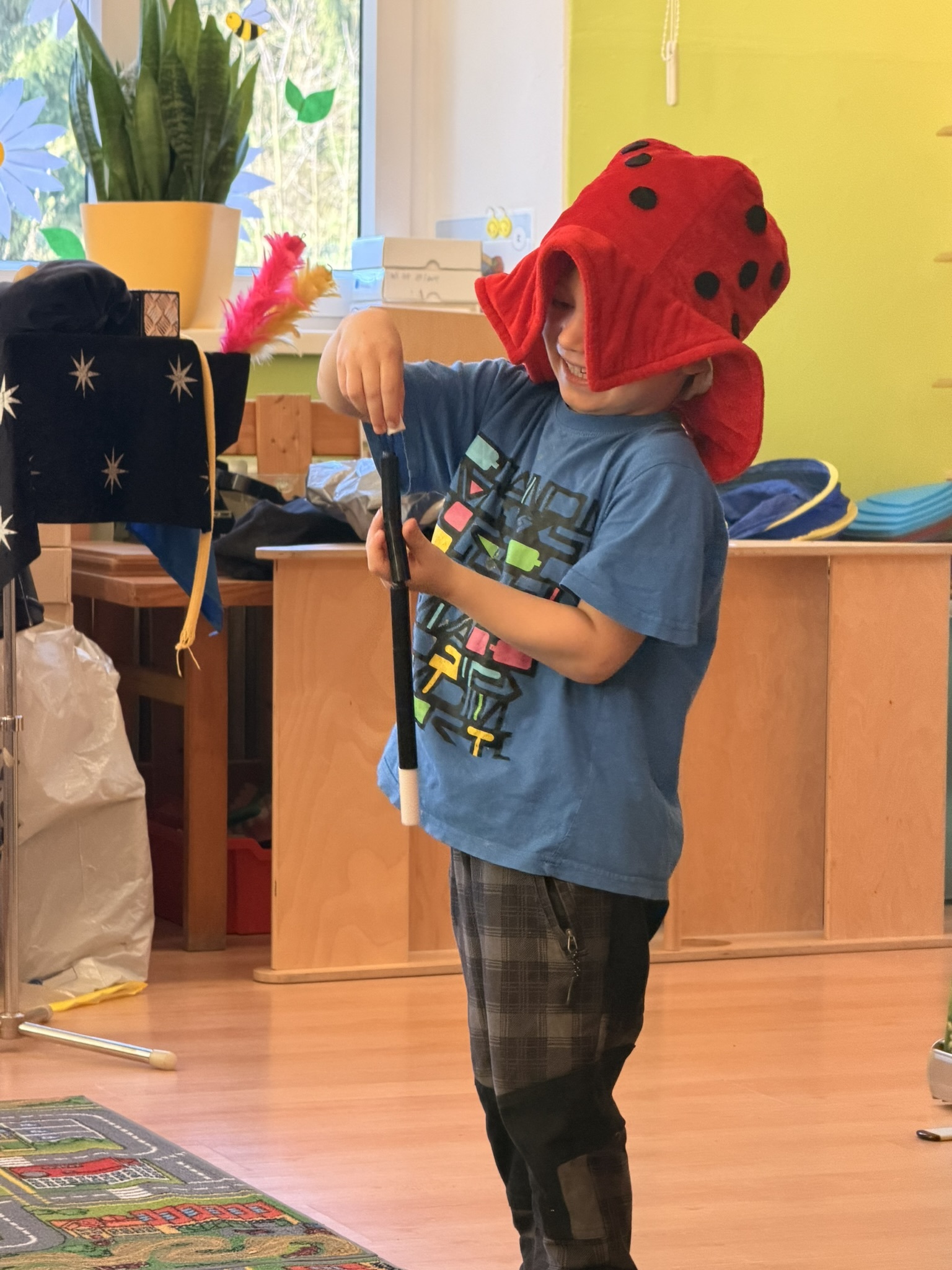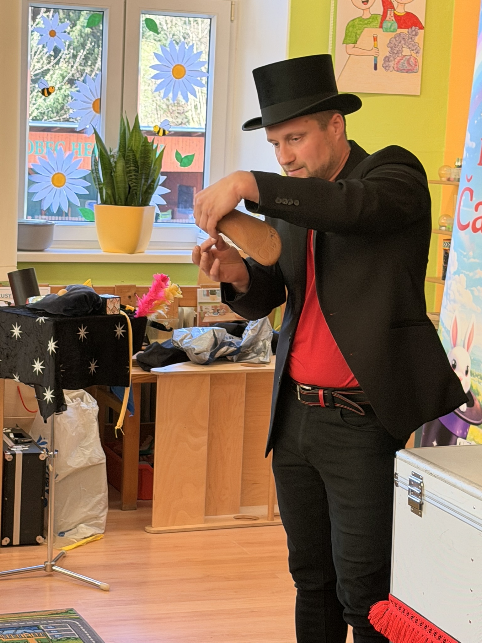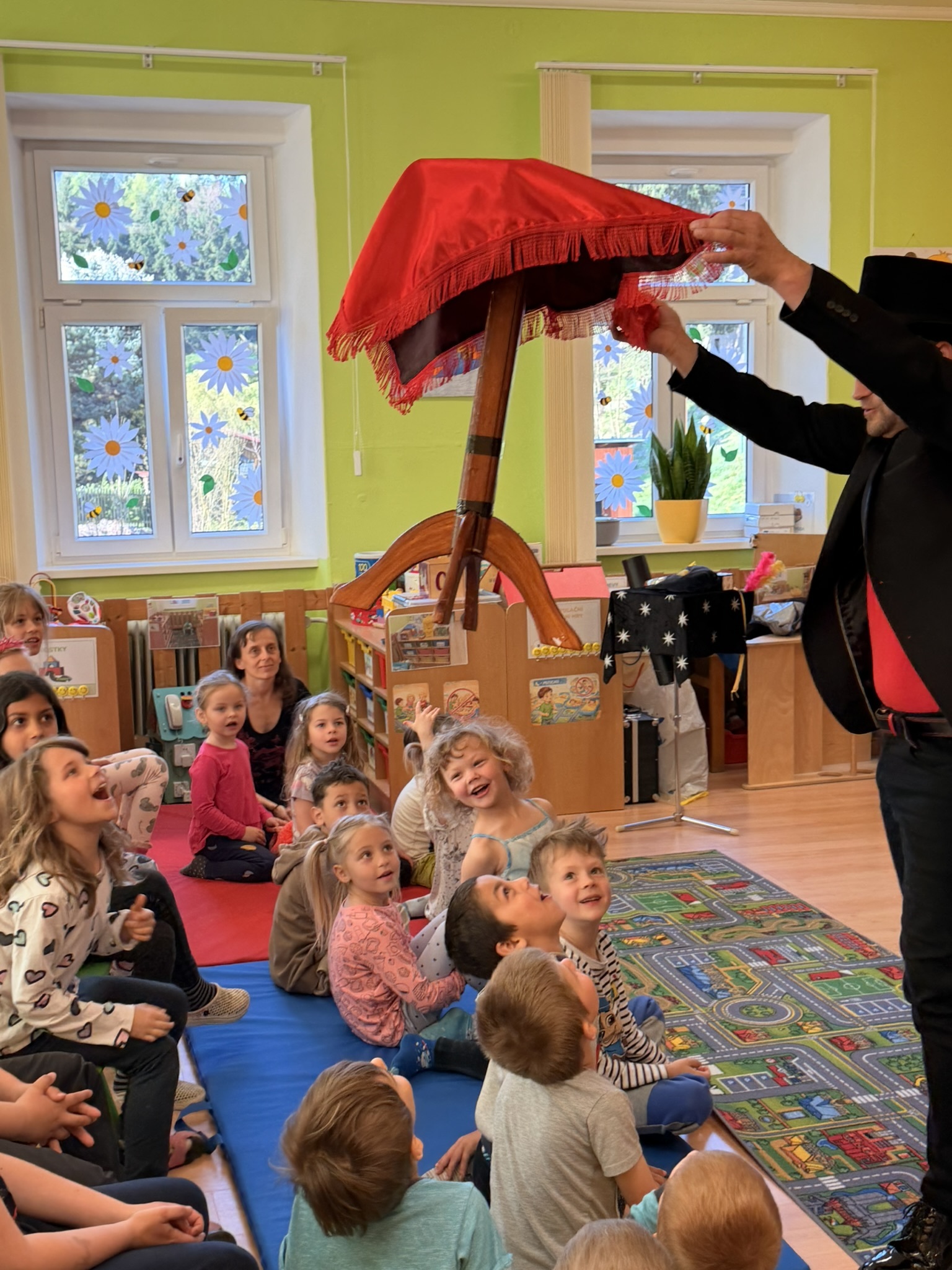 Dnešní den nám zpestřil svou návštěvou kouzelník Čaroslav, který si získal pozornost dětí hned v první minutě svého vystoupení. Od samého začátku bylo jasné, že nás čeká nezapomenutelná show plná překvapení, smíchu a úžasu.