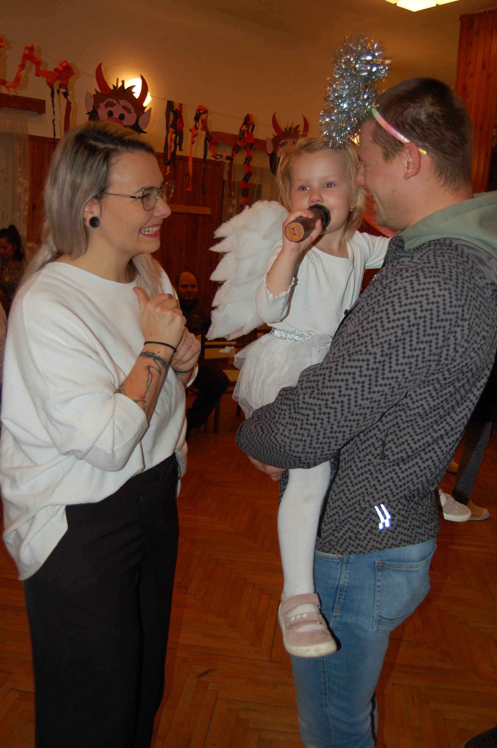 Po oficiálním programu jsme si společně zatančili, zahráli si oblíbenou židličkovanou a užili si příjemné chvíle s rodiči, dětmi a přáteli. Besídka by samozřejmě nebyla úplná bez návštěvy Mikuláše a čerta, kteří dorazili společně s panem starostou a přinesli dětem milou nadílku, za kterou velmi děkujeme.