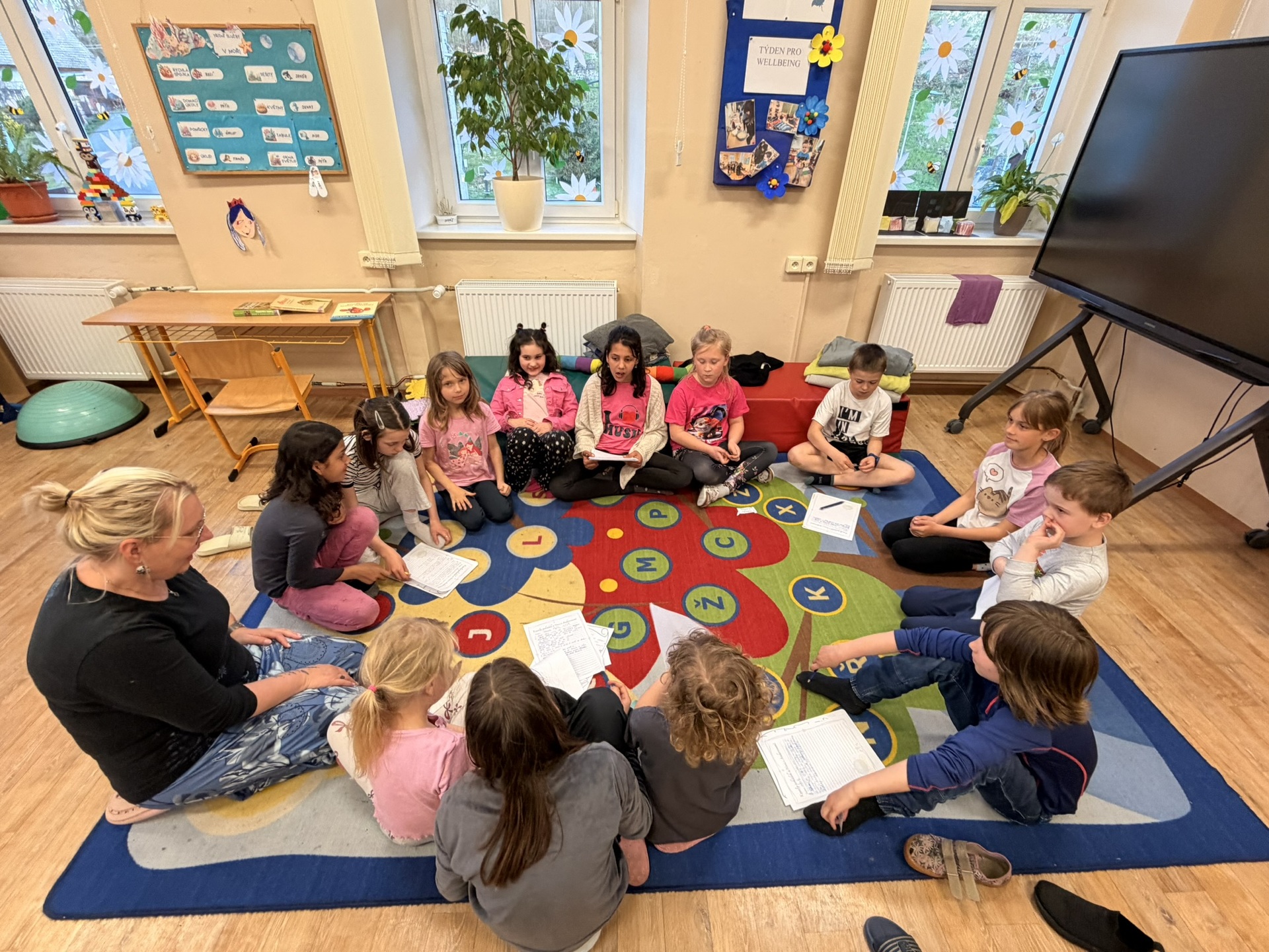 Celý program jsme zahájili v kroužku povídáním o našich nejoblíbenějších knihách. Děti si navzájem představily své oblíbené příběhy, hrdiny i knížky, ke kterým se rády vracejí. Poté jsme se posilnili společnou večeří a mohli se vydat do světa pohádek slavného dánského spisovatele Hans Christian Andersen.