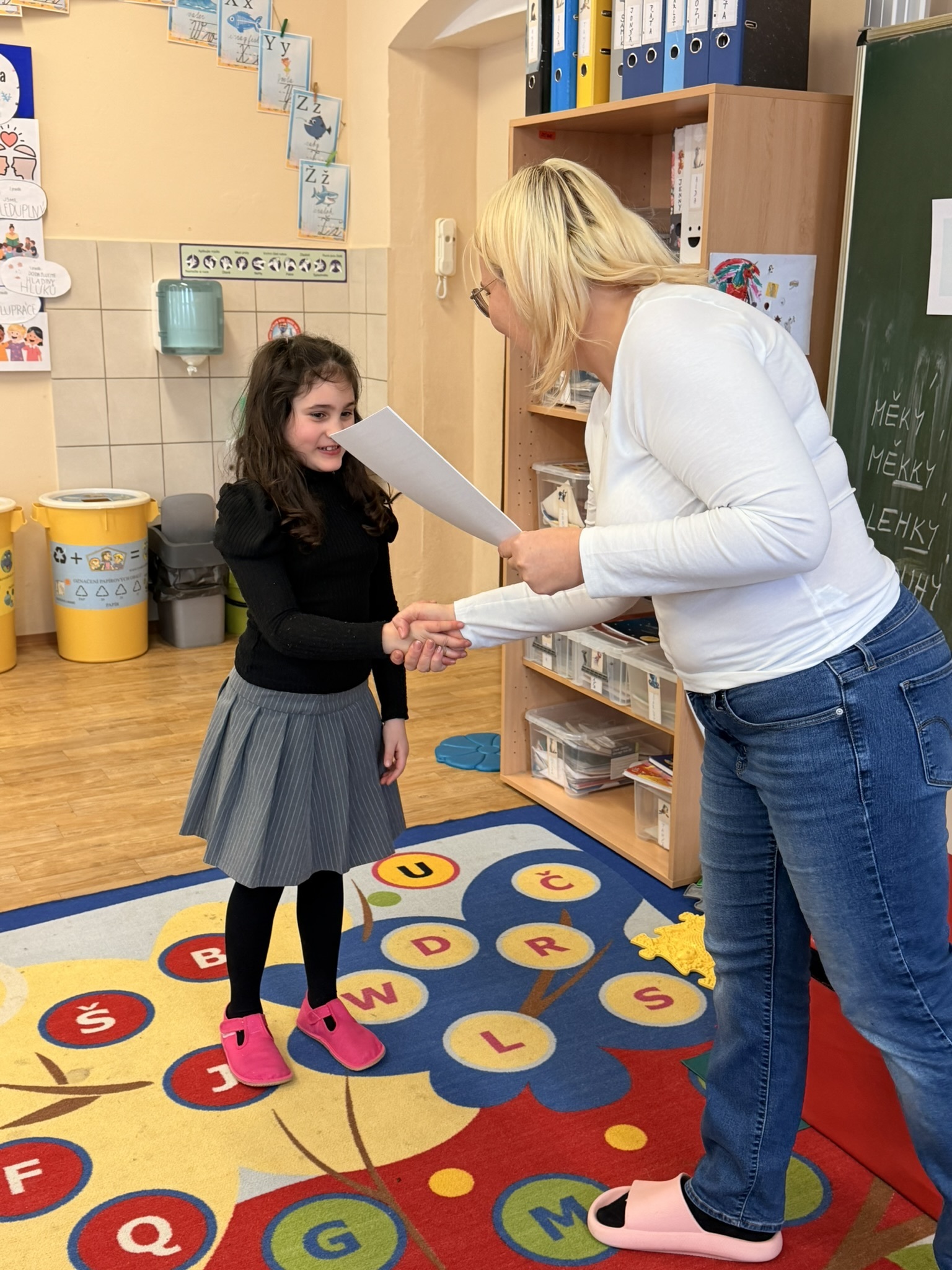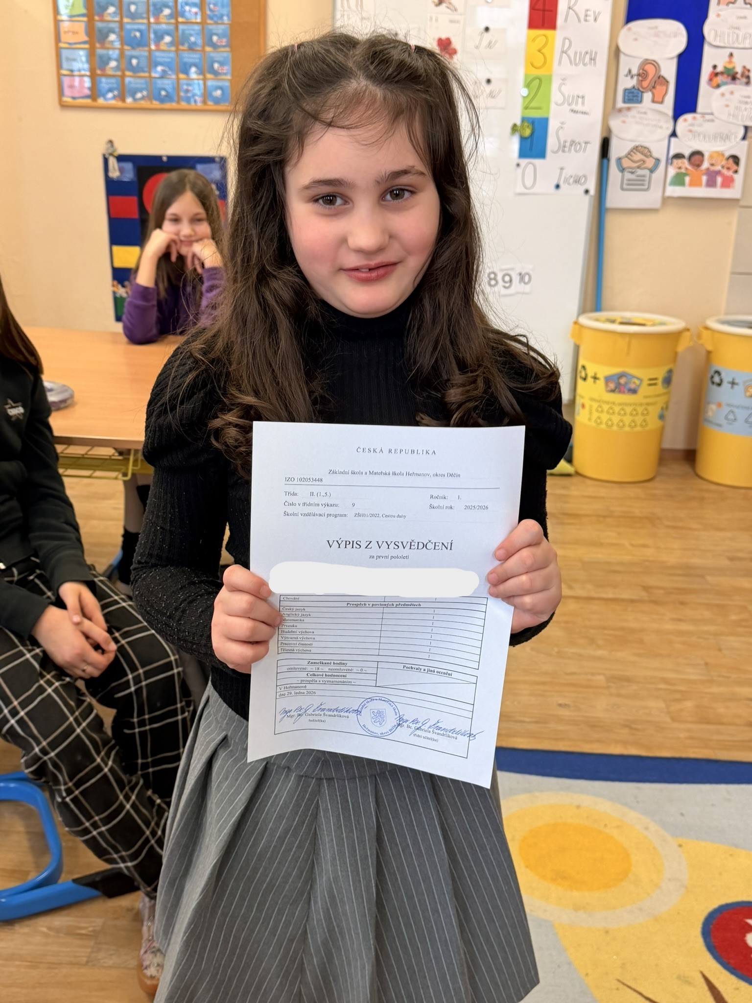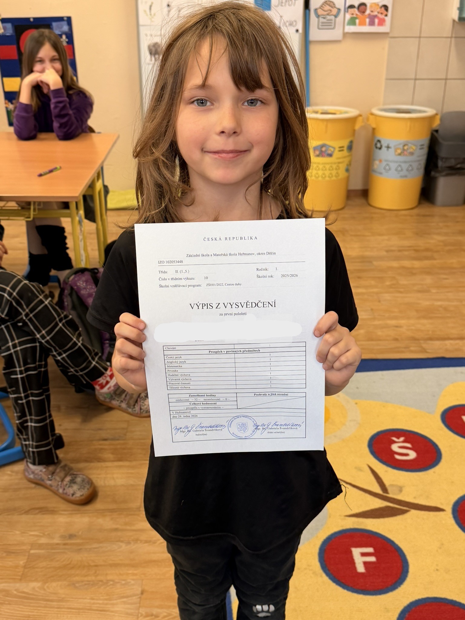 Poslední školní lednový den patřil pololetnímu vysvědčení – a byla to opravdu milá událost. Společně jsme si užili slavnostní atmosféru, ohlédli se za uplynulými měsíci a připomněli si, kolik nových věcí se děti od začátku školního roku naučily.