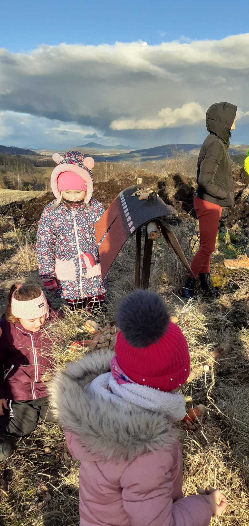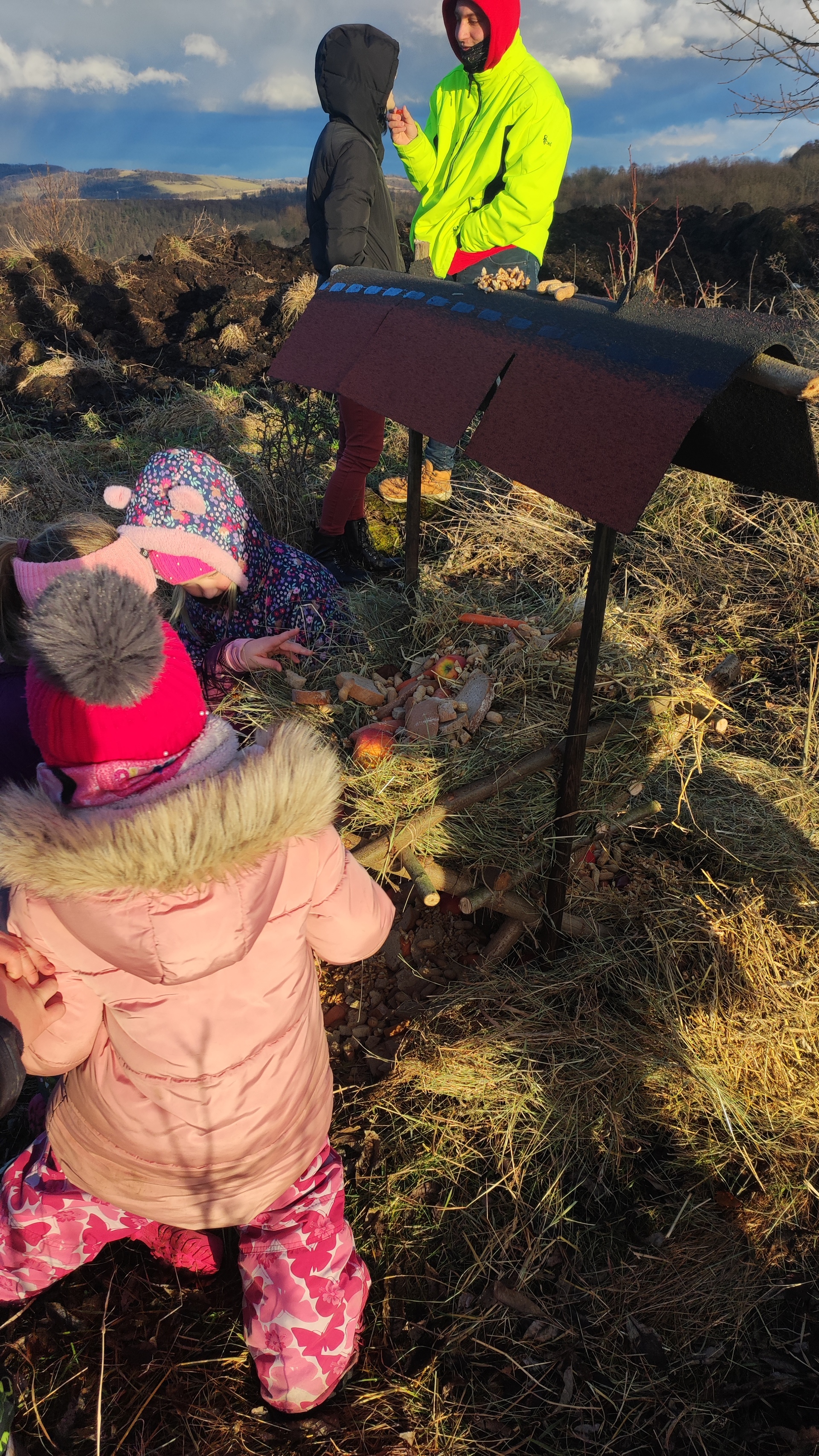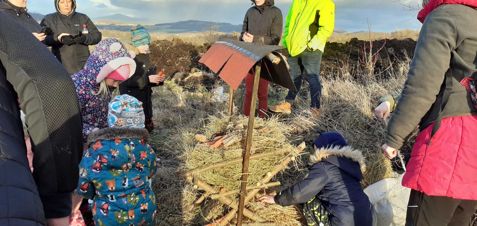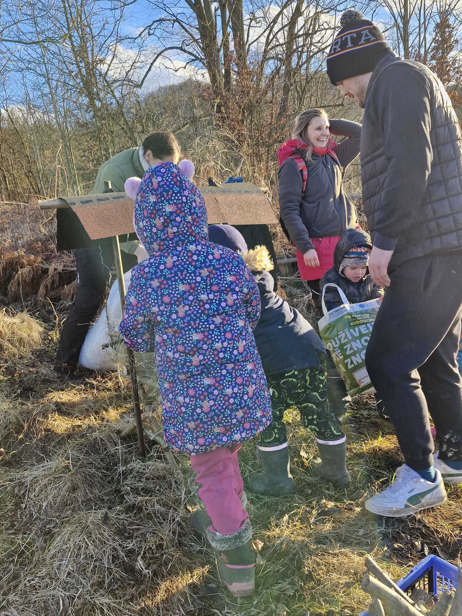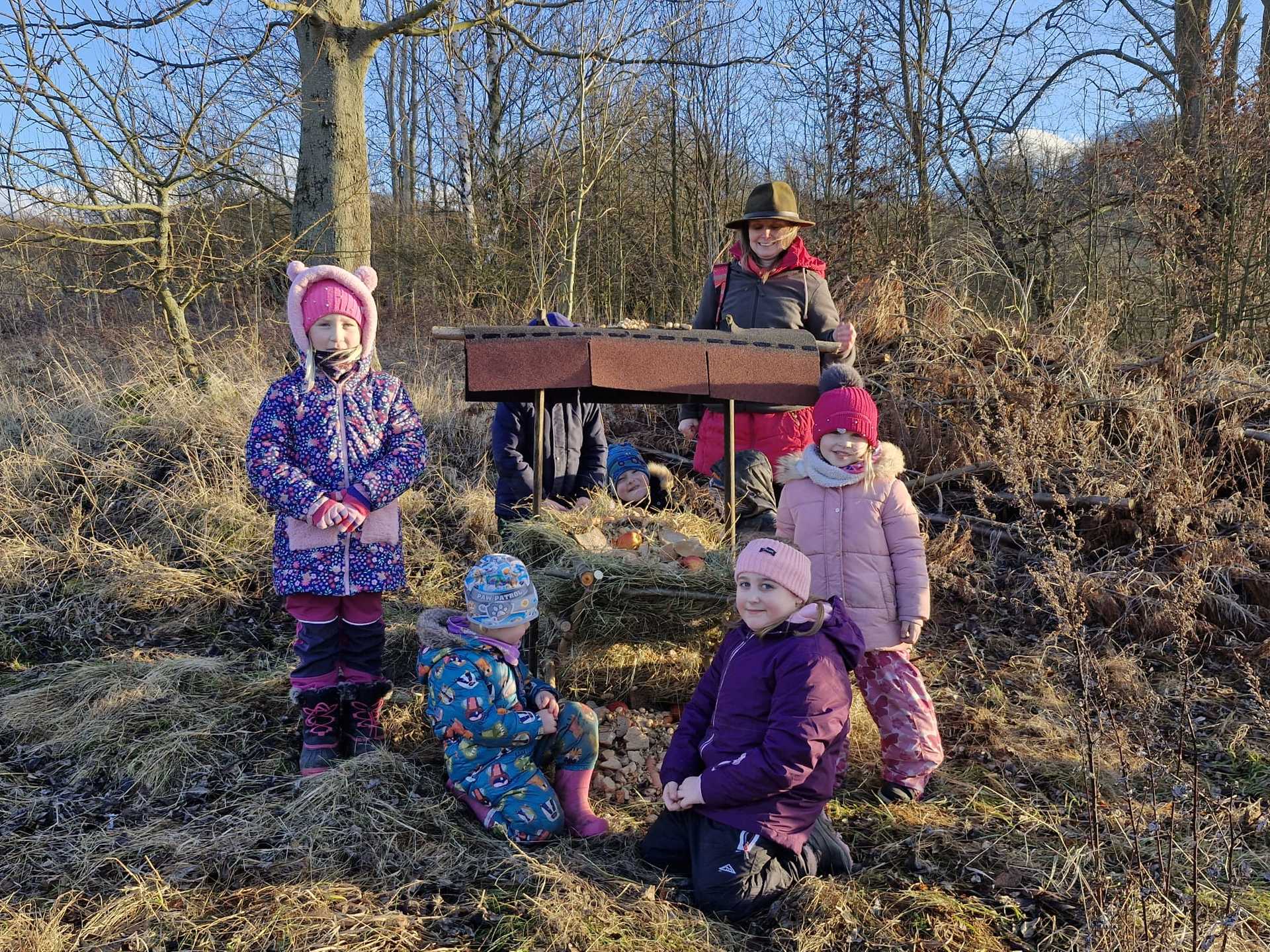 V rámci druhé etapy soutěže „MISE POCHOP“, jsme se ve středu 29. ledna společně s rodiči vypravili k lesu, kde jsme spojili síly a vyrobili krmelec pro lesní zvířátka. Počasí nám přálo – sluneční paprsky a pár kapek deště vytvořily na nebi nádhernou duhu. Dílo se nám opravdu povedlo a každý přiložil ruku k dílu.