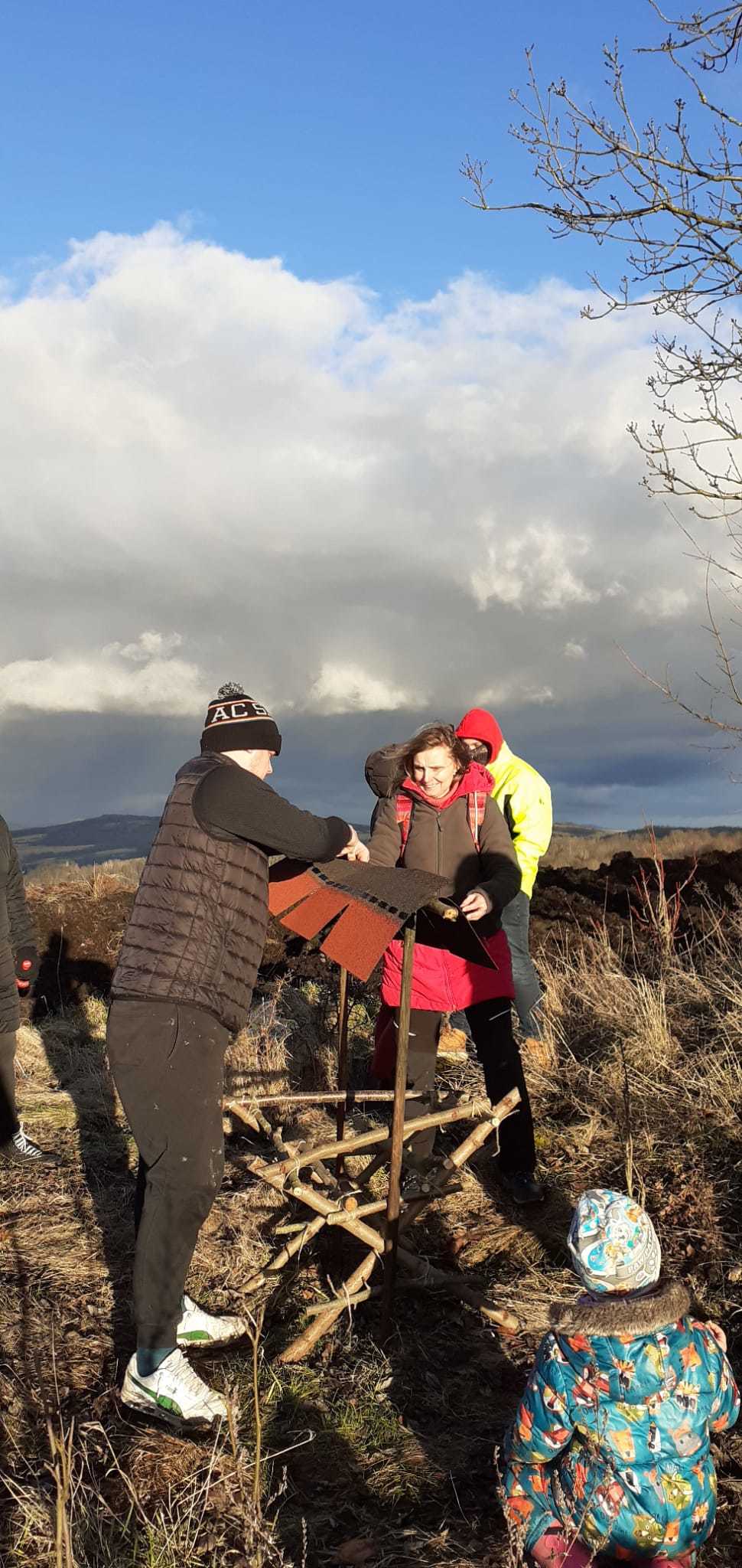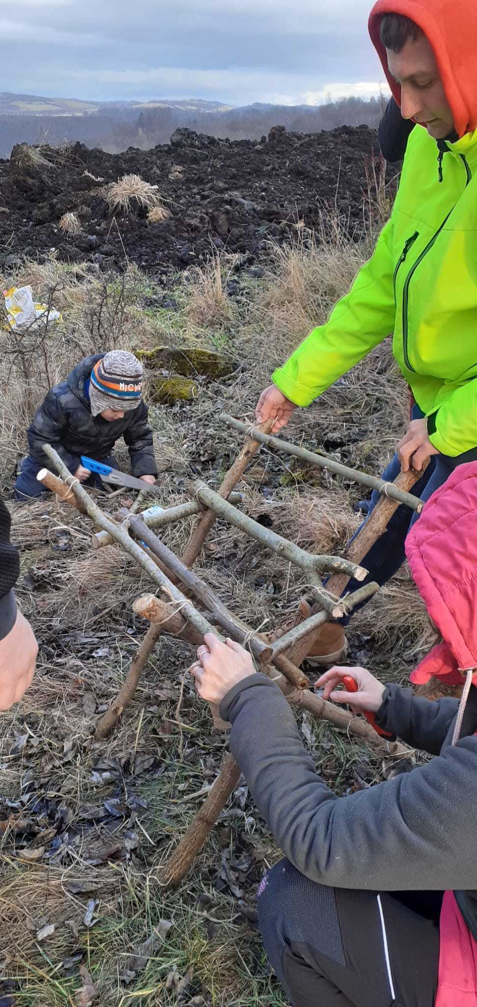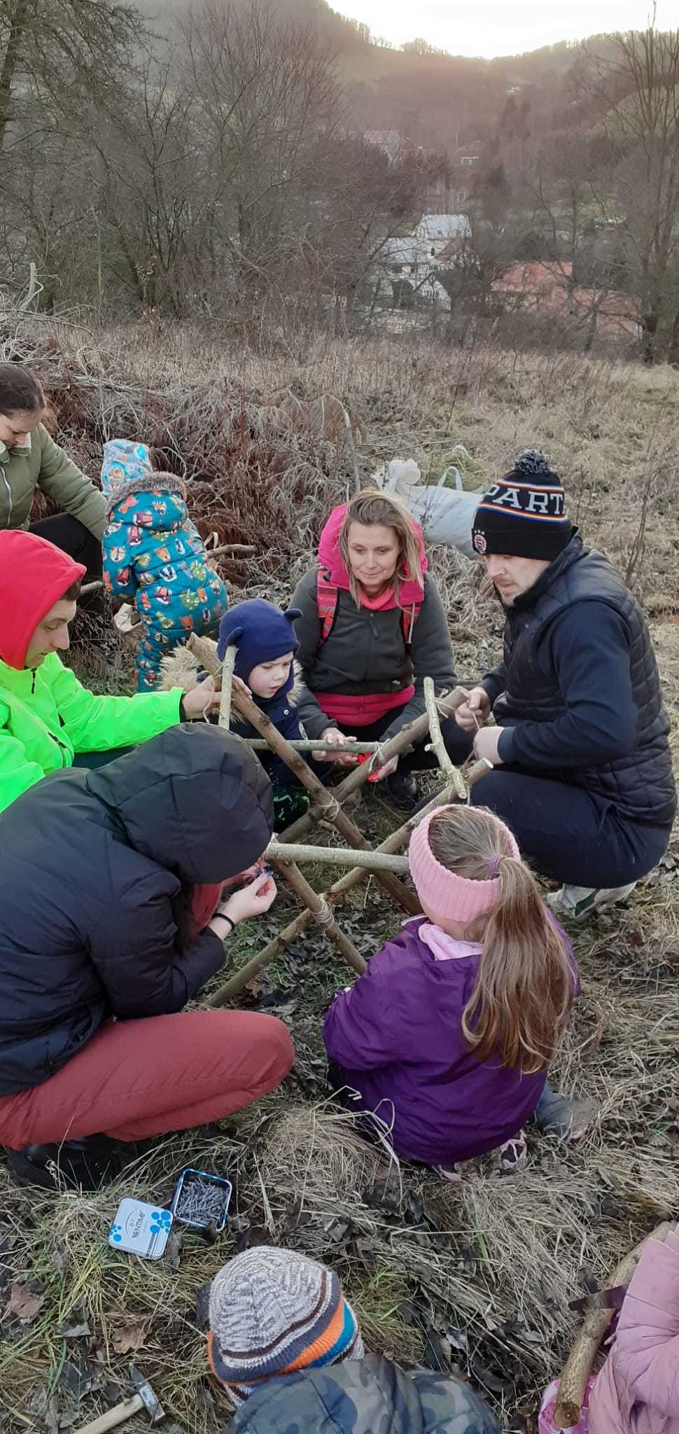 Děti si vyzkoušely řezání pilkou i zatloukání hřebíků, zatímco šikovní rodiče pomáhali s konstrukcí samotného krmelce, včetně stříšky. Po dokončení jsme krmelec naplnili jídlem pro zvěř, které děti s rodiči přinesli. Připravili jsme tak opravdovou hostinu pro lesní zvířátka, aby měla něco navíc do zásoby během zimních měsíců. Byly tam, oříšky pro veverky, jablka a mrkve pro zajíčky a seno pro srny a jeleny.