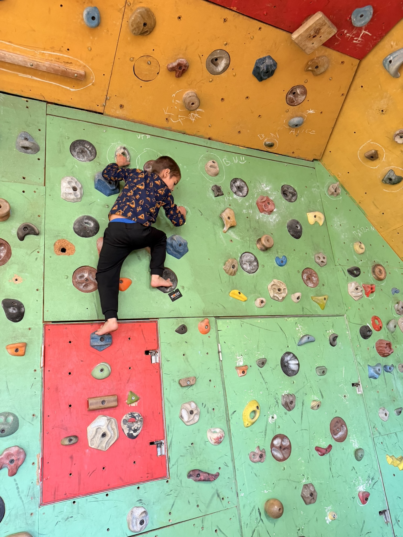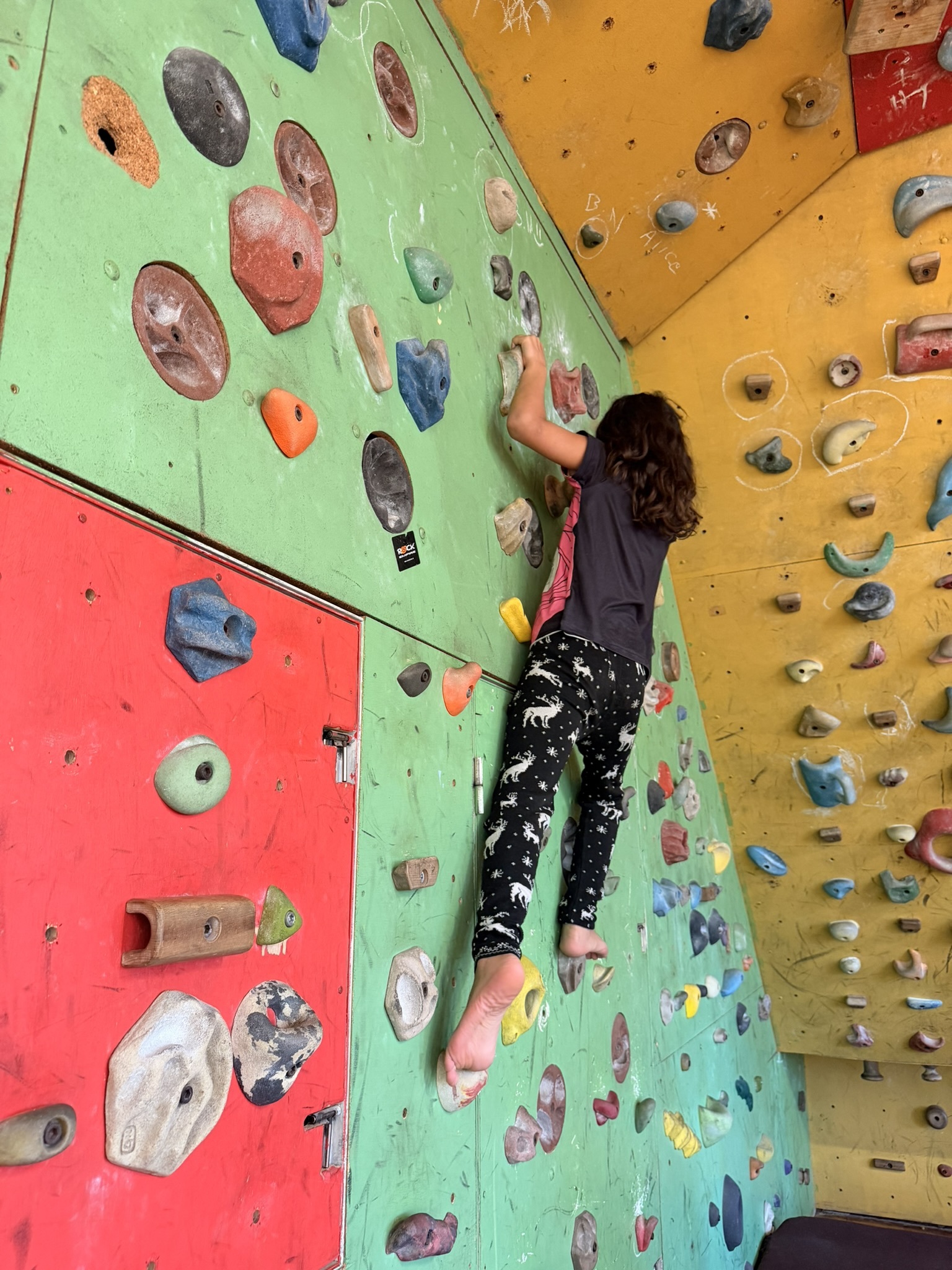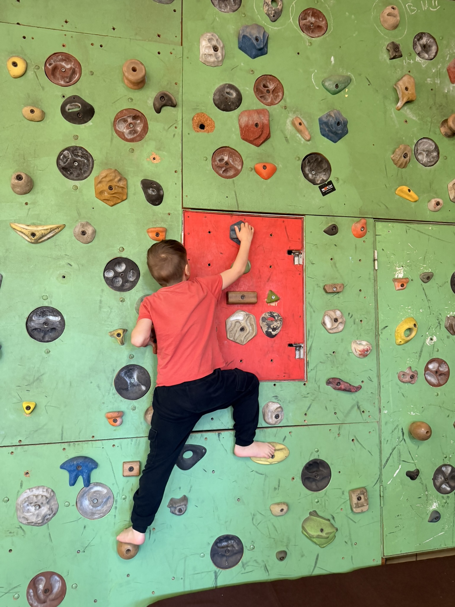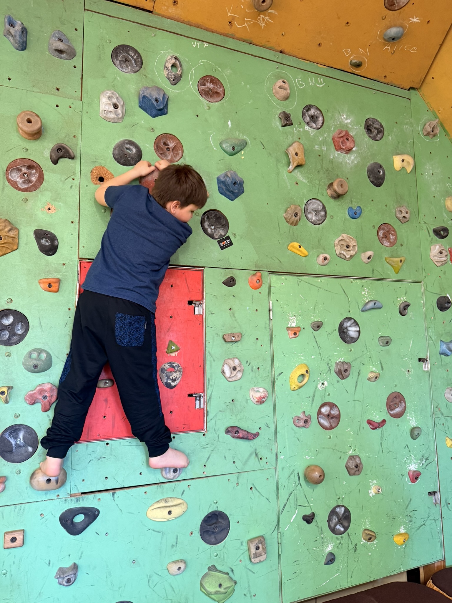 V hodině tělesné výchovy jsme si tentokrát vyzkoušeli lezení na horolezecké stěně. Děti při lezení procvičily především sílu celého těla, koordinaci pohybů, rovnováhu i správné držení těla. Zároveň si trénovaly vytrvalost, soustředění a také odvahu překonávat samy sebe.