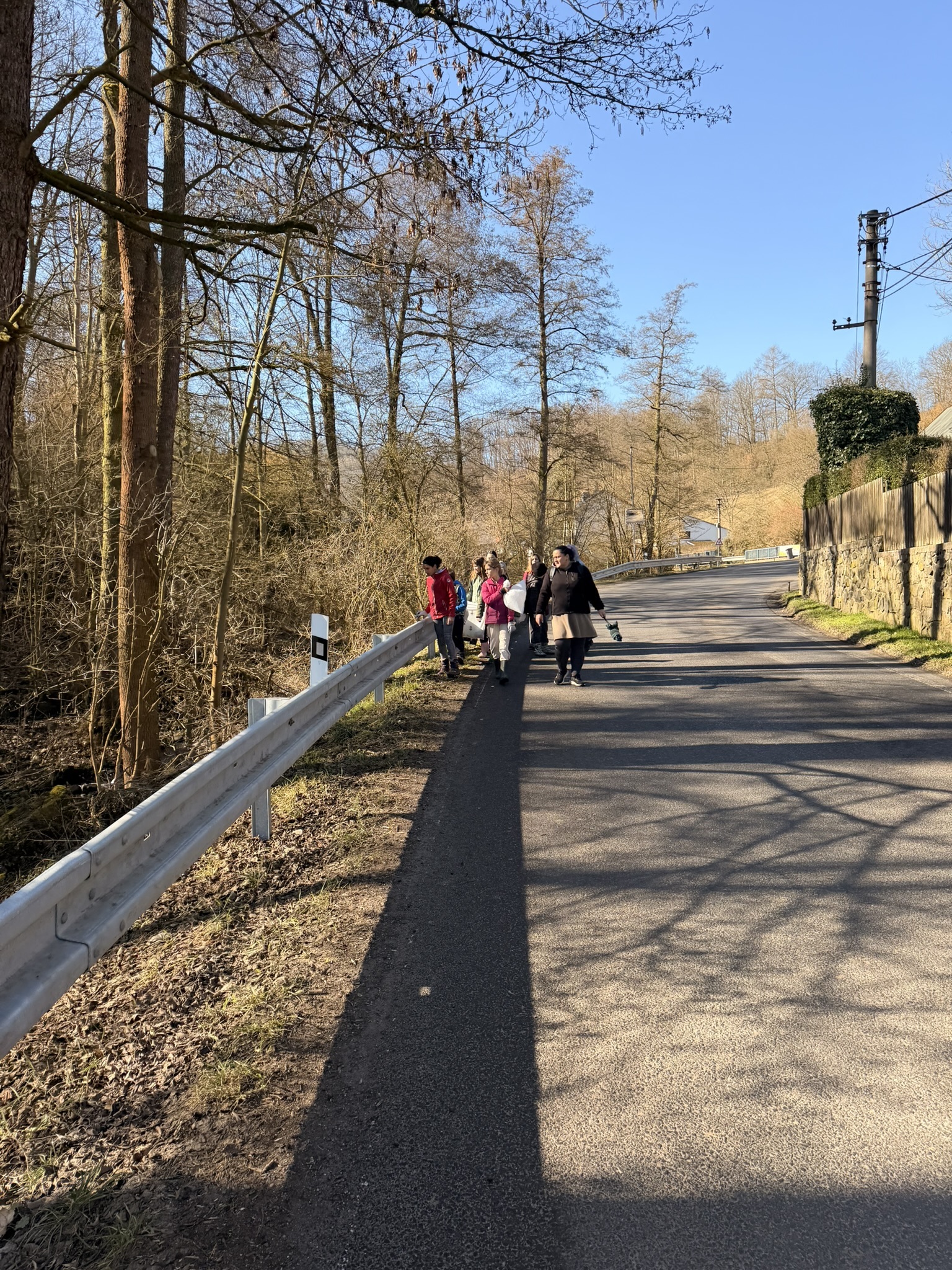 Nejprve jsme prošli část naší obce a vysbírali odpadky, které jsme po cestě našli. Poté jsme se vydali k potůčku v lese, kde máme své oblíbené místo. To jsme nejdříve důkladně uklidili a potom jsme pokračovali i proti proudu potoka, abychom zkontrolovali, zda se někde neskrývá další odpad.