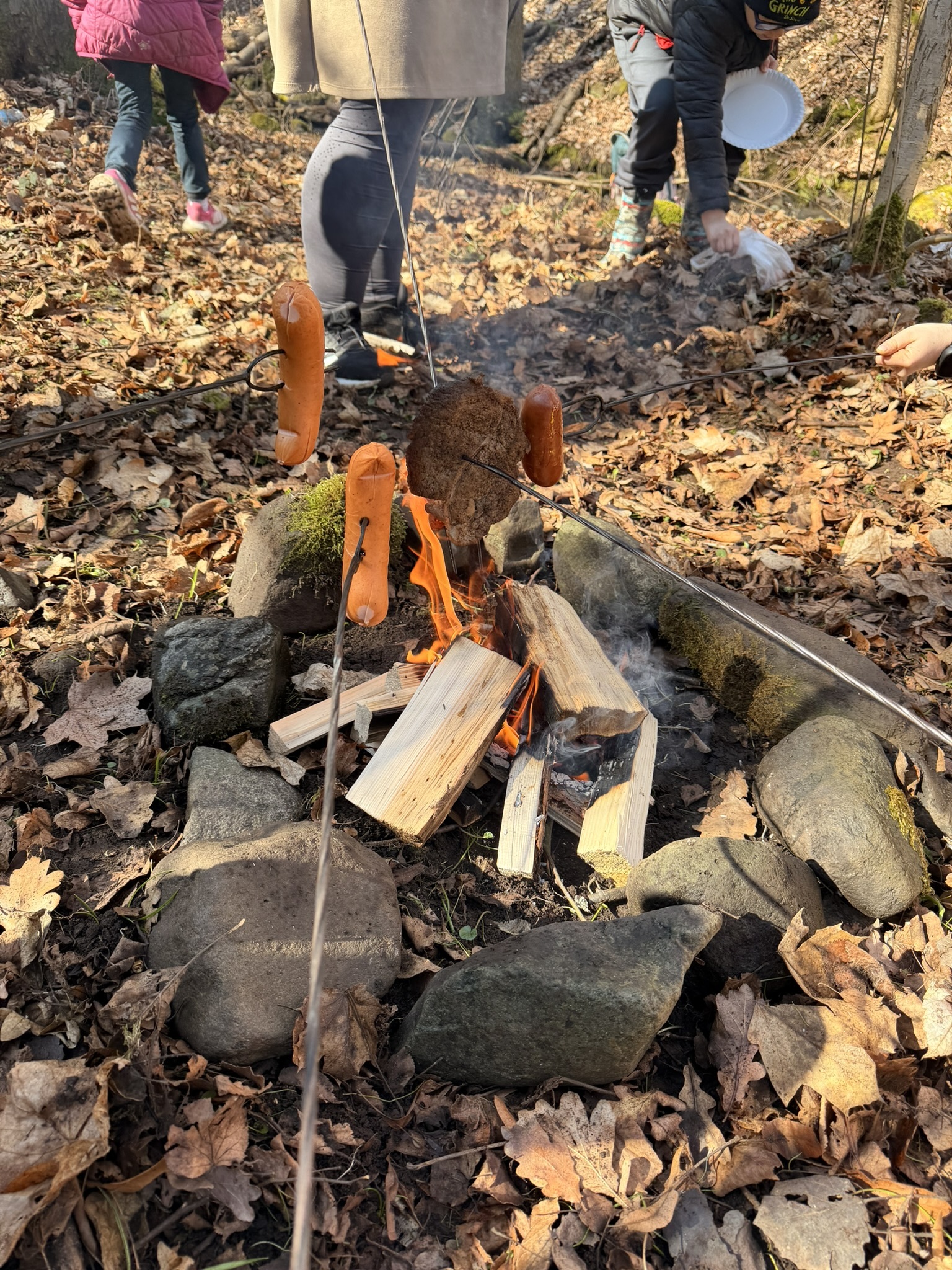 Po dobře odvedené práci přišla i zasloužená odměna. Na závěr jsme si rozdělali oheň a místo oběda jsme si opekli buřty. Posilněni a s dobrým pocitem z užitečné práce jsme se potom vydali zpět ke škole.