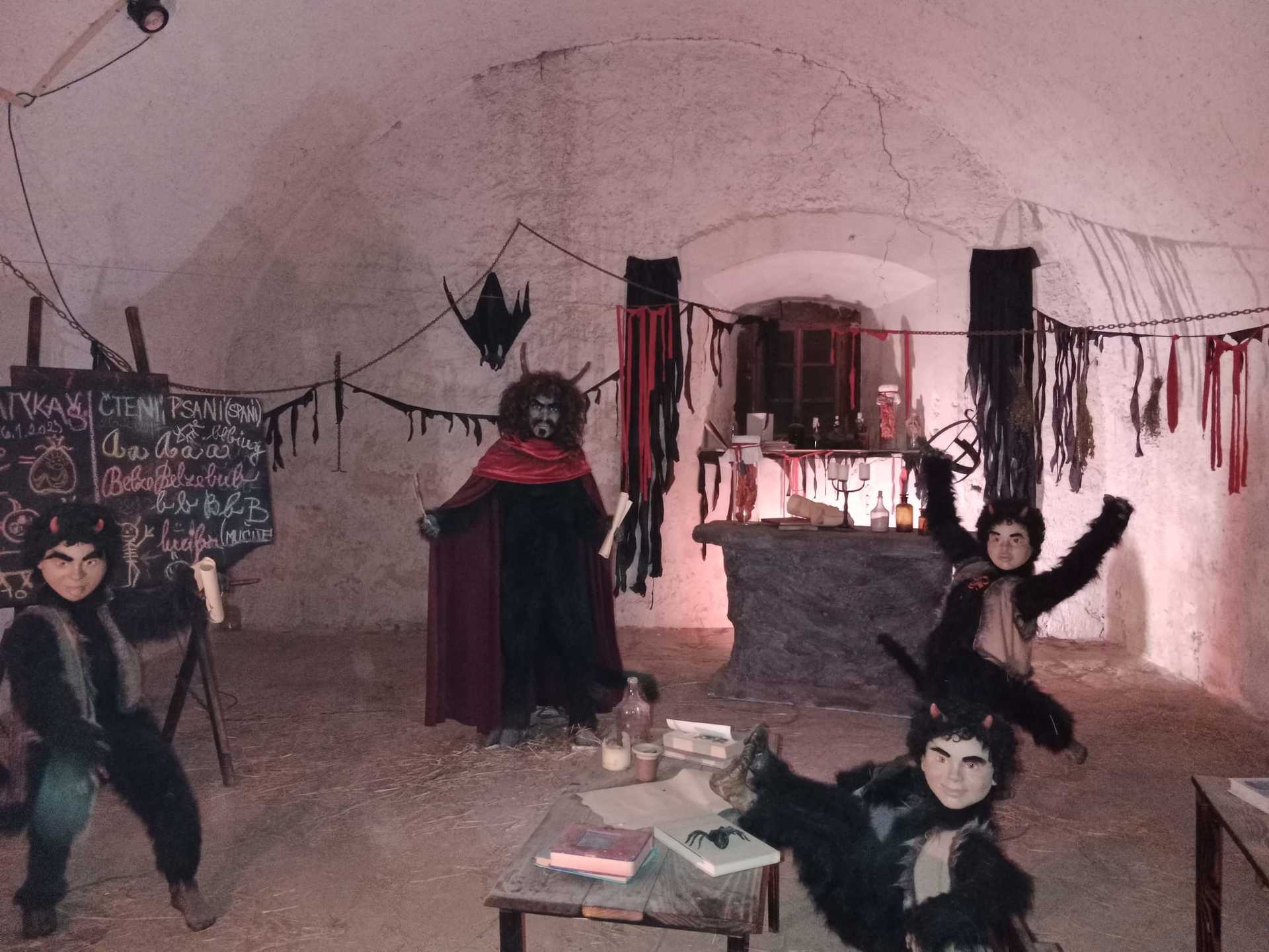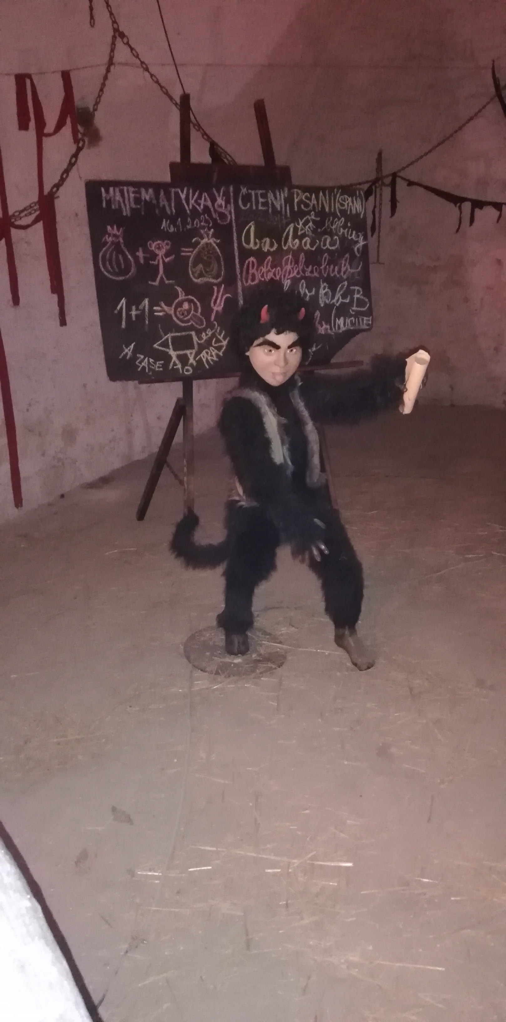 Po prohlídce se děti vydaly do sklepení zámku na expozici „Čertí školy“. Tato část byla pro některé opravdu tajemná a trochu strašidelná. Viděly obří kotel na zlobivé děti, čertí poštu, kouzelný dalekohled, třídu plnou čertů a jejich pětiminutovou výuku. Nechyběl ani samotný Luciferův trůn, ani možnost zapsat se do čertovské knihy, kterou většina dětí s nadšením využila.