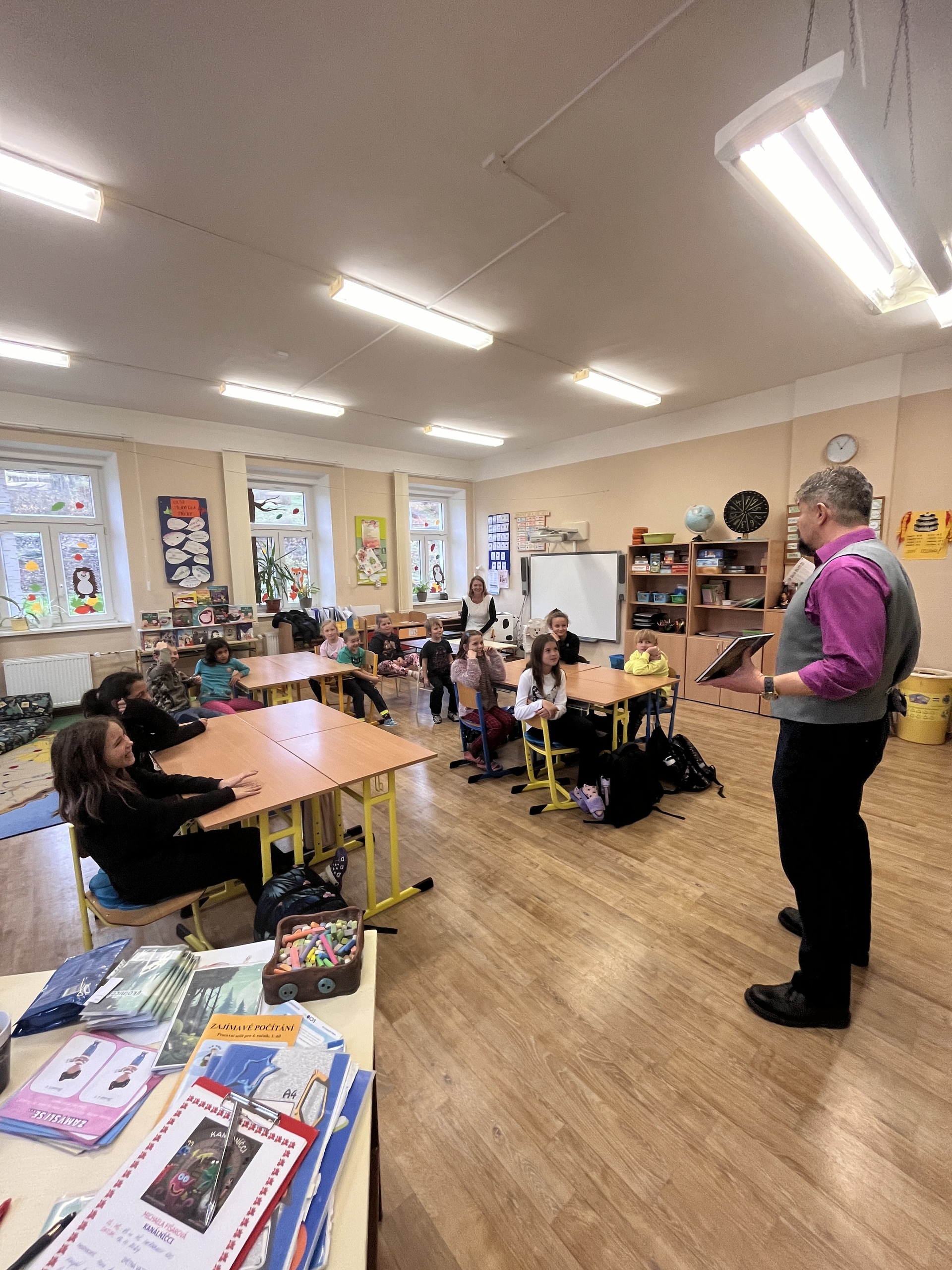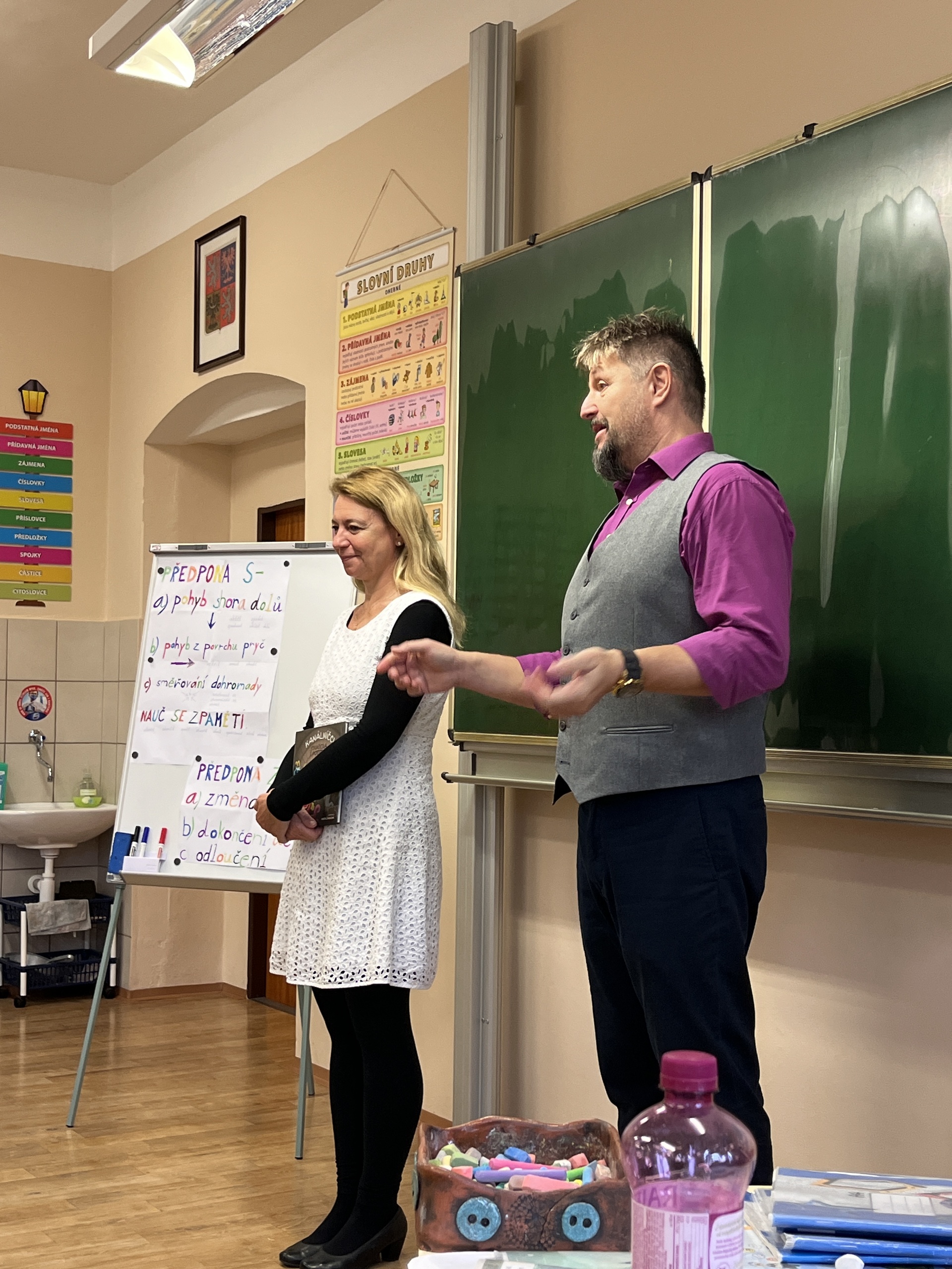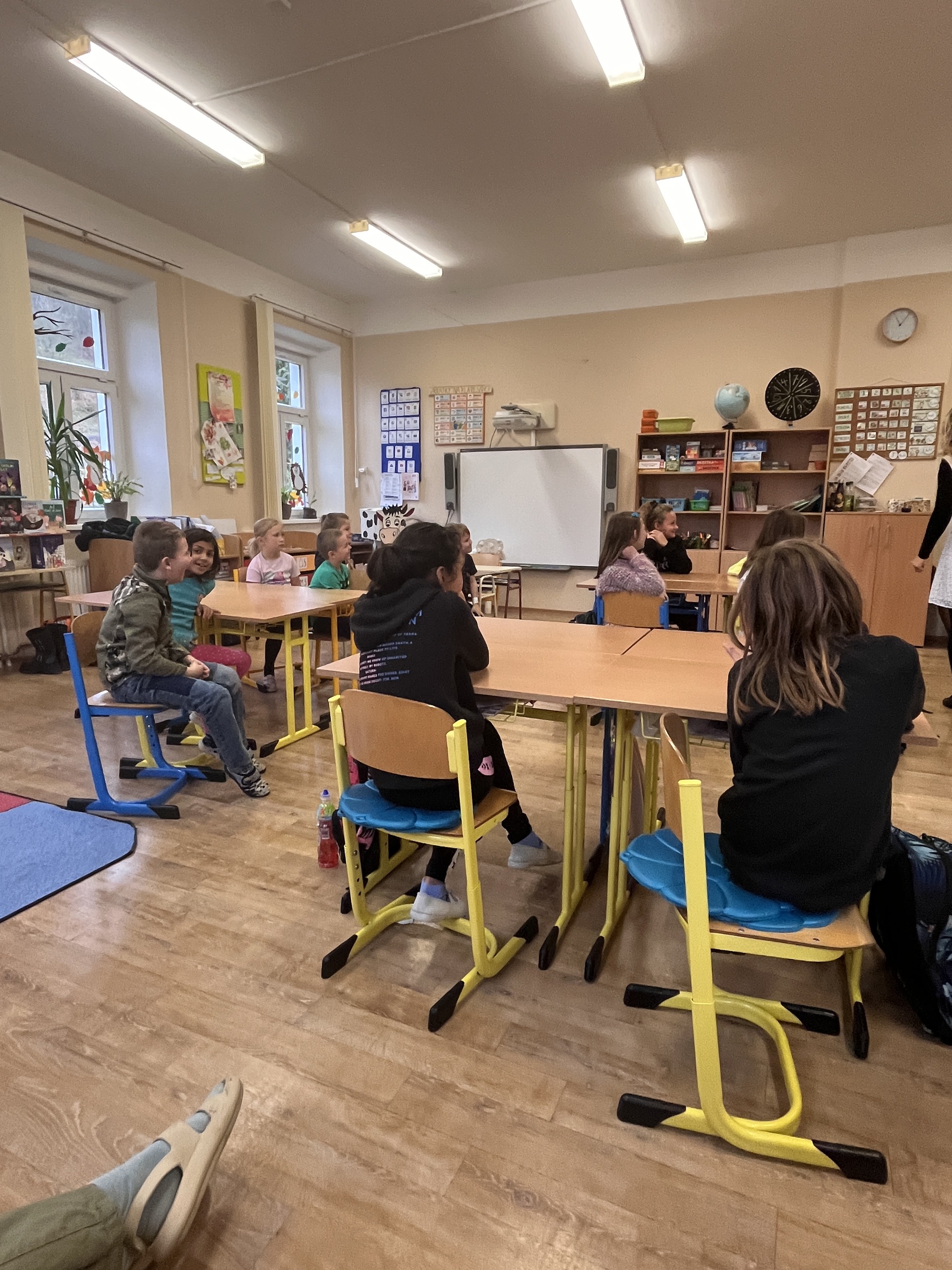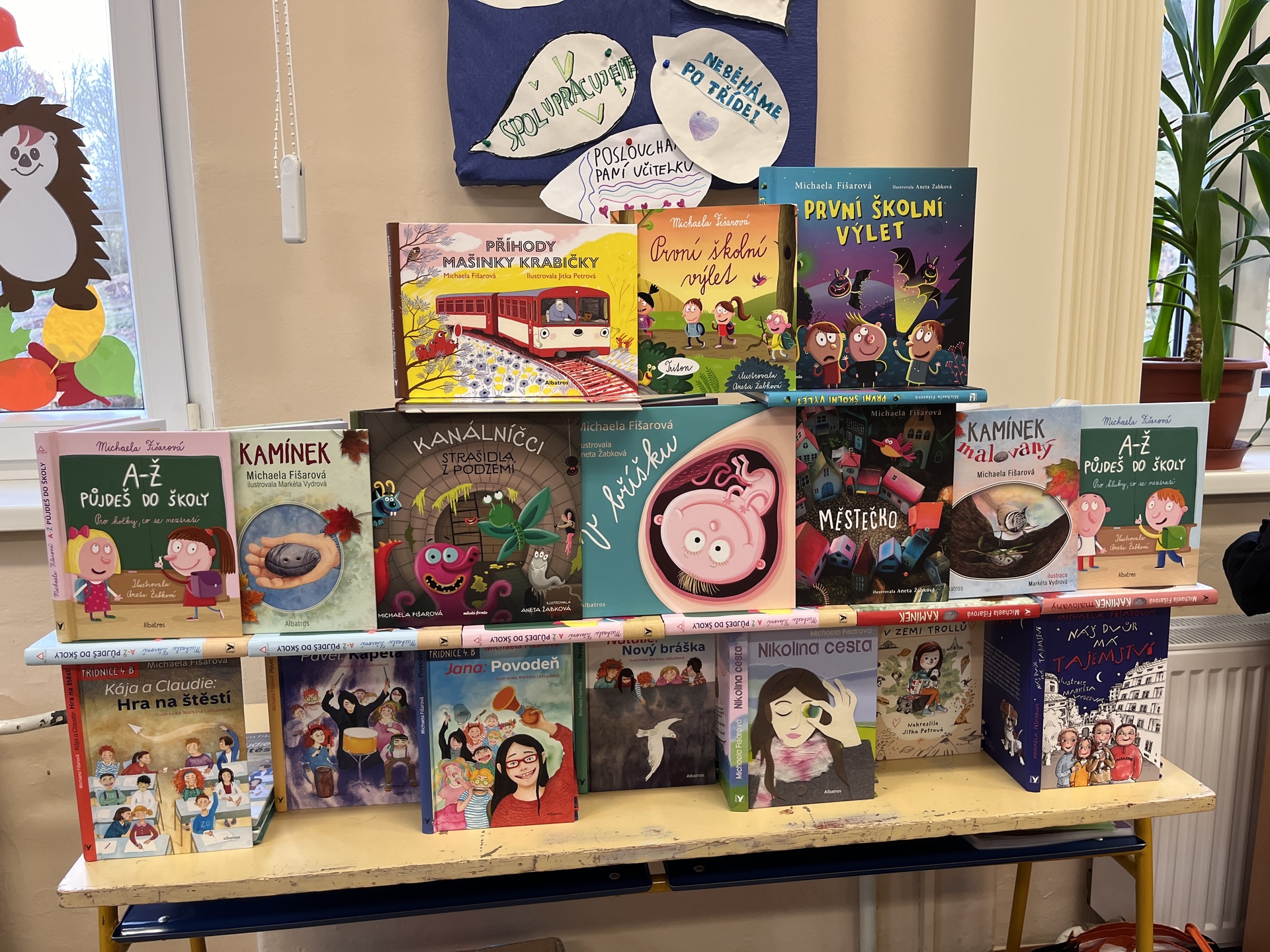 V úterý 12.11. jsme navázali na komiksovou dílnu dalším zážitkem, a to setkáním s autorkou knih pro děti Michaelou Fišarovou. Paní Fišarová má v tuto chvíli vydaných 18 knih pro děti a na dalších aktuálně pracuje. S paní autorkou přijel herec Miroslav Reil, který nám přehrál jednu kapitolu z knihy Kanálníčci- strašidla z podzemí. Představení bylo velmi zábavné a celá beseda velmi inspirující.