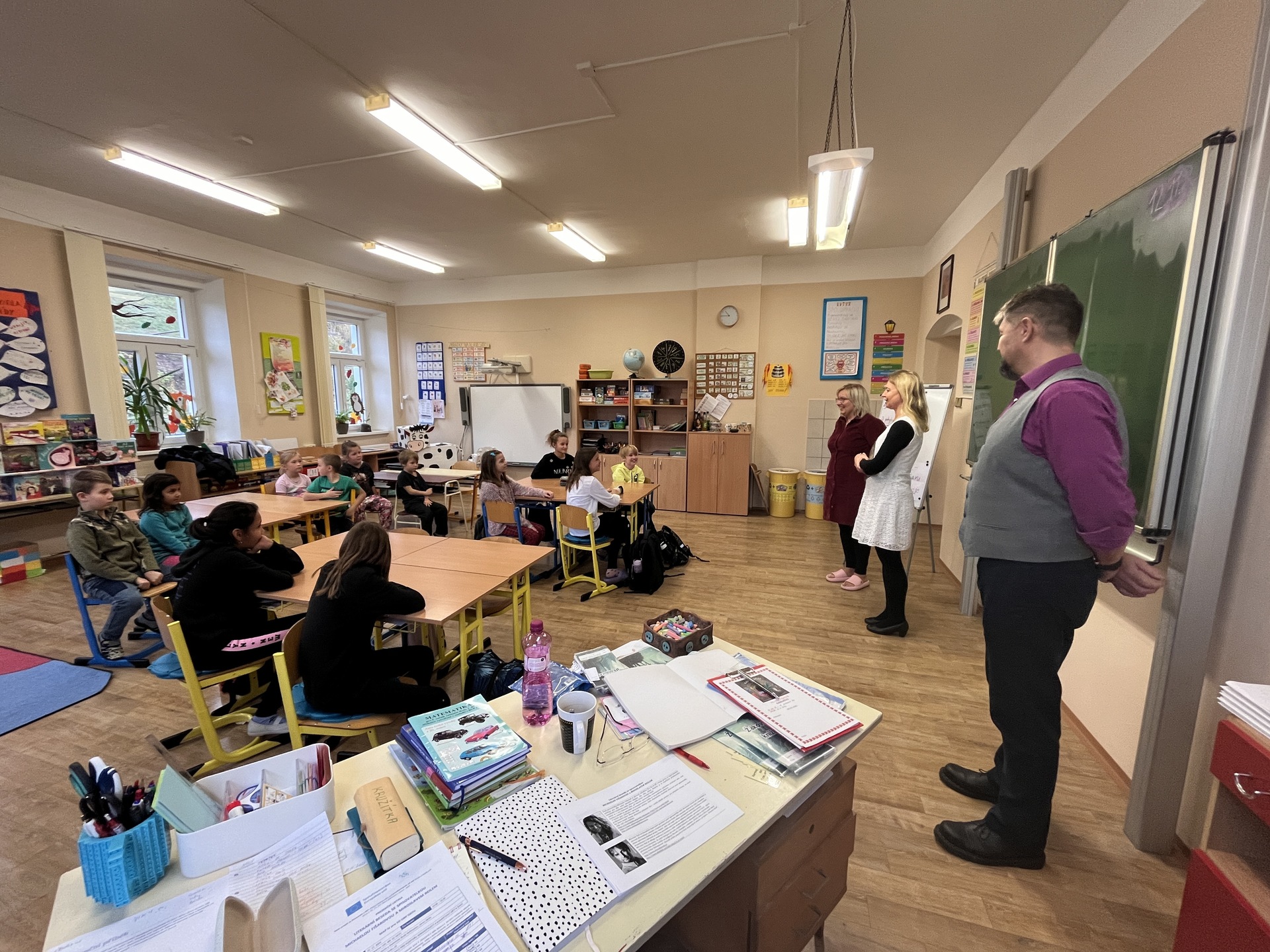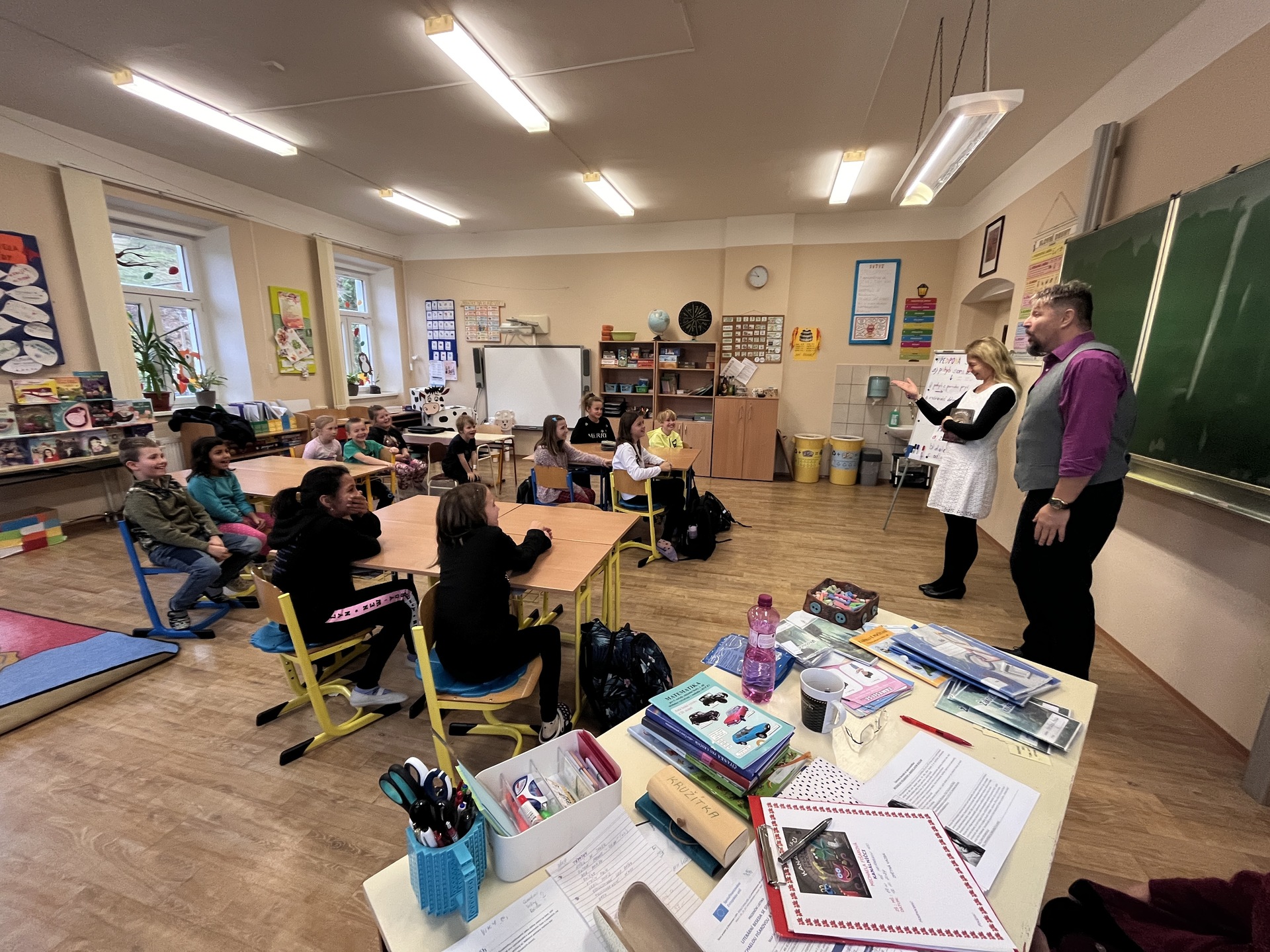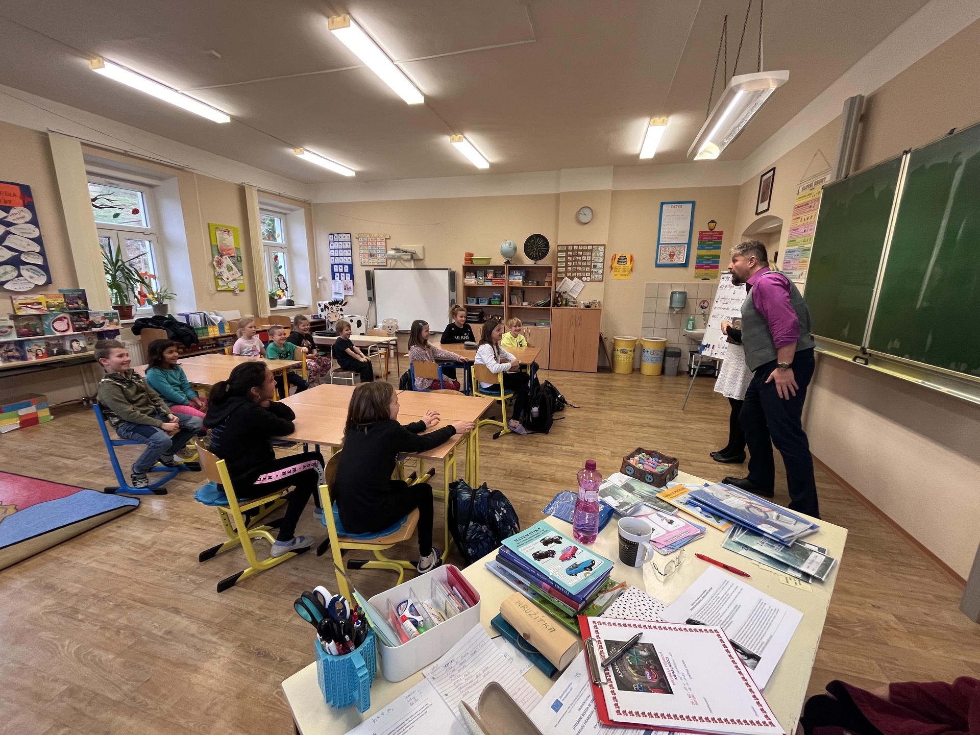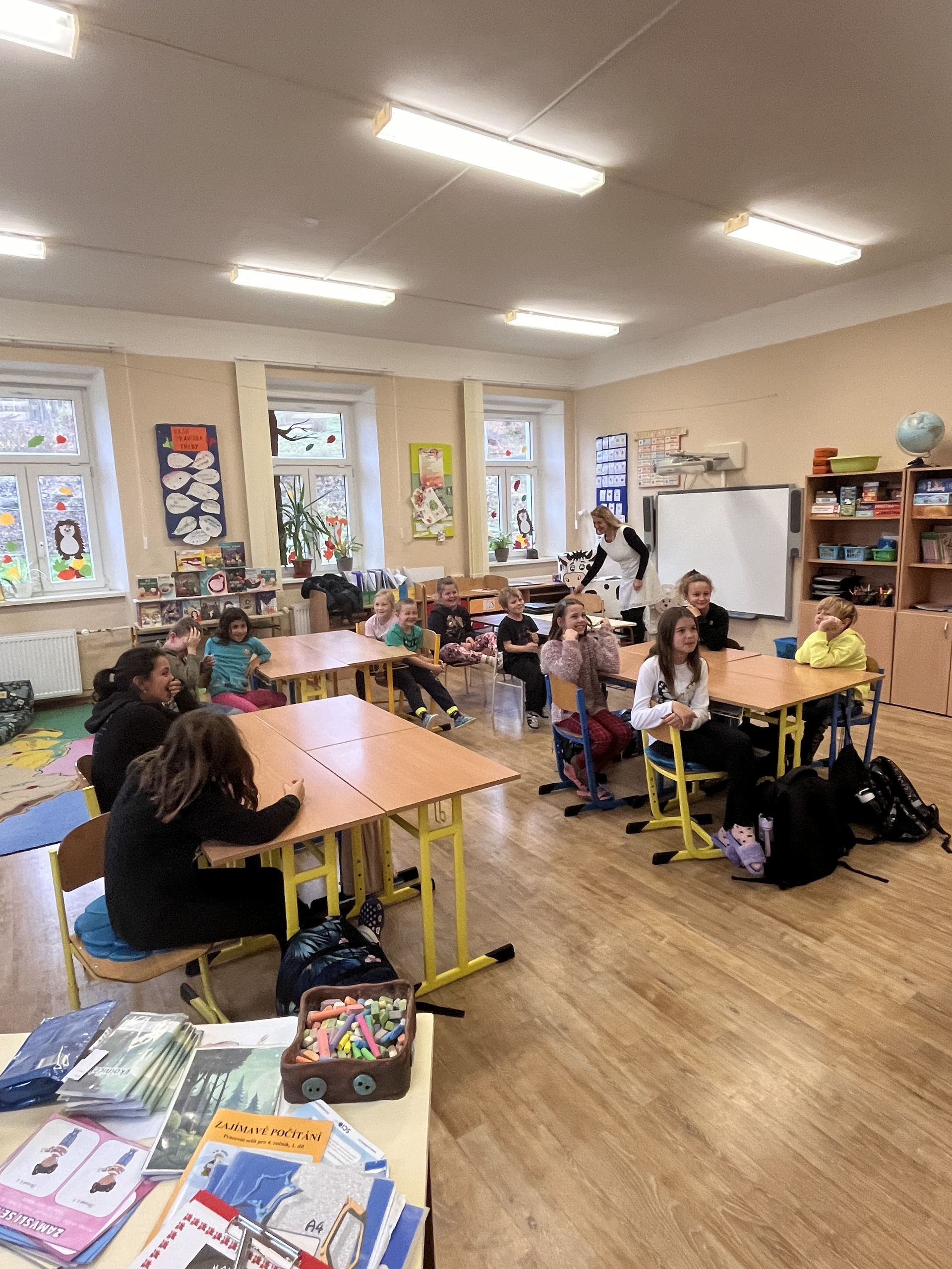 V úterý 12.11. jsme navázali na komiksovou dílnu dalším zážitkem, a to setkáním s autorkou knih pro děti Michaelou Fišarovou. Paní Fišarová má v tuto chvíli vydaných 18 knih pro děti a na dalších aktuálně pracuje. S paní autorkou přijel herec Miroslav Reil, který nám přehrál jednu kapitolu z knihy Kanálníčci- strašidla z podzemí. Představení bylo velmi zábavné a celá beseda velmi inspirující.