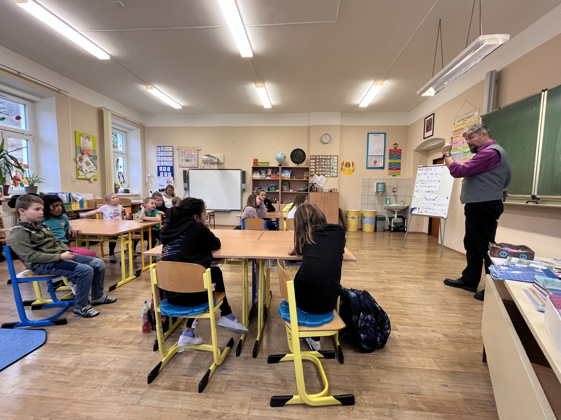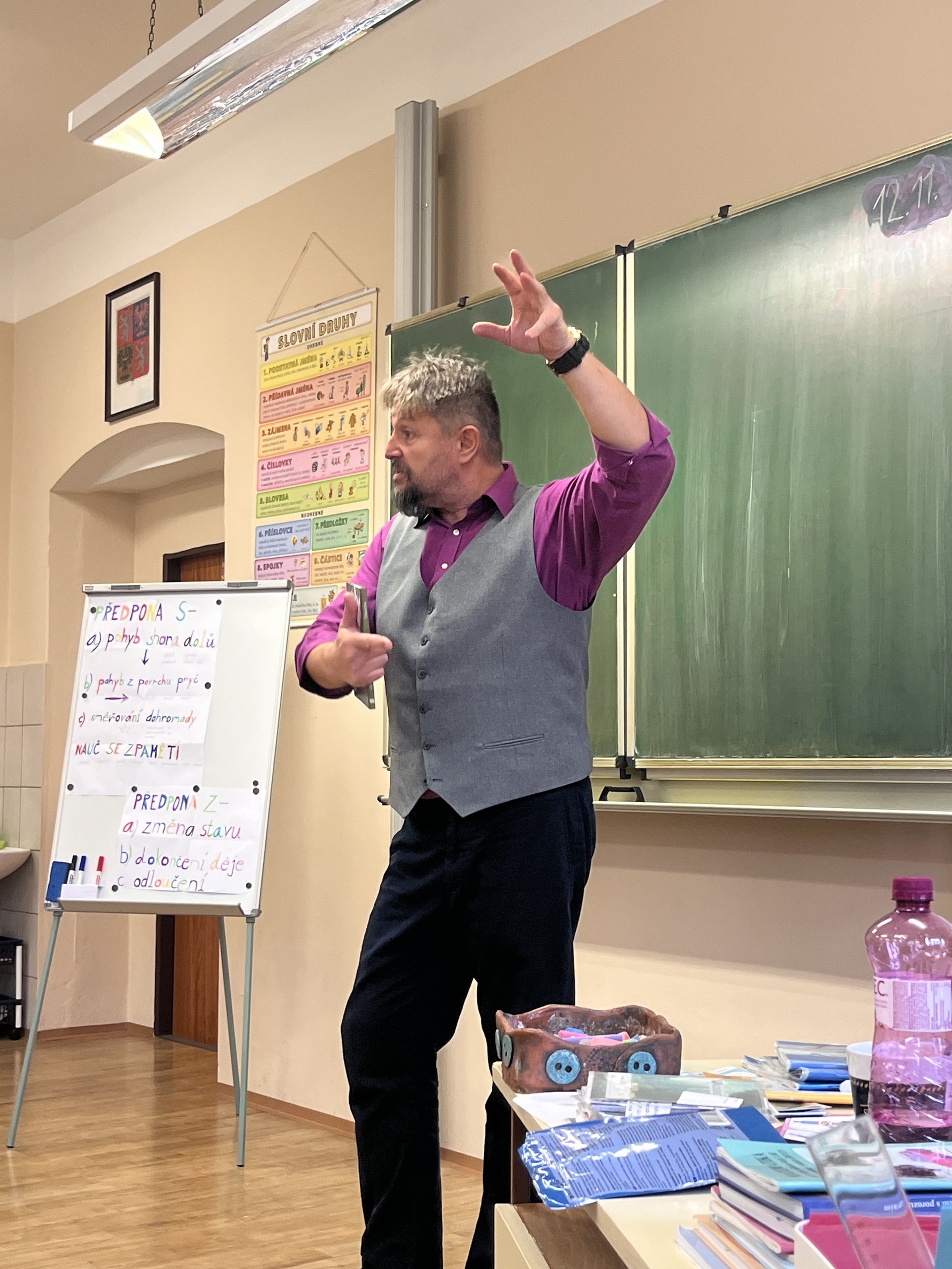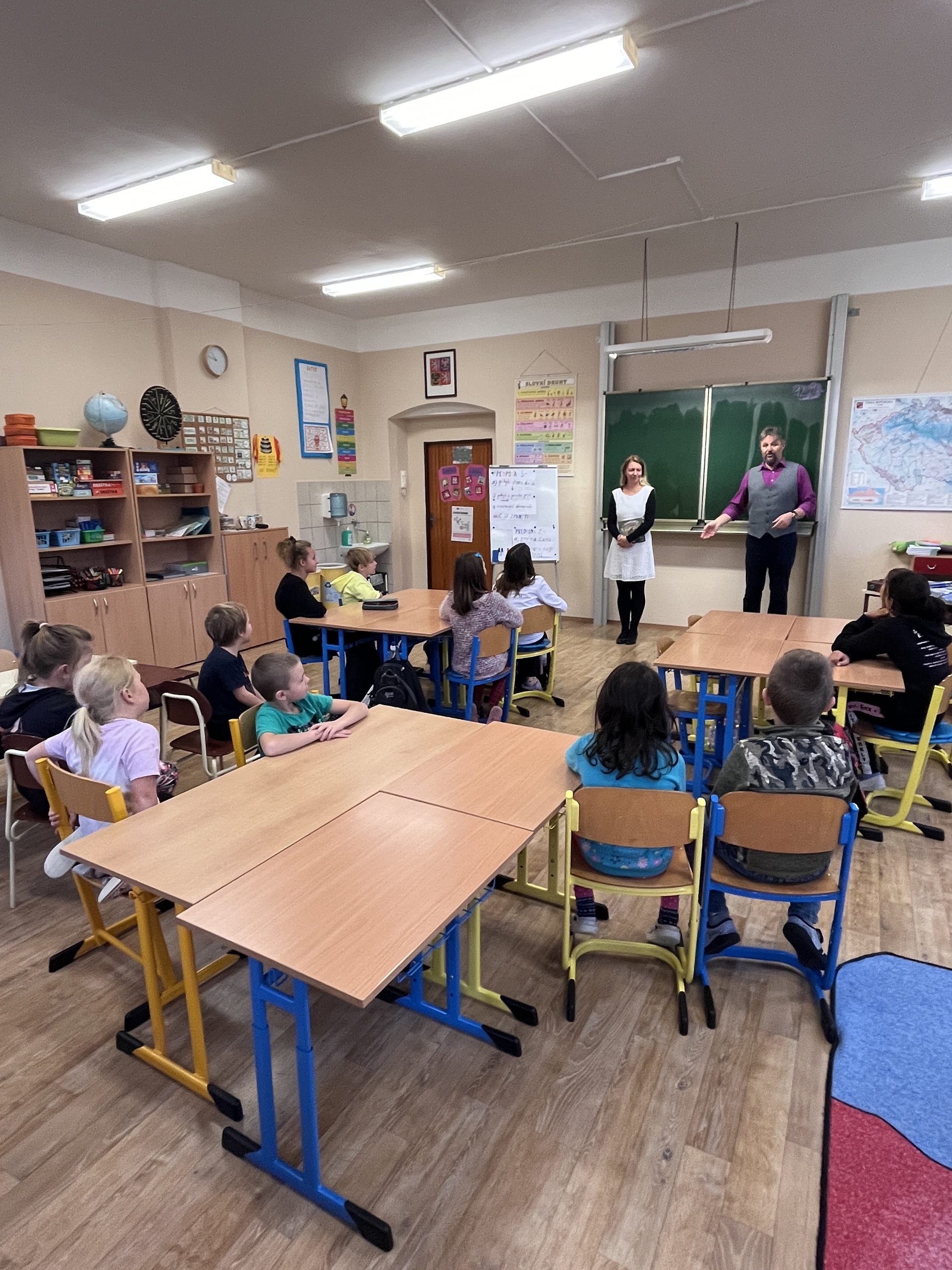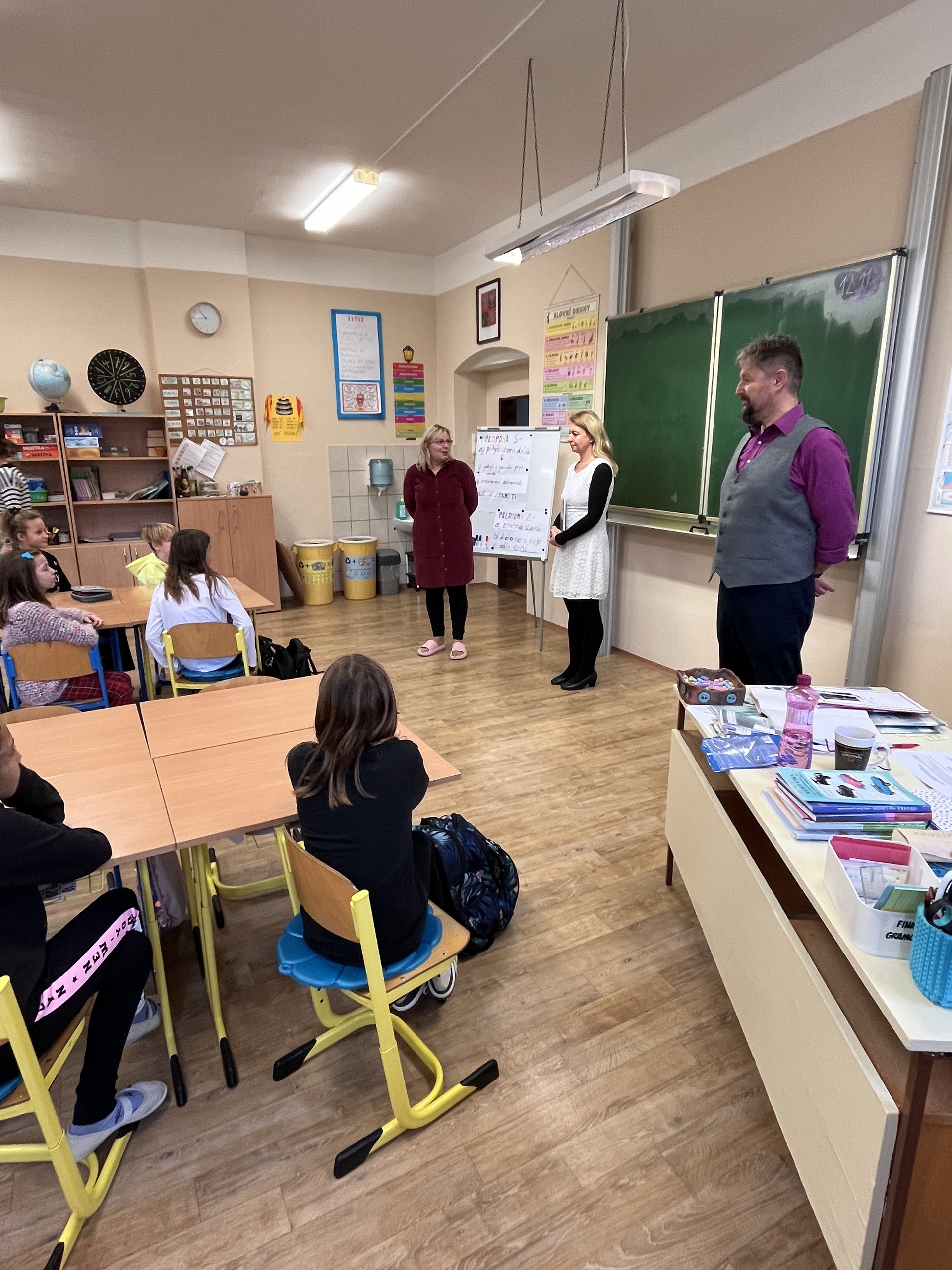 V úterý 12.11. jsme navázali na komiksovou dílnu dalším zážitkem, a to setkáním s autorkou knih pro děti Michaelou Fišarovou. Paní Fišarová má v tuto chvíli vydaných 18 knih pro děti a na dalších aktuálně pracuje. S paní autorkou přijel herec Miroslav Reil, který nám přehrál jednu kapitolu z knihy Kanálníčci- strašidla z podzemí. Představení bylo velmi zábavné a celá beseda velmi inspirující.