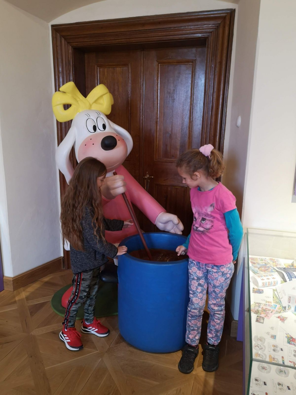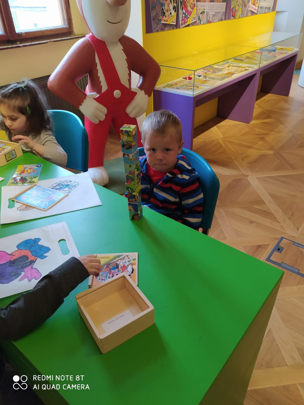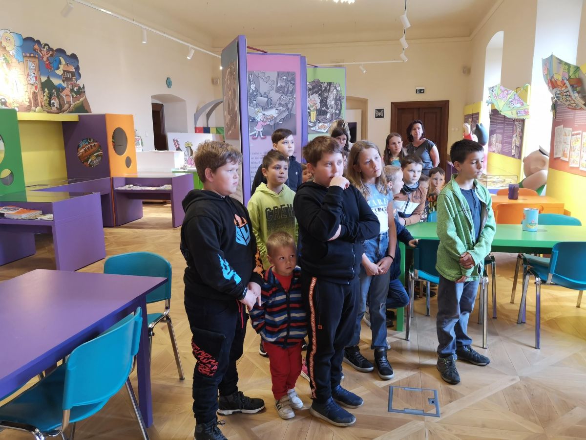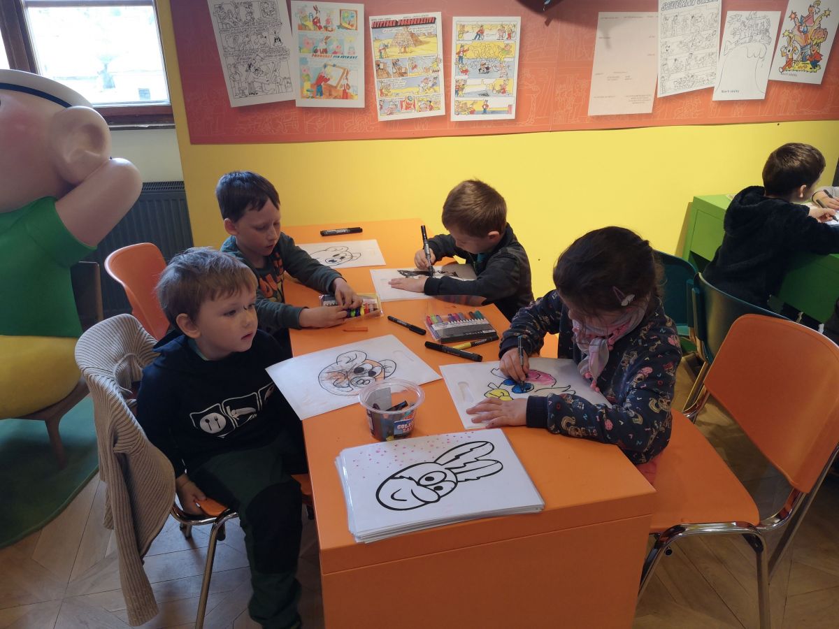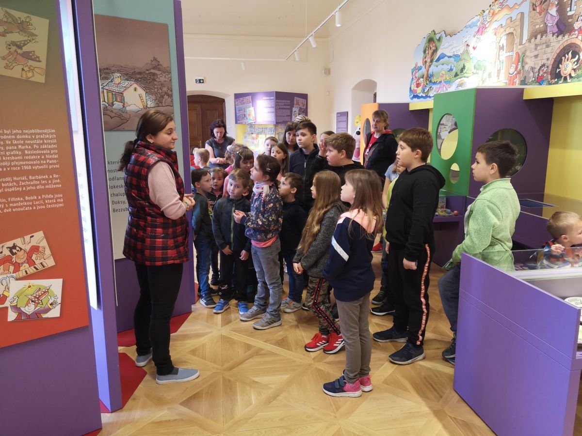 Projektový den byl zahájen ve smluvený čas v prostorách muzea. Pro děti MŠ byl připraven prohlídkový okruh. Odborník představil dětem prostory muzea, seznámil je s rozdílem mezi komiksem a klasickou knihou. Dále vyprávěl o vzniku nápadu k vydání samostatného komiksového časopisu, který na dovolené v Itálii v roce 1968. Celých 52 let kreslí pan Němeček Čtyřlístek sám, s texty mu pomáhá soubor autorů, nejznámější a první autorka textů byla Ljuba Štíplová. První muzeum Čtyřlístku nebylo autorem zvoleno do oblasti Doksy náhodně. Pan Němeček (autor) zde nalezl předobraz pro vesnici Třeskoprsky, ze které parta kamarádů pochází. Dále se v pohádce vyskytuje jezero Bláťák, což je Máchovo jezero a hrad Bezzub neboli Bezděz.
