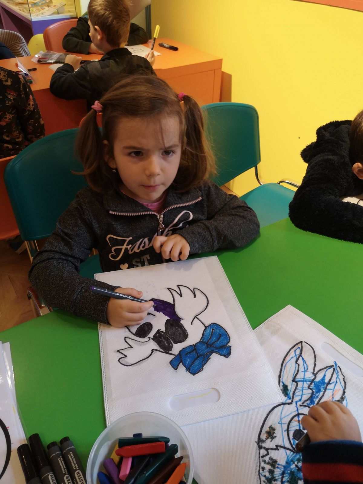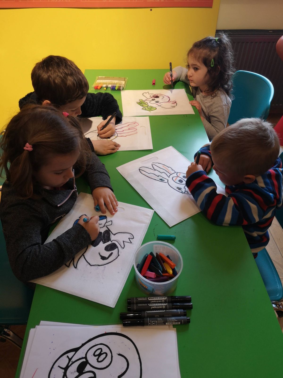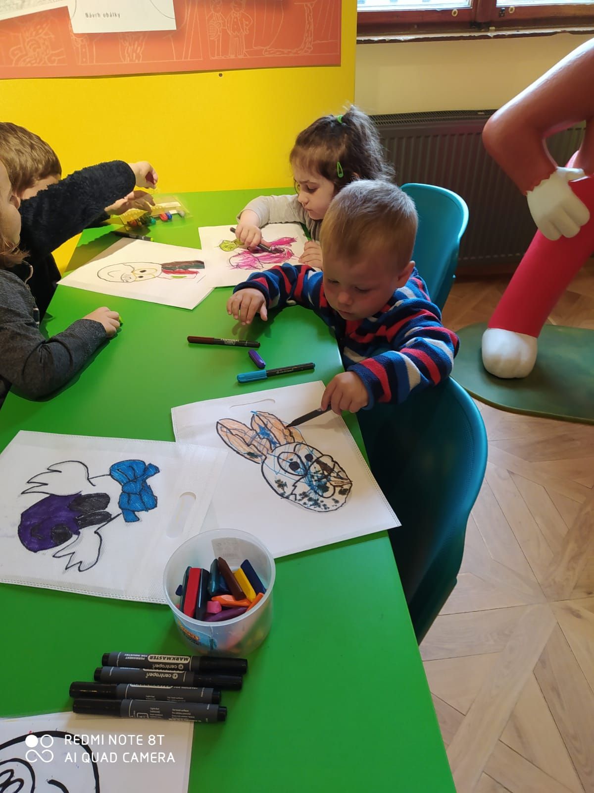 Děti se pod vedením odborníka zapojily do výzdoby vlastní tašky, na kterou si ze šablony obkreslily obličej jedné z postav, šablonu následně vybarvily. Současně si vyzkoušely obrázkové doplňovačky s tématem Čtyřlístku a pro nejmenší bylo připraveno obrázkové puzzle.