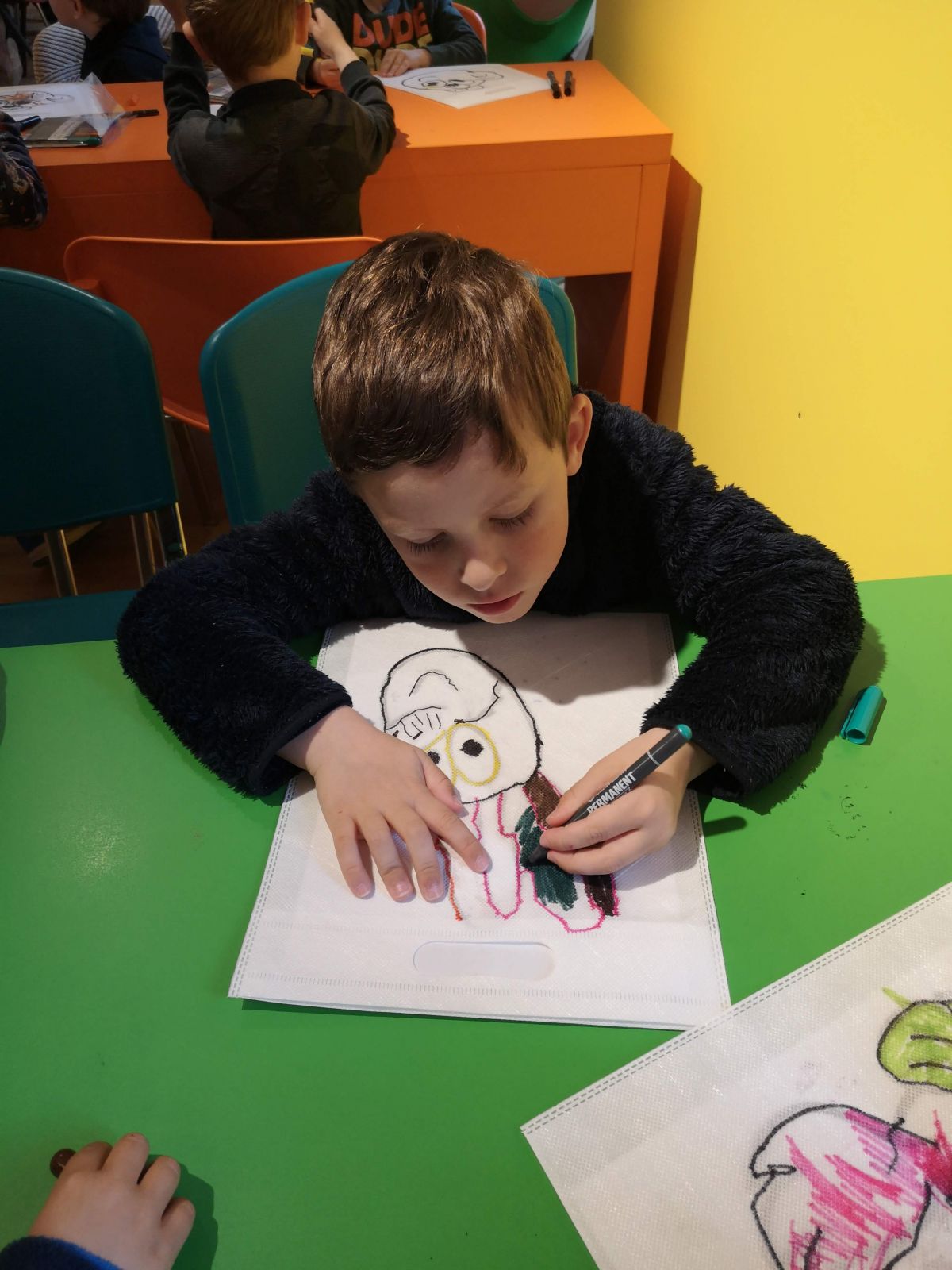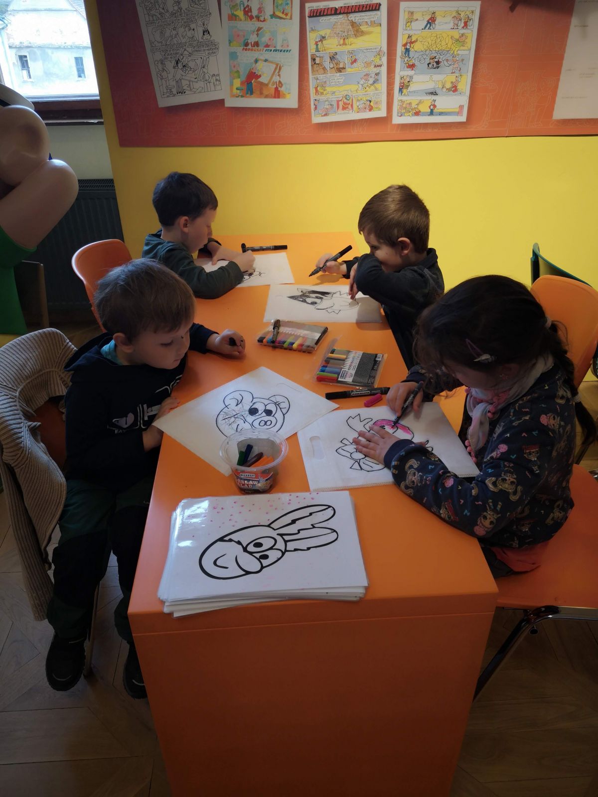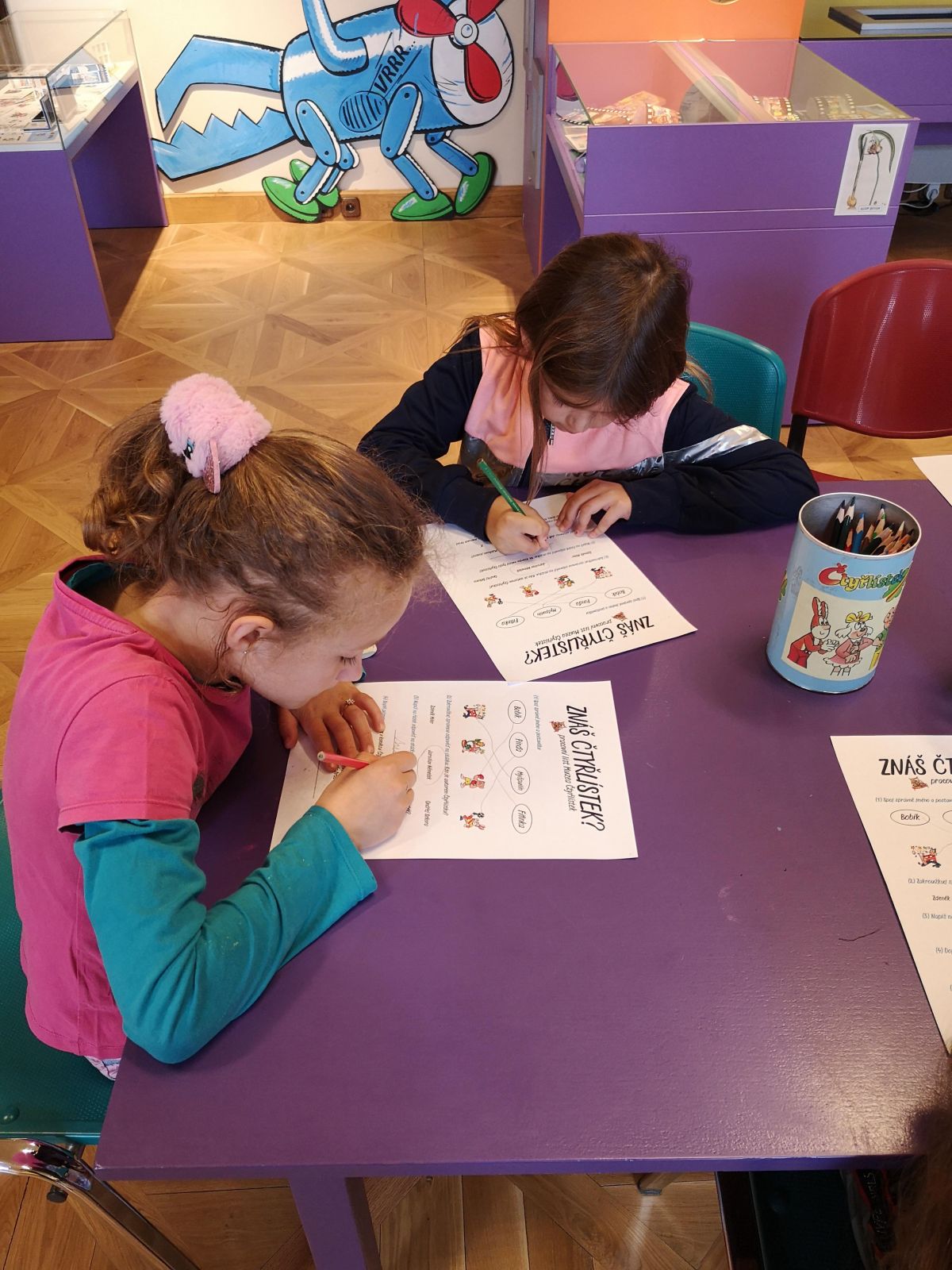 Děti se pod vedením odborníka zapojily do výzdoby vlastní tašky, na kterou si ze šablony obkreslily obličej jedné z postav, šablonu následně vybarvily. Současně si vyzkoušely obrázkové doplňovačky s tématem Čtyřlístku a pro nejmenší bylo připraveno obrázkové puzzle.