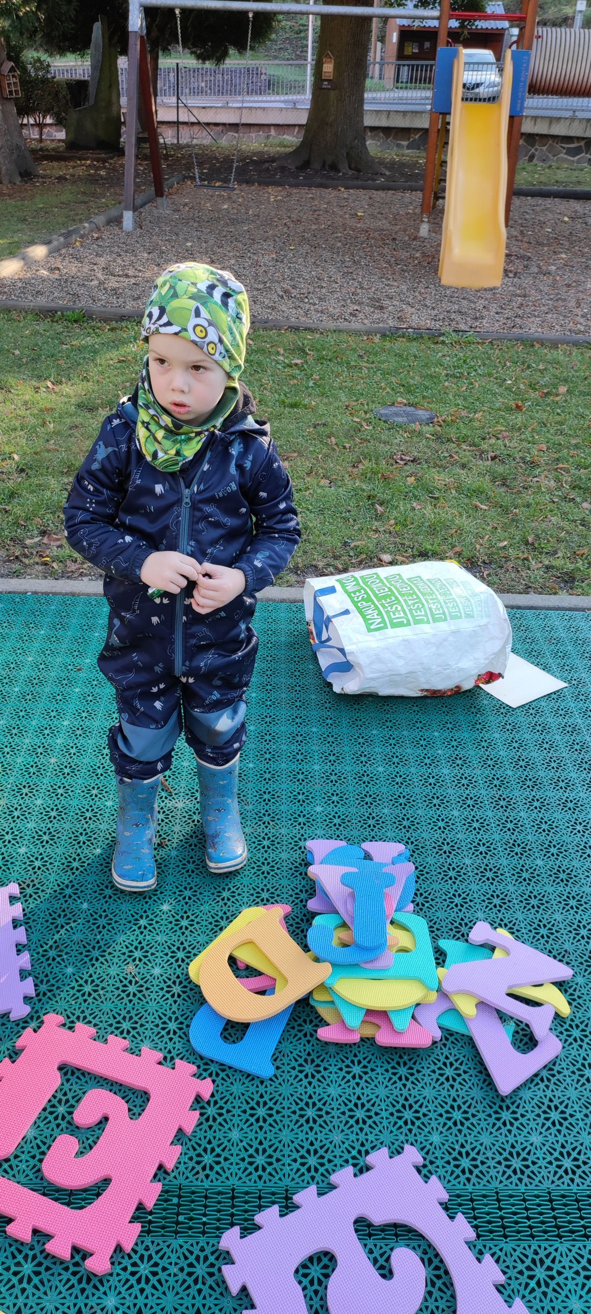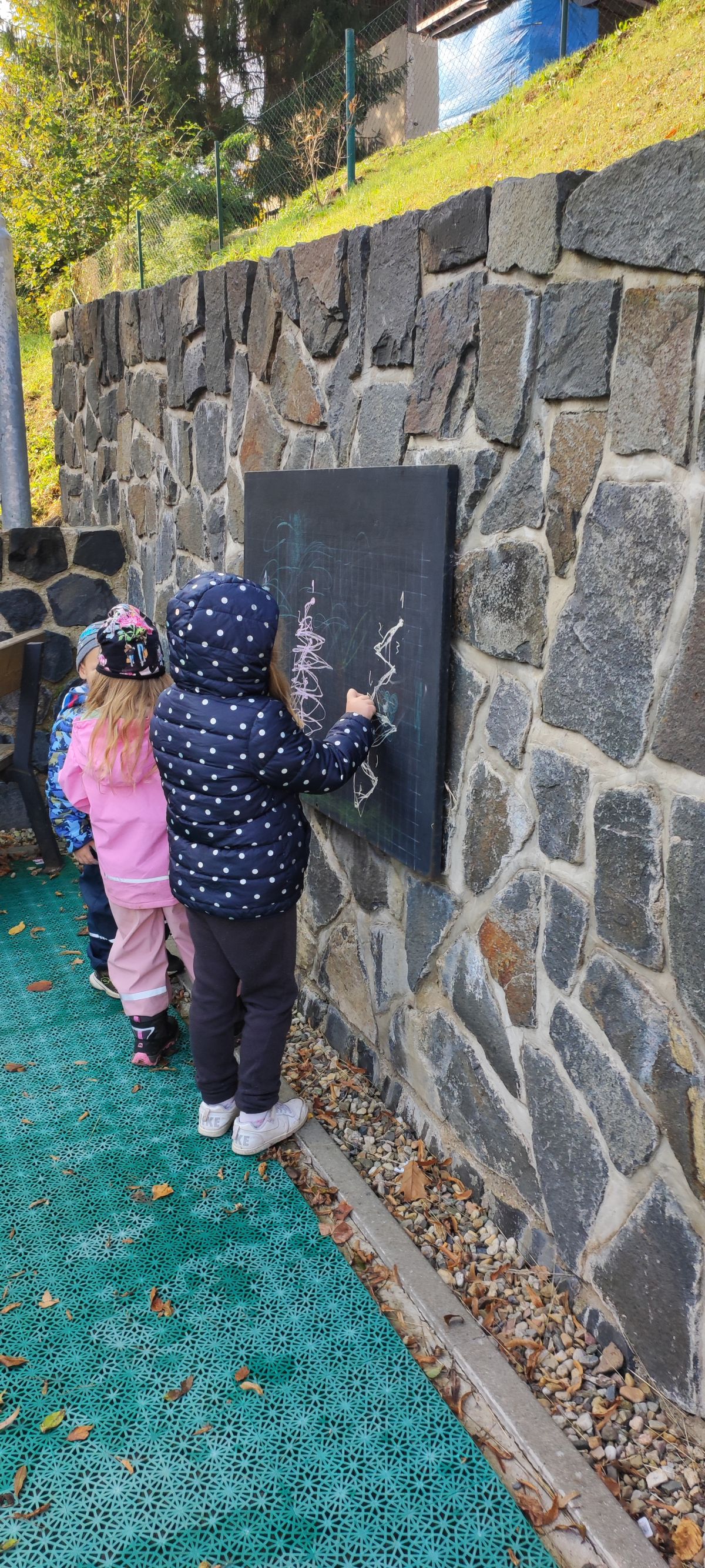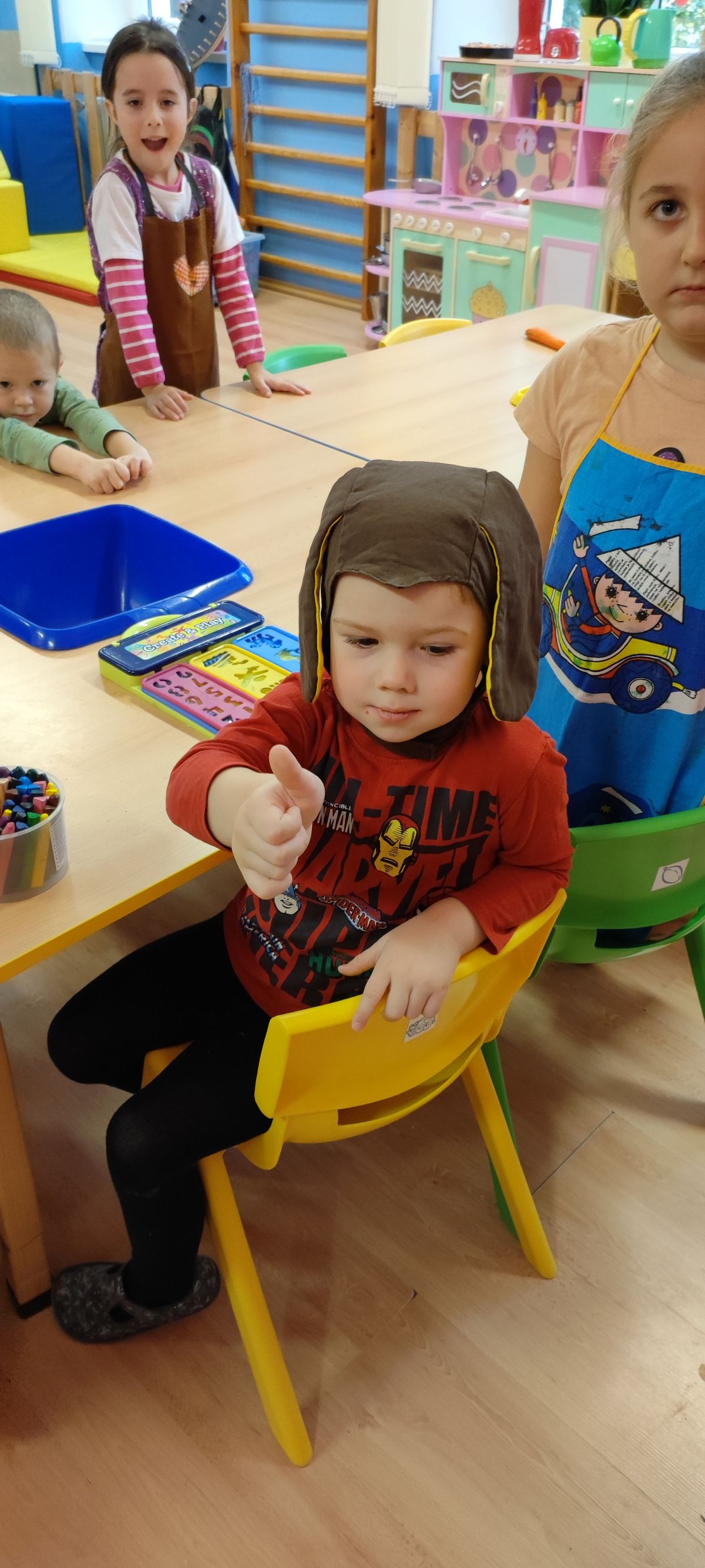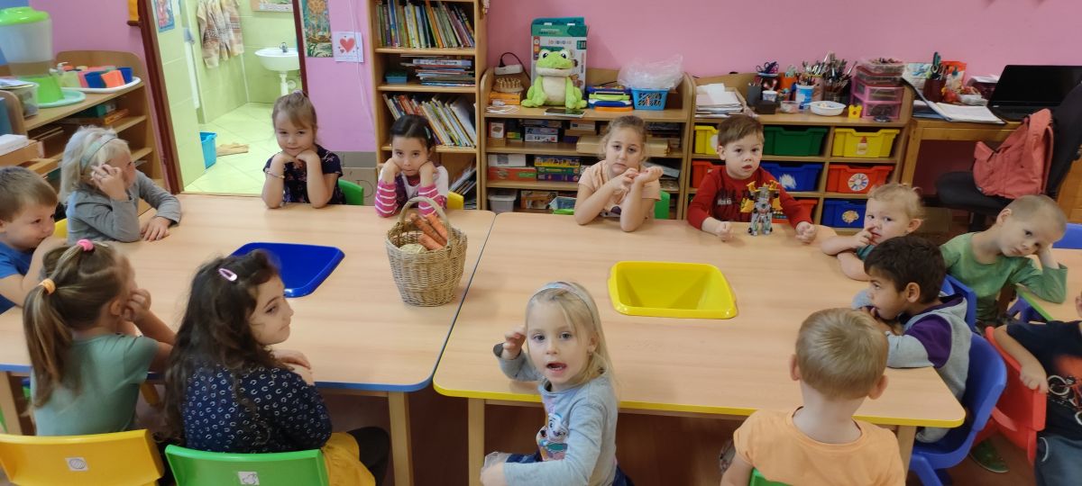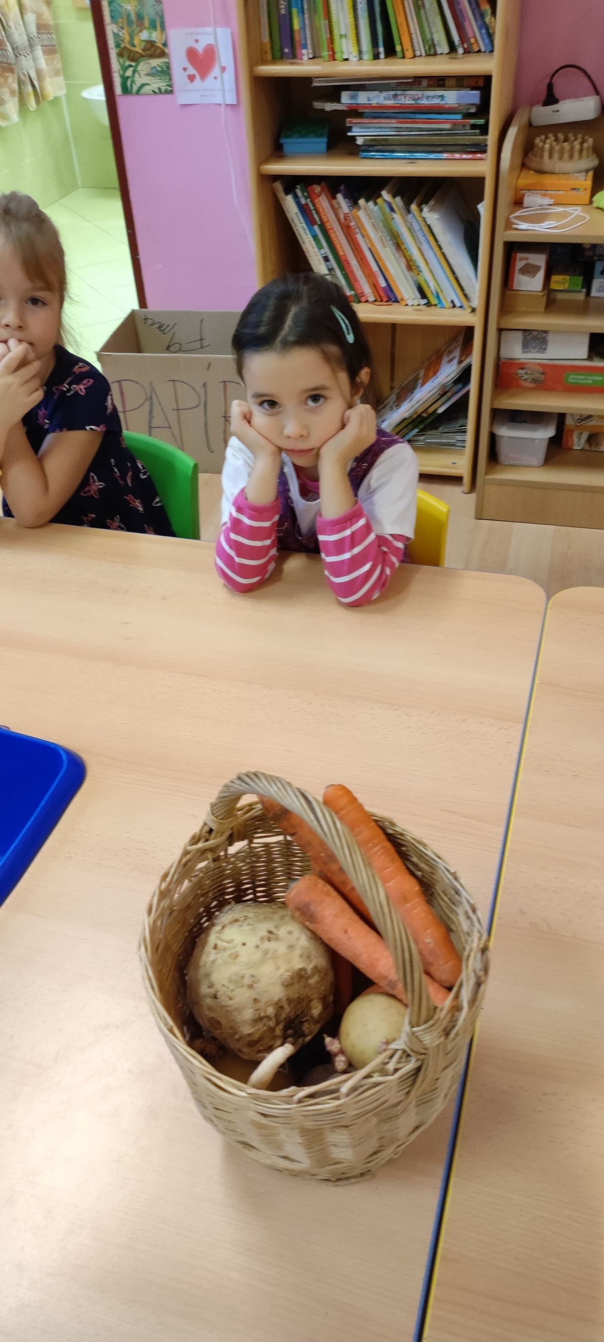 Nejprve jsme si přečetli pohádku, seznámili se s příběhem a pojmenovali si potraviny, které Pejsek s Kočičkou přidali do dortu. K zapamatování si ingrediencí jsme využili i naši robotickou pomůcku. Počítali a trénovali jsme čísla 1 a 2. Zpívali jsme písničky Kočka leze dírou a narozeninovou písničku s doprovodem na hudební nástroj. Vyprávěli jsme si také, jak se různě mohou slavit narozeniny a co k tomu patří. Například takový bramborový salát. No, a tak jsme se rozhodli, že si takový salát uděláme také. Než jsme se pustili do samotného vaření, vyrobili jsme si každý svou barevnou zástěru. Na přípravu našeho salátu si paní učitelky připravili obrázkový recept, ingredience (celer, mrkev, petržel, brambory). Děti určovaly, co do našeho salátu patří a co ne. Polovinu ingrediencí jsme dali vařit do samovarného hrnce. Pozorováním jsme zjistili že z hrnce uniká pára, která se vysráží na studeném okně a jako kapky stékají dolů. A hle, byl tu i pokus s koloběhem vody v přírodě. Po vychladnutí si děti samy zkoušely rozdíl mezi krájením syrové a vařené zeleniny, předávaly si zkušenosti sebou, hodnotily a komentovaly činnost. Nakonec všechnu zeleninu promíchali a ochutili solí, octem a špetičkou cukru. Hotový salát všem moc chutnal a nezapomněli dát ochutnat také školákům a paním učitelkám.