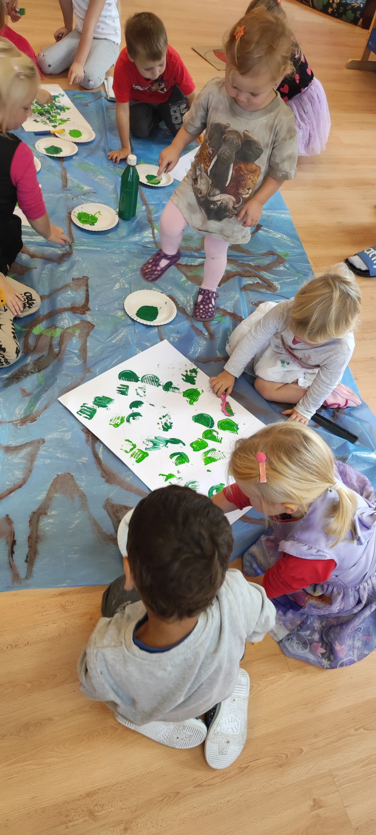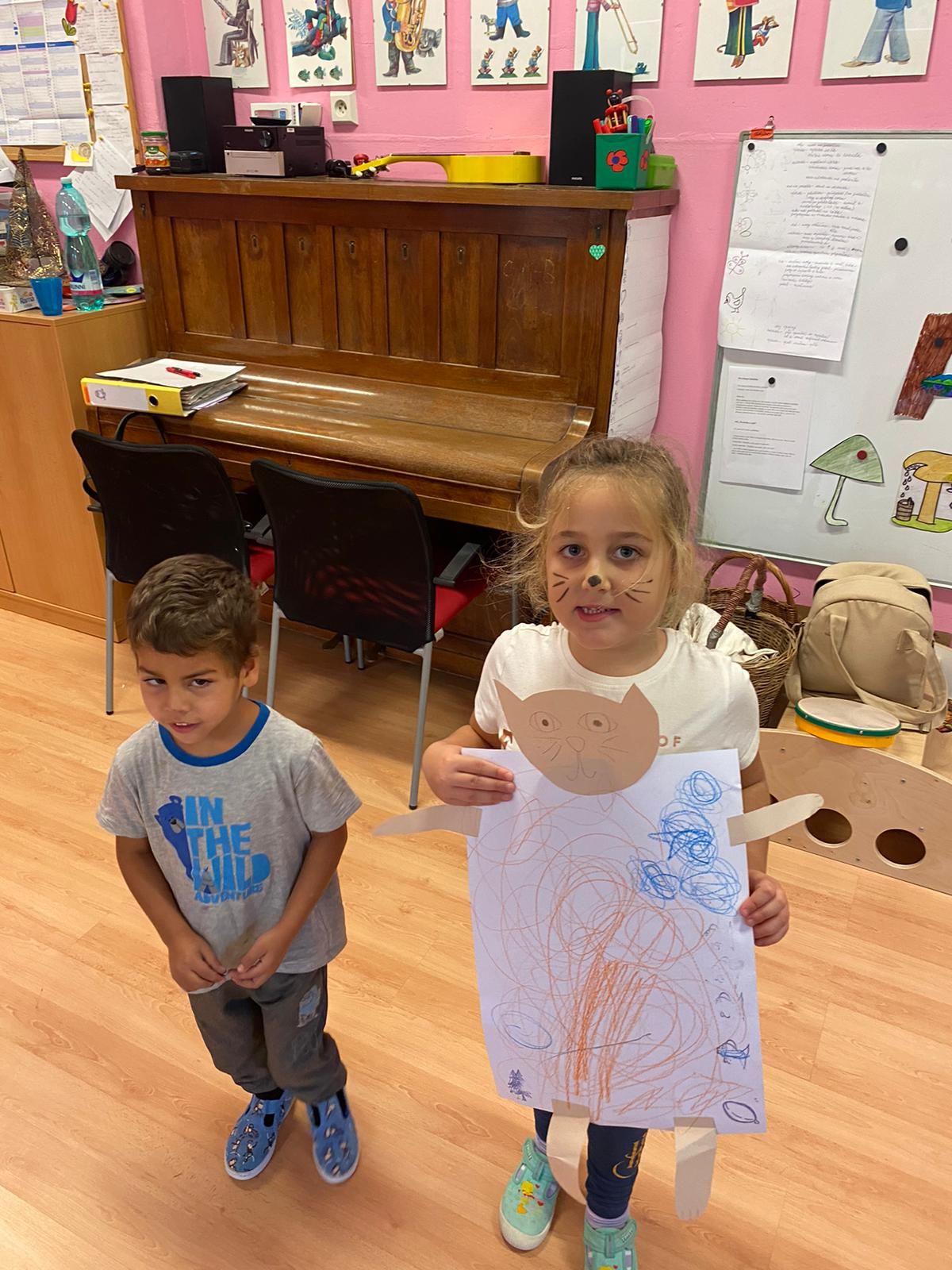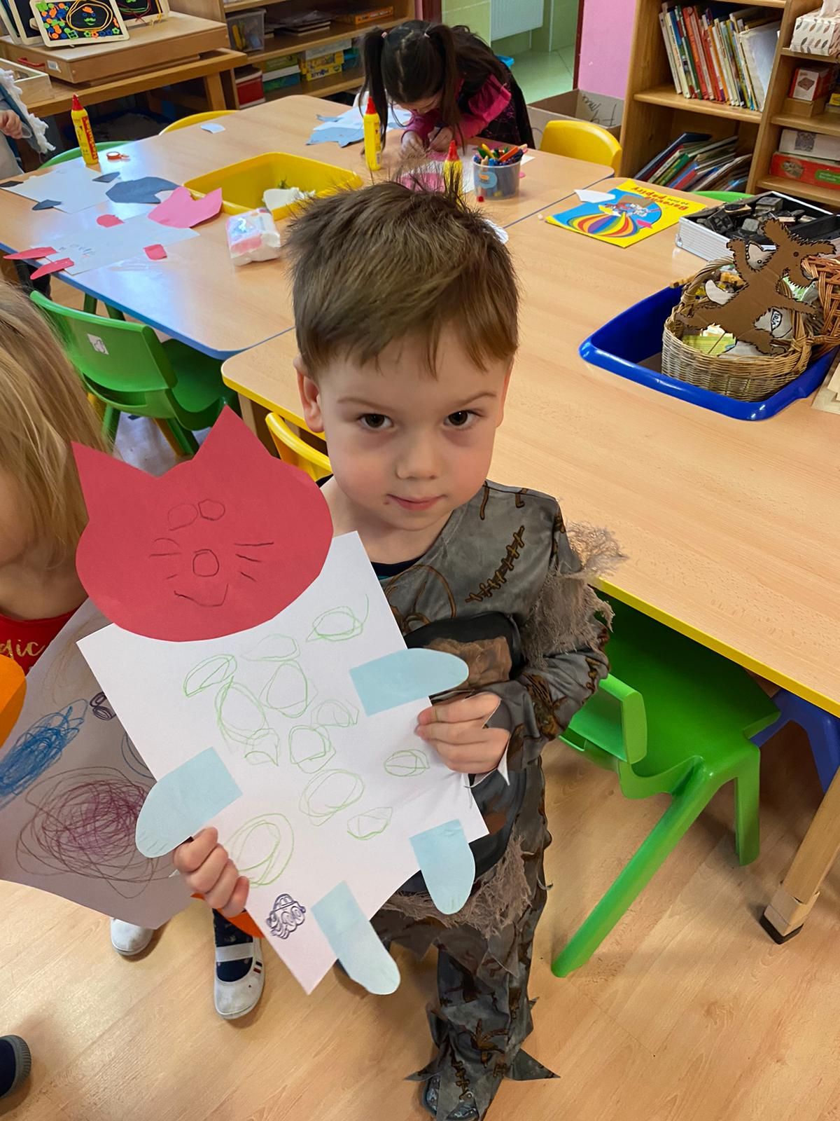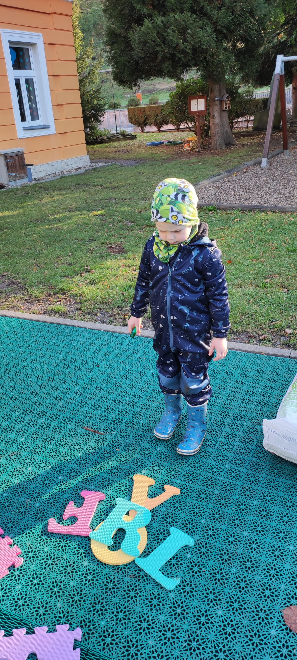 Nejprve jsme si přečetli pohádku, seznámili se s příběhem a pojmenovali si potraviny, které Pejsek s Kočičkou přidali do dortu. K zapamatování si ingrediencí jsme využili i naši robotickou pomůcku. Počítali a trénovali jsme čísla 1 a 2. Zpívali jsme písničky Kočka leze dírou a narozeninovou písničku s doprovodem na hudební nástroj. Vyprávěli jsme si také, jak se různě mohou slavit narozeniny a co k tomu patří. Například takový bramborový salát. No, a tak jsme se rozhodli, že si takový salát uděláme také. Než jsme se pustili do samotného vaření, vyrobili jsme si každý svou barevnou zástěru. Na přípravu našeho salátu si paní učitelky připravili obrázkový recept, ingredience (celer, mrkev, petržel, brambory). Děti určovaly, co do našeho salátu patří a co ne. Polovinu ingrediencí jsme dali vařit do samovarného hrnce. Pozorováním jsme zjistili že z hrnce uniká pára, která se vysráží na studeném okně a jako kapky stékají dolů. A hle, byl tu i pokus s koloběhem vody v přírodě. Po vychladnutí si děti samy zkoušely rozdíl mezi krájením syrové a vařené zeleniny, předávaly si zkušenosti sebou, hodnotily a komentovaly činnost. Nakonec všechnu zeleninu promíchali a ochutili solí, octem a špetičkou cukru. Hotový salát všem moc chutnal a nezapomněli dát ochutnat také školákům a paním učitelkám.