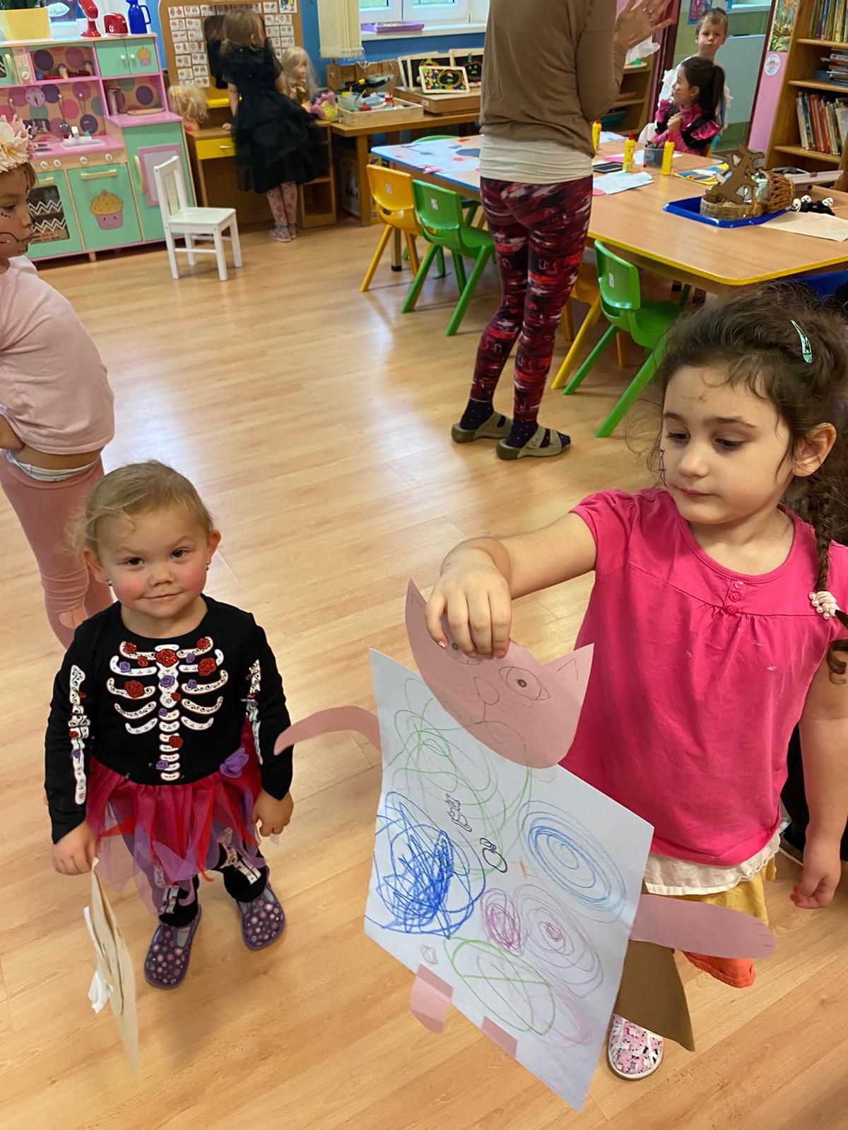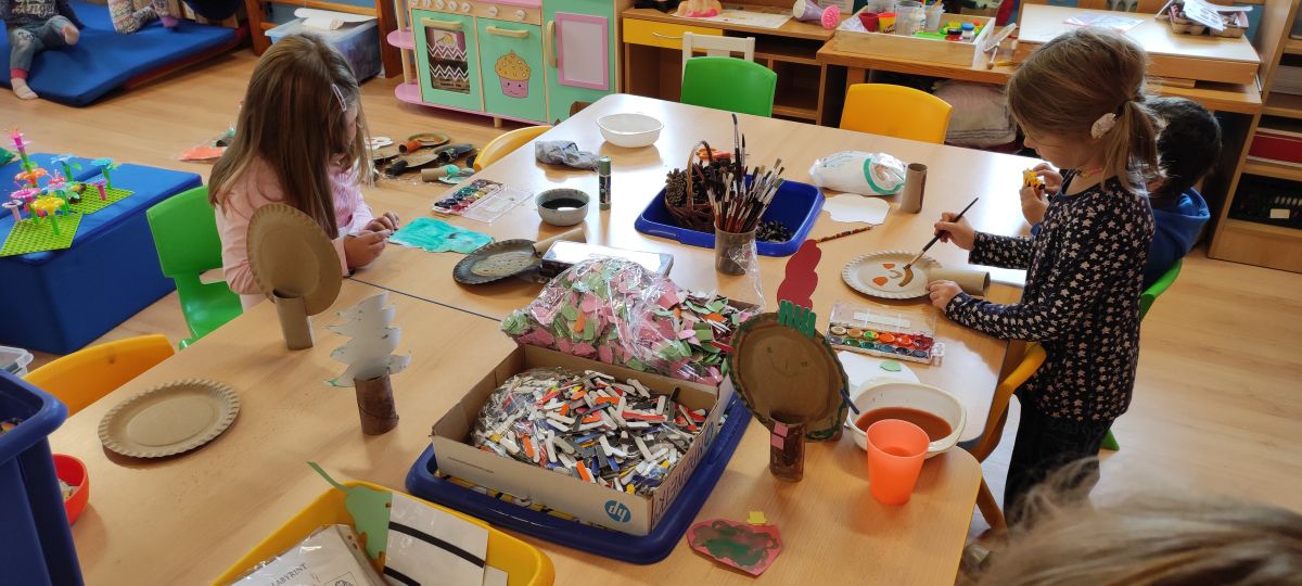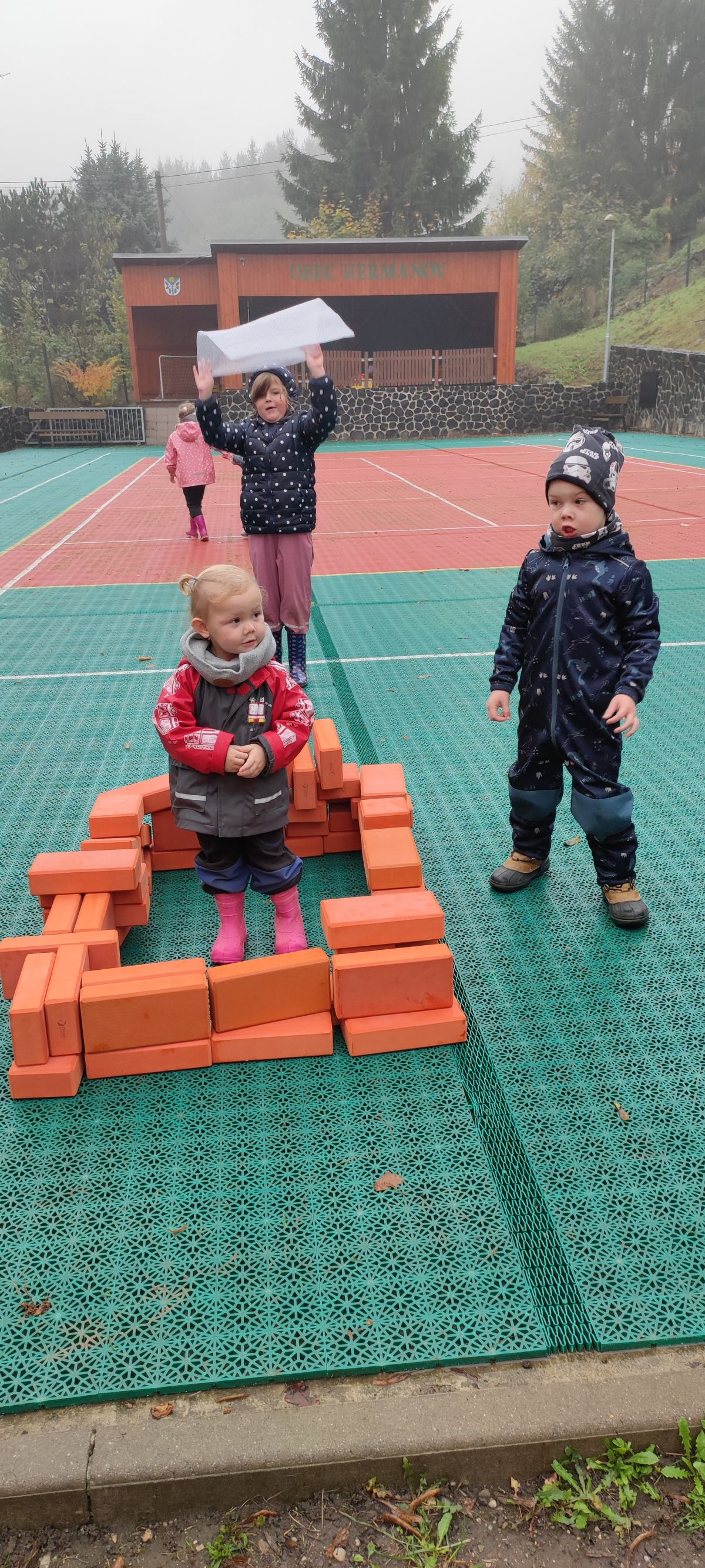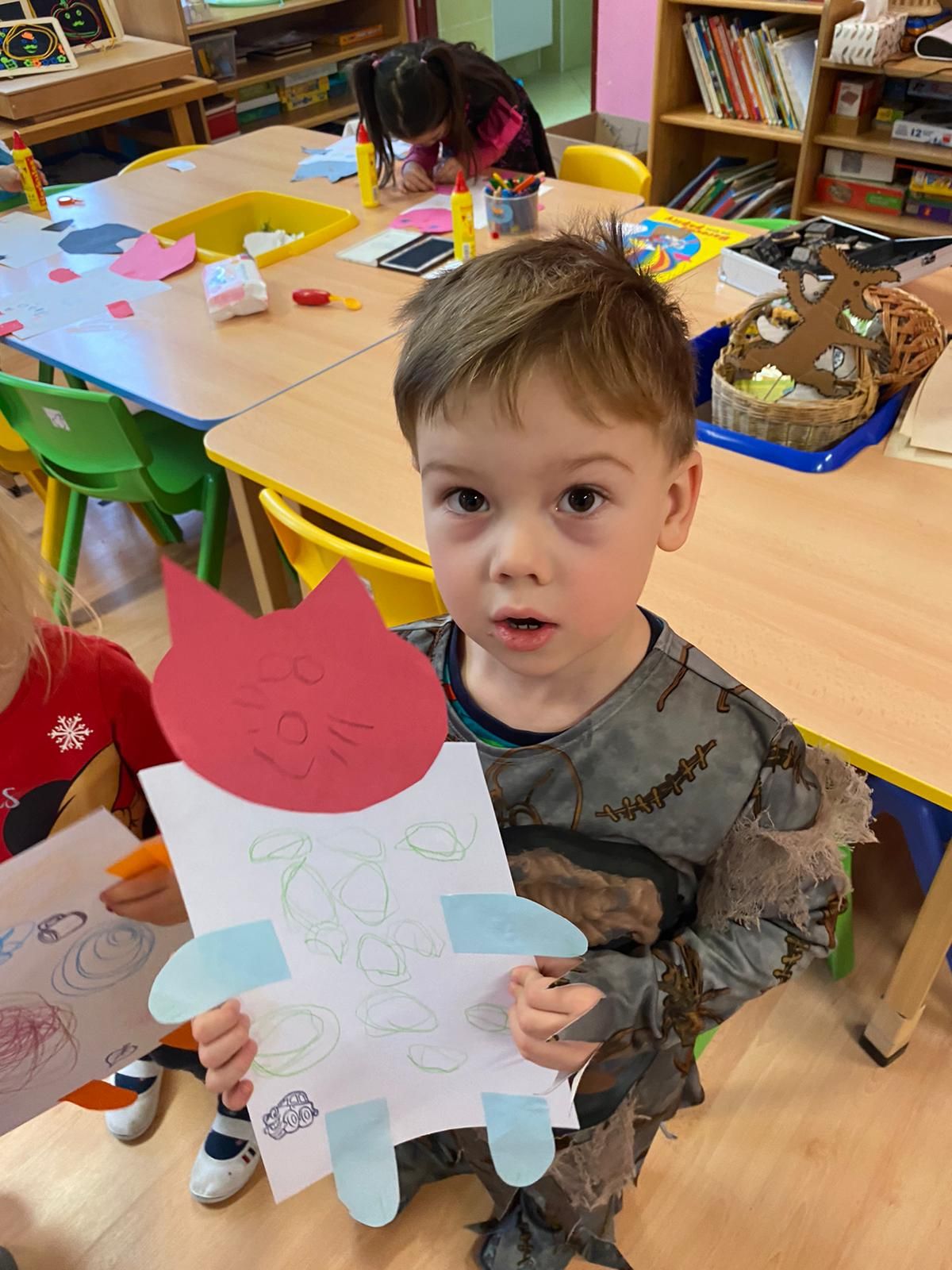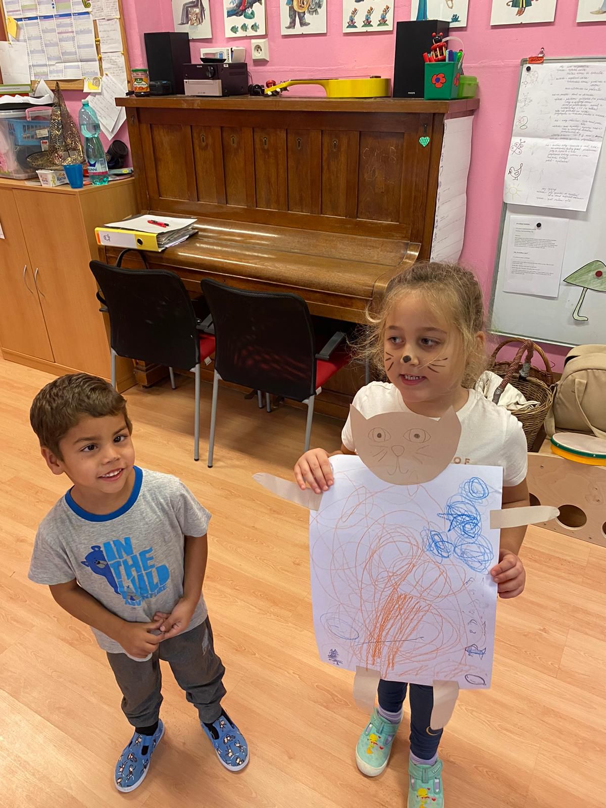 Nejprve jsme si přečetli pohádku, seznámili se s příběhem a pojmenovali si potraviny, které Pejsek s Kočičkou přidali do dortu. K zapamatování si ingrediencí jsme využili i naši robotickou pomůcku. Počítali a trénovali jsme čísla 1 a 2. Zpívali jsme písničky Kočka leze dírou a narozeninovou písničku s doprovodem na hudební nástroj. Vyprávěli jsme si také, jak se různě mohou slavit narozeniny a co k tomu patří. Například takový bramborový salát. No, a tak jsme se rozhodli, že si takový salát uděláme také. Než jsme se pustili do samotného vaření, vyrobili jsme si každý svou barevnou zástěru. Na přípravu našeho salátu si paní učitelky připravili obrázkový recept, ingredience (celer, mrkev, petržel, brambory). Děti určovaly, co do našeho salátu patří a co ne. Polovinu ingrediencí jsme dali vařit do samovarného hrnce. Pozorováním jsme zjistili že z hrnce uniká pára, která se vysráží na studeném okně a jako kapky stékají dolů. A hle, byl tu i pokus s koloběhem vody v přírodě. Po vychladnutí si děti samy zkoušely rozdíl mezi krájením syrové a vařené zeleniny, předávaly si zkušenosti sebou, hodnotily a komentovaly činnost. Nakonec všechnu zeleninu promíchali a ochutili solí, octem a špetičkou cukru. Hotový salát všem moc chutnal a nezapomněli dát ochutnat také školákům a paním učitelkám.