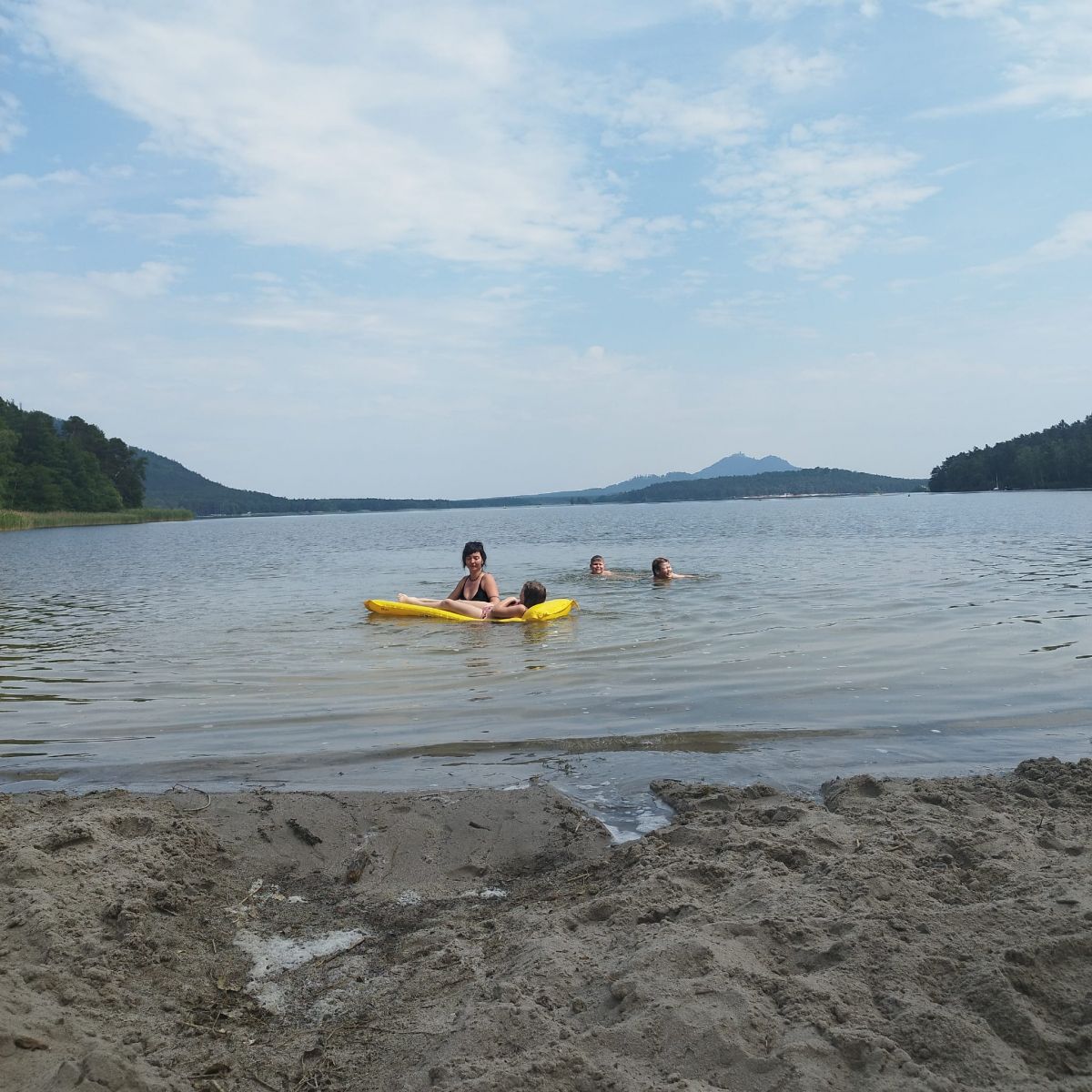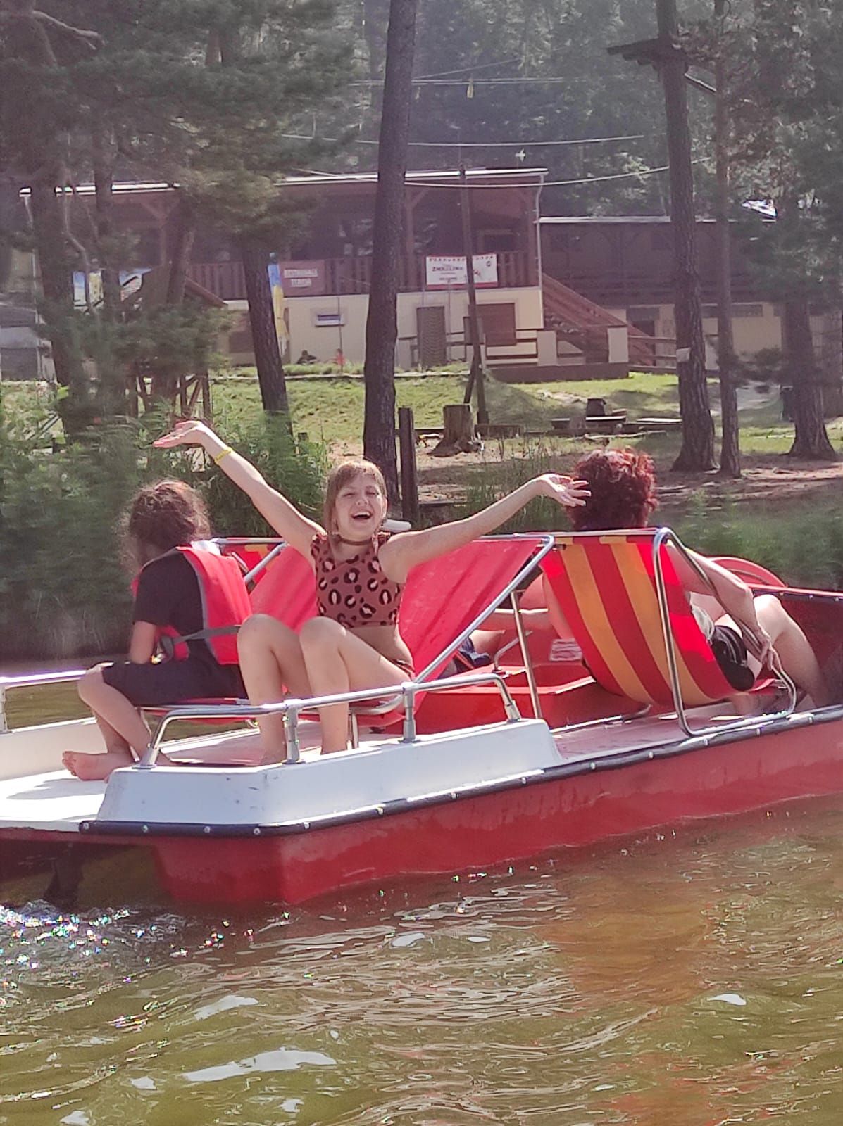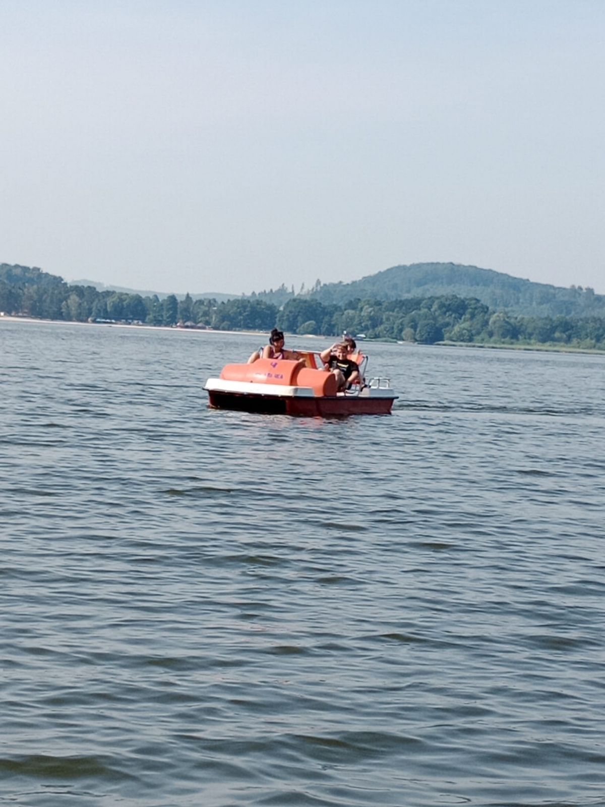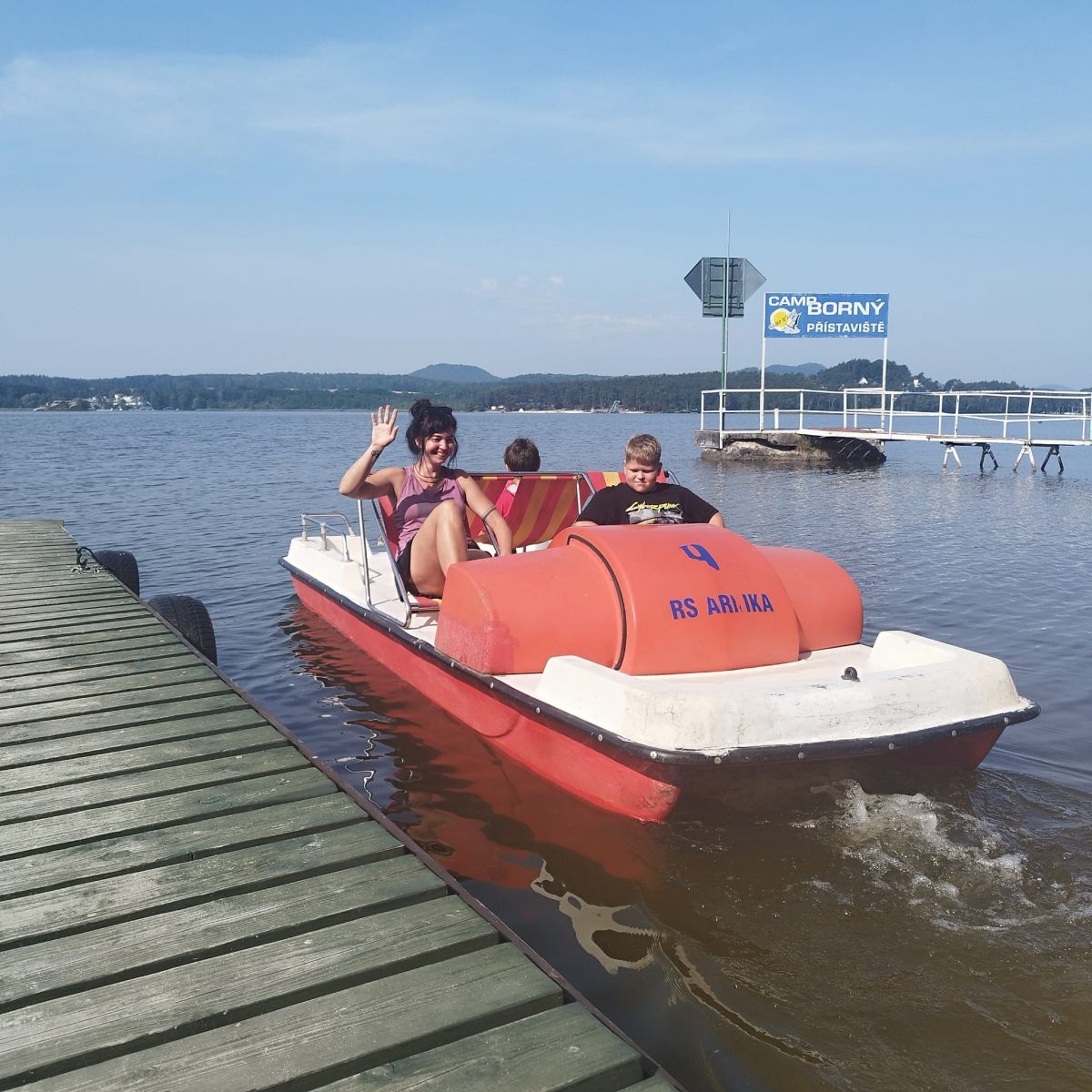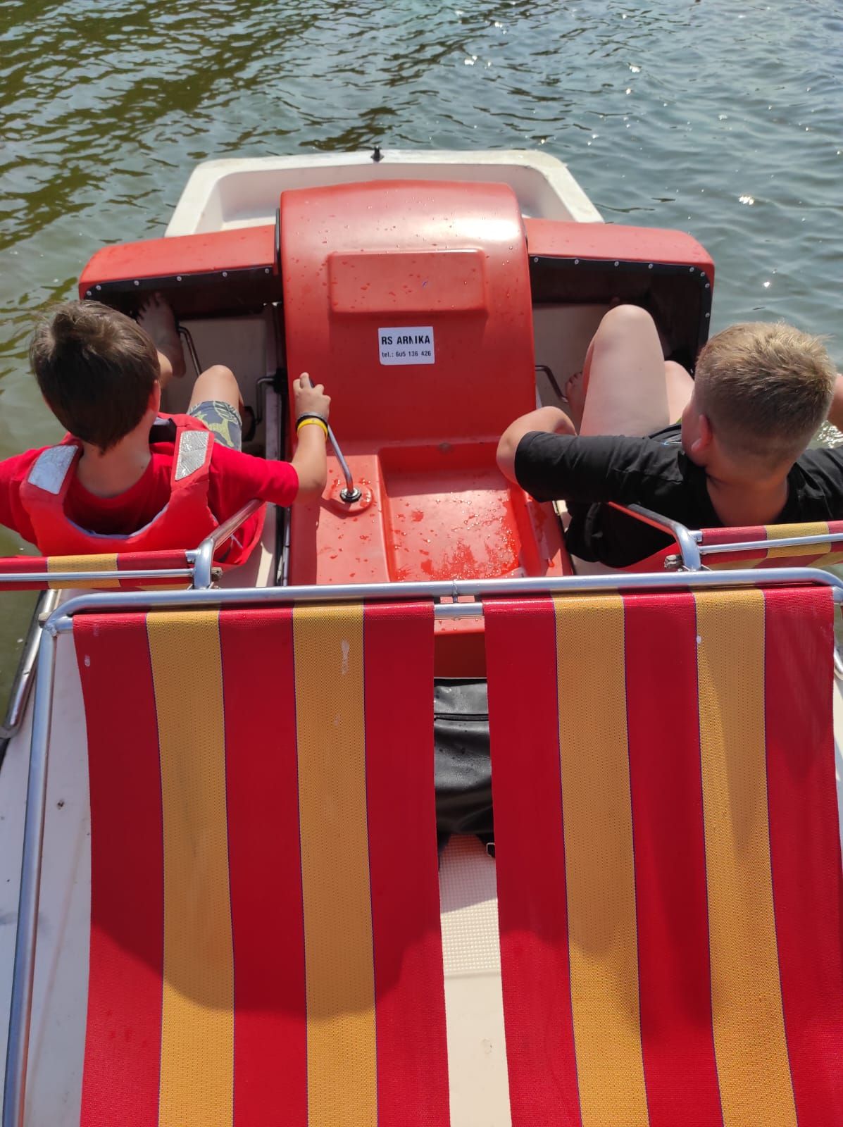 Výlet do Starých Splavů se nám pěkně vydařil. Prošli jsme se jedinečným borovým lesem, kde jsme si natrhali sladké borůvky dokonce i ve společnosti datlů. Po vydatném obědě jsme vyrazili k Máchovu jezeru, kam se děti moc těšily na vodní hrátky a bylo obtížné je dostat z jezera ven. Poté jsme jako správní trempové postavili stany, nasbírali dřevo a uvařili guláš v kotlíku. Večer byl poněkud strašidelný. Děti výtvarně znázornily bytosti, kterých se bojí a také se namaskovaly, aby se mohly vydat na stezku odvahy. Tam na ně čekala strašidla a plnění různých úkolů. Děti byly odvážné a výzvy výborně zvládly. Zkušeně ukořistily poklad a odměnou jim byly medaile a diplomy s pasováním na superhrdiny a nebojsy. Druhý den nám počasí opravdu přálo, tak jsme podnikli vyjížďku na šlapadlech. Výlet jsme si náramně užili. Děkujeme paní Vtipilové za možnost být v malebném prostředí chaty a skvělou spolupráci.