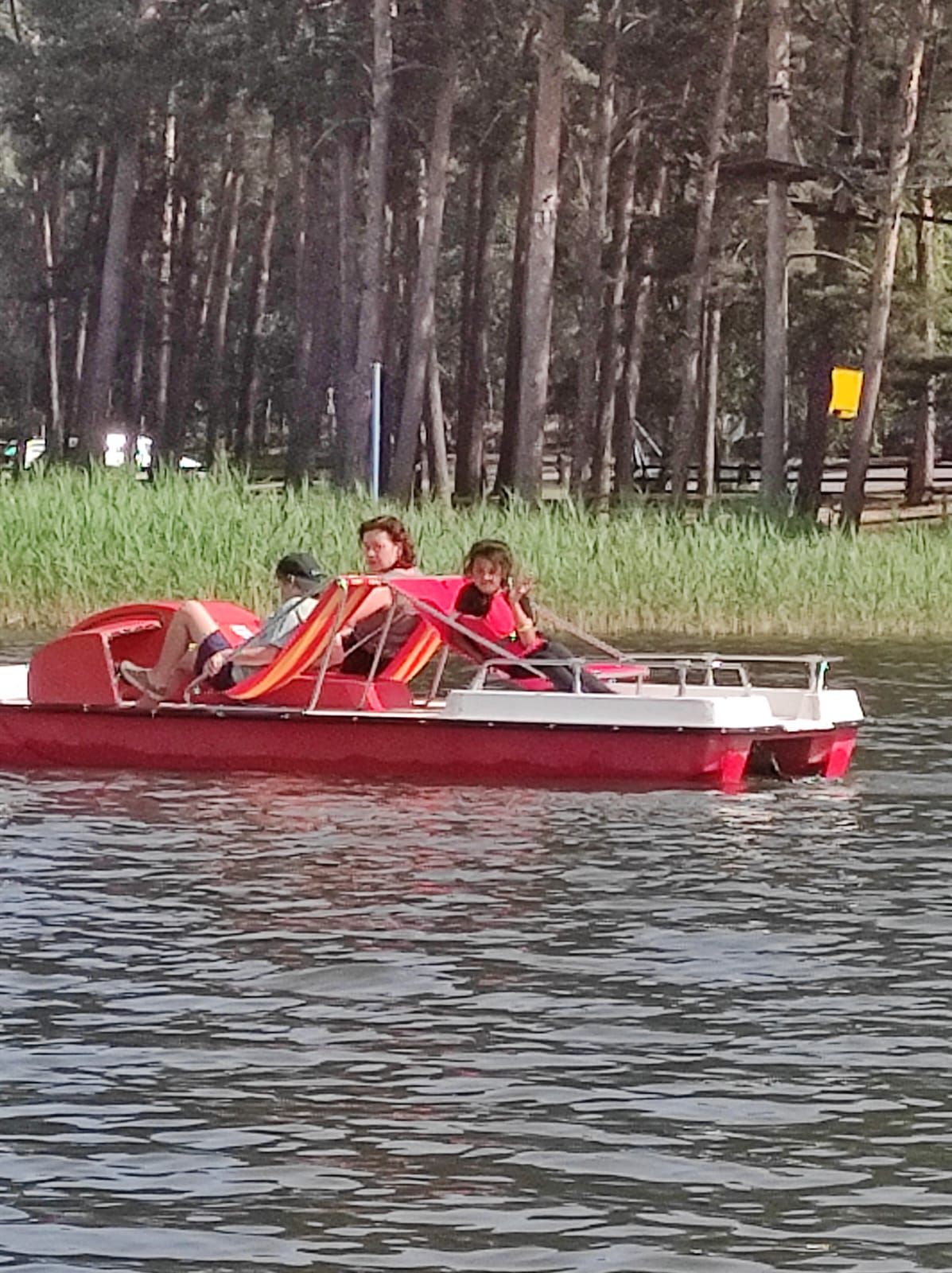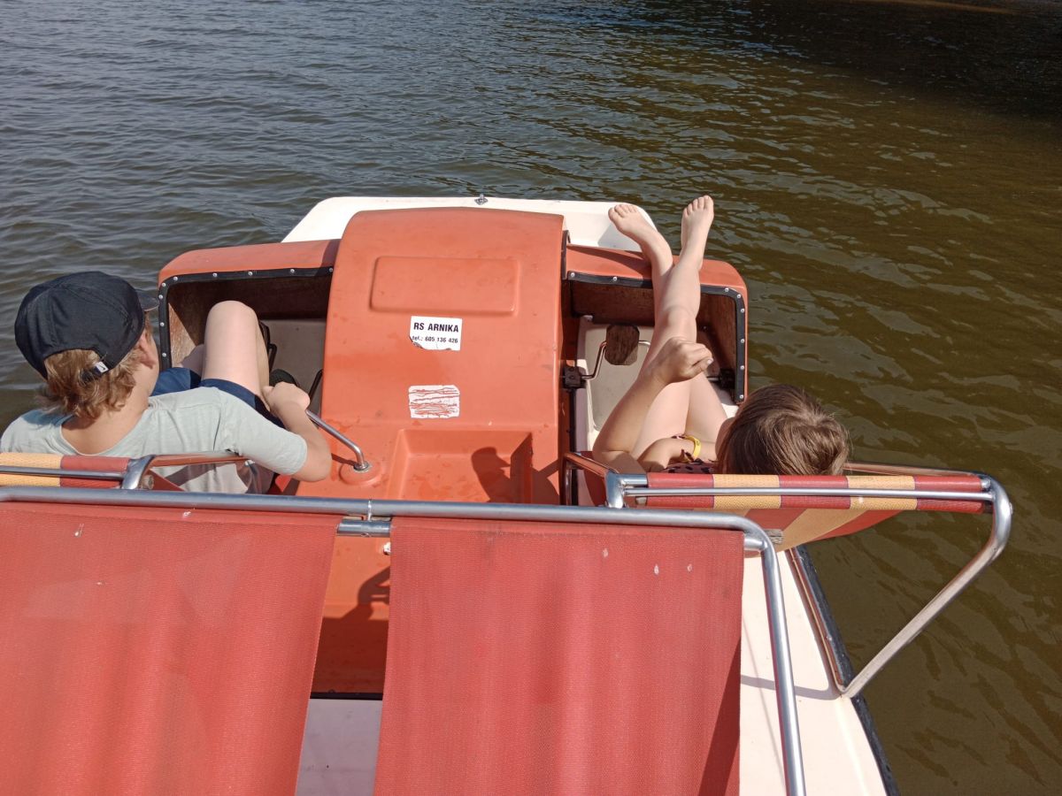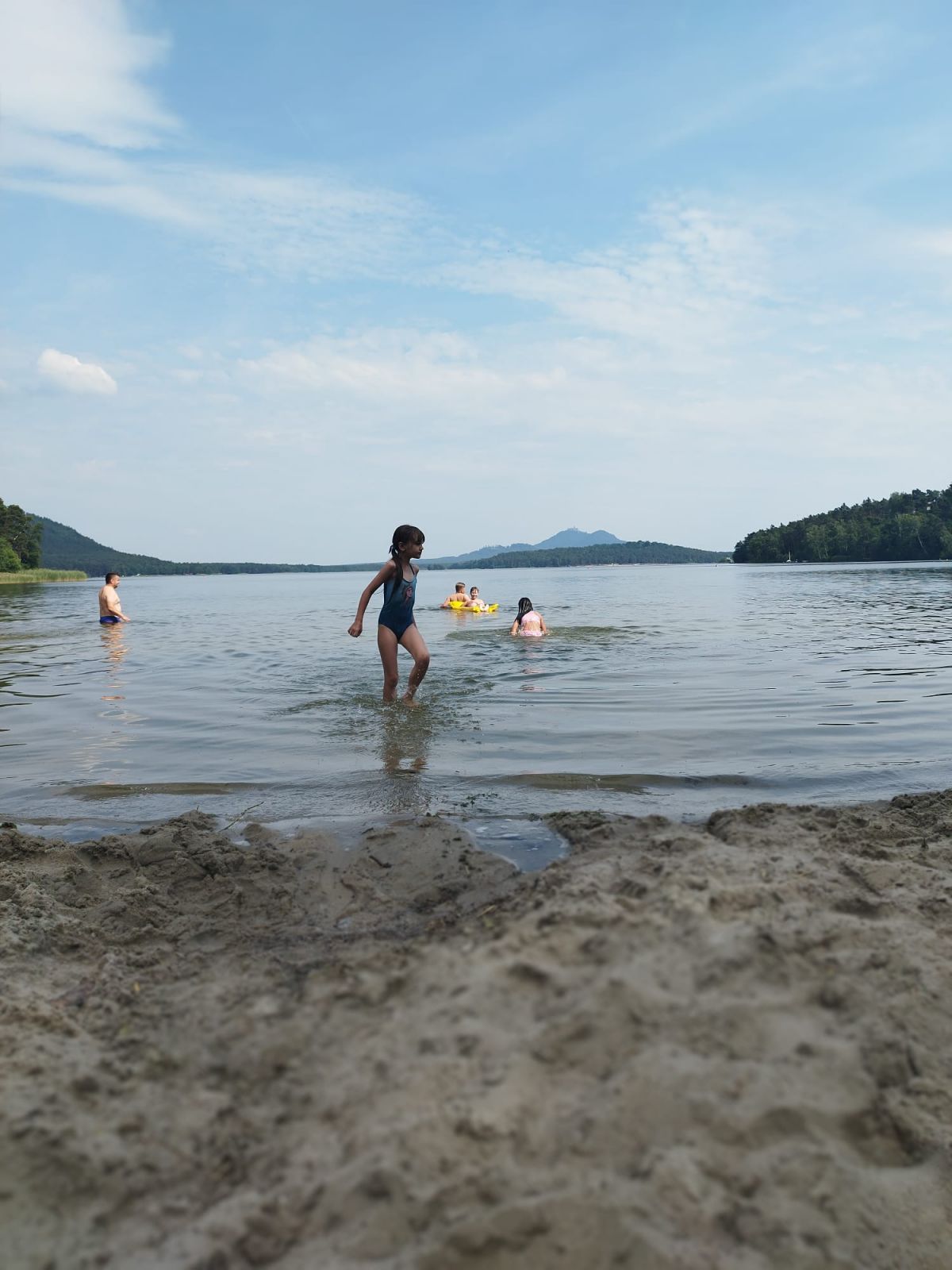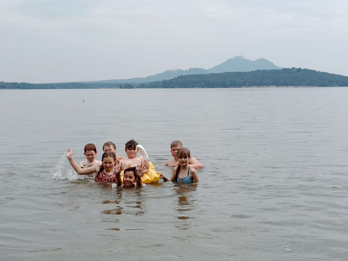 Výlet do Starých Splavů se nám pěkně vydařil. Prošli jsme se jedinečným borovým lesem, kde jsme si natrhali sladké borůvky dokonce i ve společnosti datlů. Po vydatném obědě jsme vyrazili k Máchovu jezeru, kam se děti moc těšily na vodní hrátky a bylo obtížné je dostat z jezera ven. Poté jsme jako správní trempové postavili stany, nasbírali dřevo a uvařili guláš v kotlíku. Večer byl poněkud strašidelný. Děti výtvarně znázornily bytosti, kterých se bojí a také se namaskovaly, aby se mohly vydat na stezku odvahy. Tam na ně čekala strašidla a plnění různých úkolů. Děti byly odvážné a výzvy výborně zvládly. Zkušeně ukořistily poklad a odměnou jim byly medaile a diplomy s pasováním na superhrdiny a nebojsy. Druhý den nám počasí opravdu přálo, tak jsme podnikli vyjížďku na šlapadlech. Výlet jsme si náramně užili. Děkujeme paní Vtipilové za možnost být v malebném prostředí chaty a skvělou spolupráci.