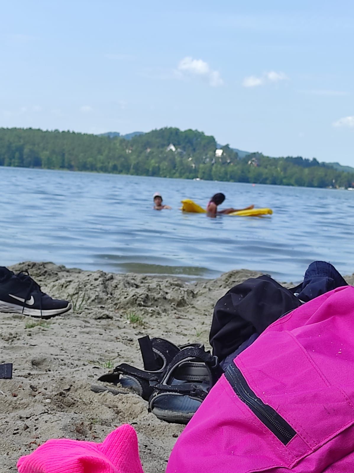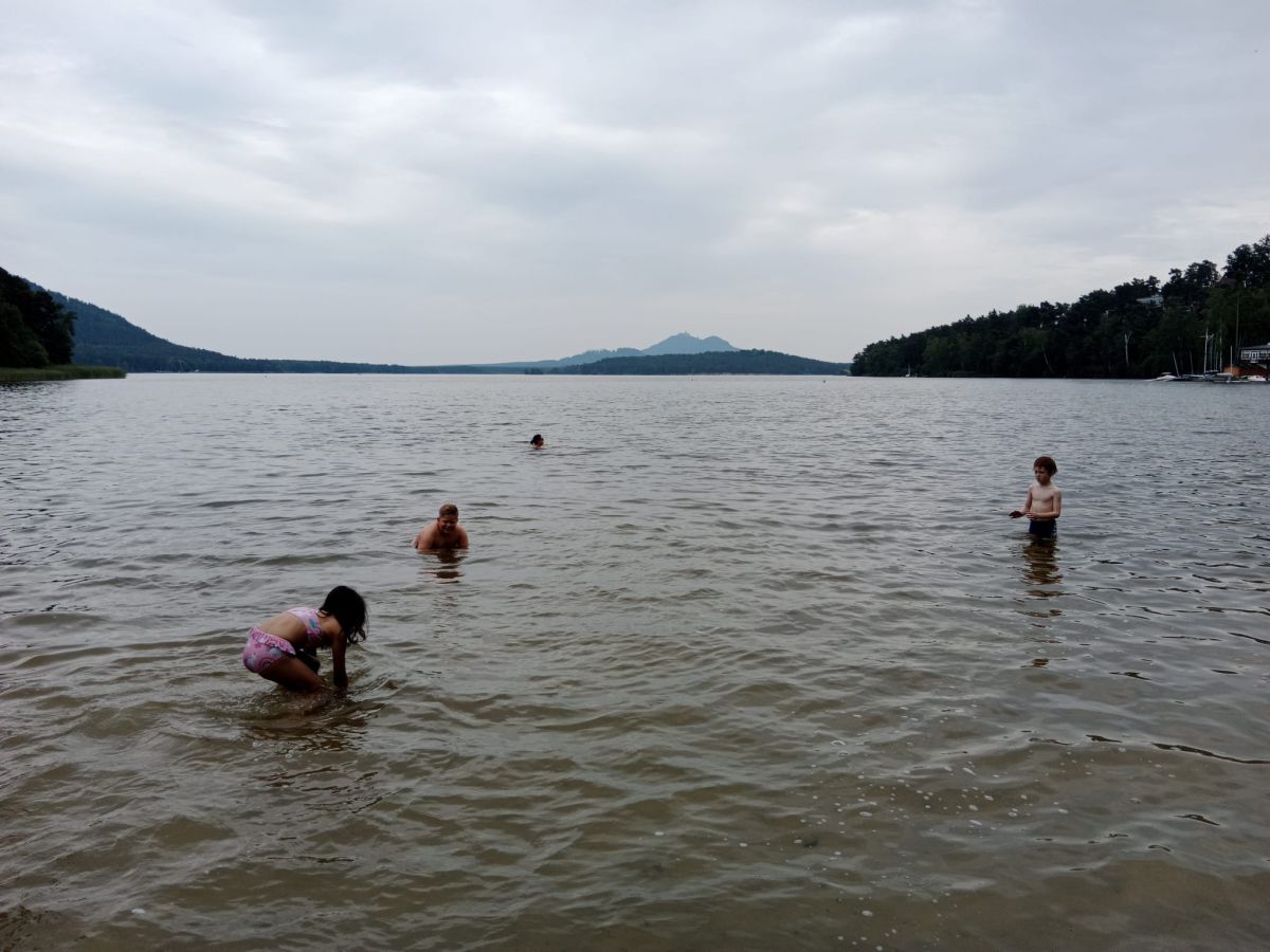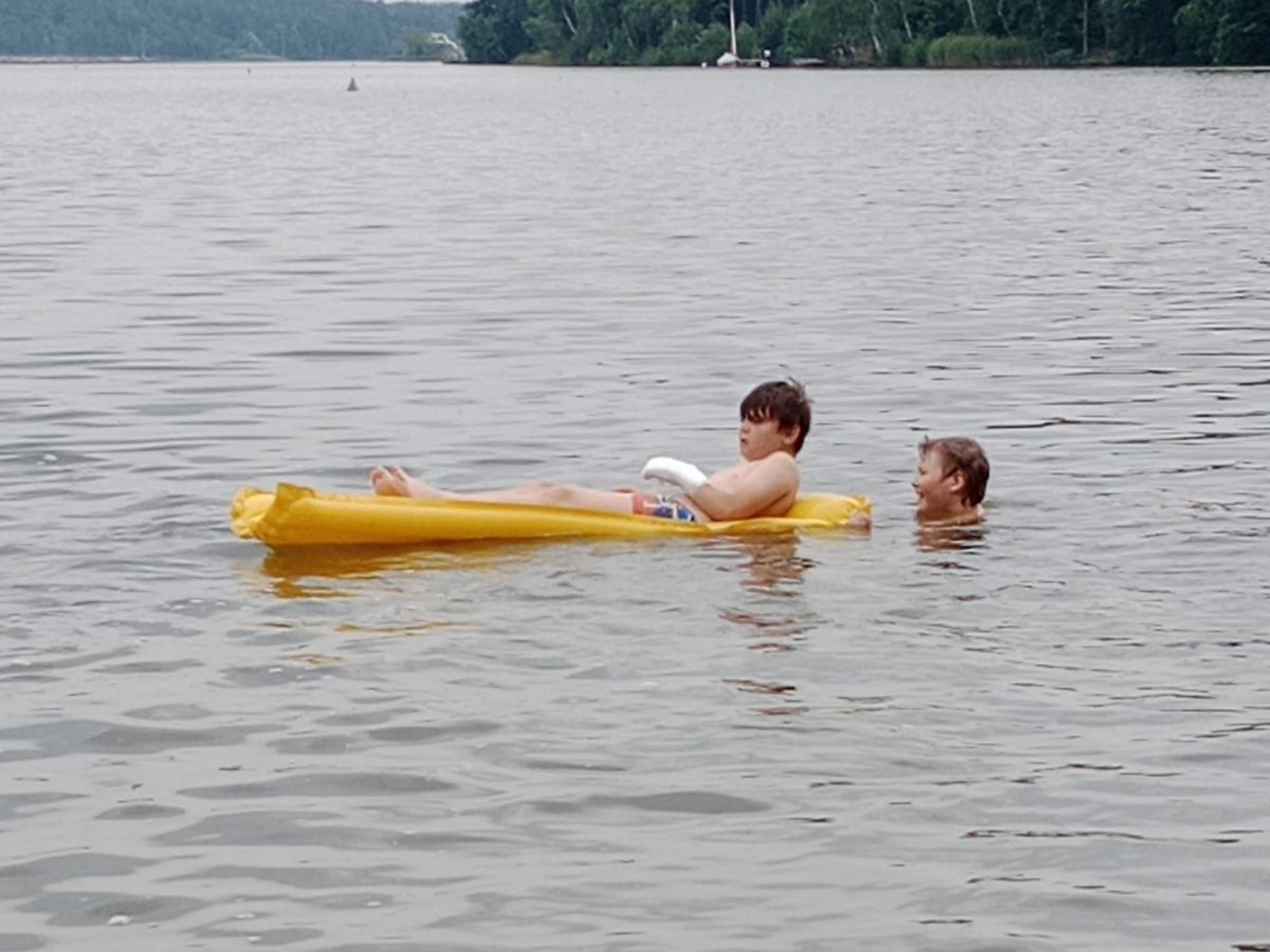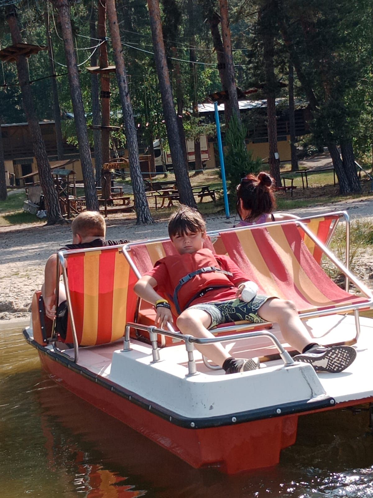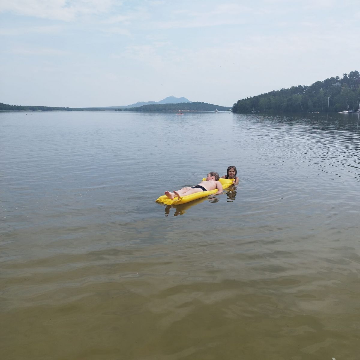 Výlet do Starých Splavů se nám pěkně vydařil. Prošli jsme se jedinečným borovým lesem, kde jsme si natrhali sladké borůvky dokonce i ve společnosti datlů. Po vydatném obědě jsme vyrazili k Máchovu jezeru, kam se děti moc těšily na vodní hrátky a bylo obtížné je dostat z jezera ven. Poté jsme jako správní trempové postavili stany, nasbírali dřevo a uvařili guláš v kotlíku. Večer byl poněkud strašidelný. Děti výtvarně znázornily bytosti, kterých se bojí a také se namaskovaly, aby se mohly vydat na stezku odvahy. Tam na ně čekala strašidla a plnění různých úkolů. Děti byly odvážné a výzvy výborně zvládly. Zkušeně ukořistily poklad a odměnou jim byly medaile a diplomy s pasováním na superhrdiny a nebojsy. Druhý den nám počasí opravdu přálo, tak jsme podnikli vyjížďku na šlapadlech. Výlet jsme si náramně užili. Děkujeme paní Vtipilové za možnost být v malebném prostředí chaty a skvělou spolupráci.