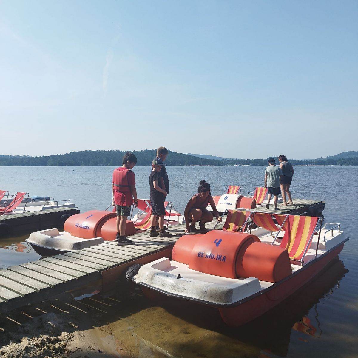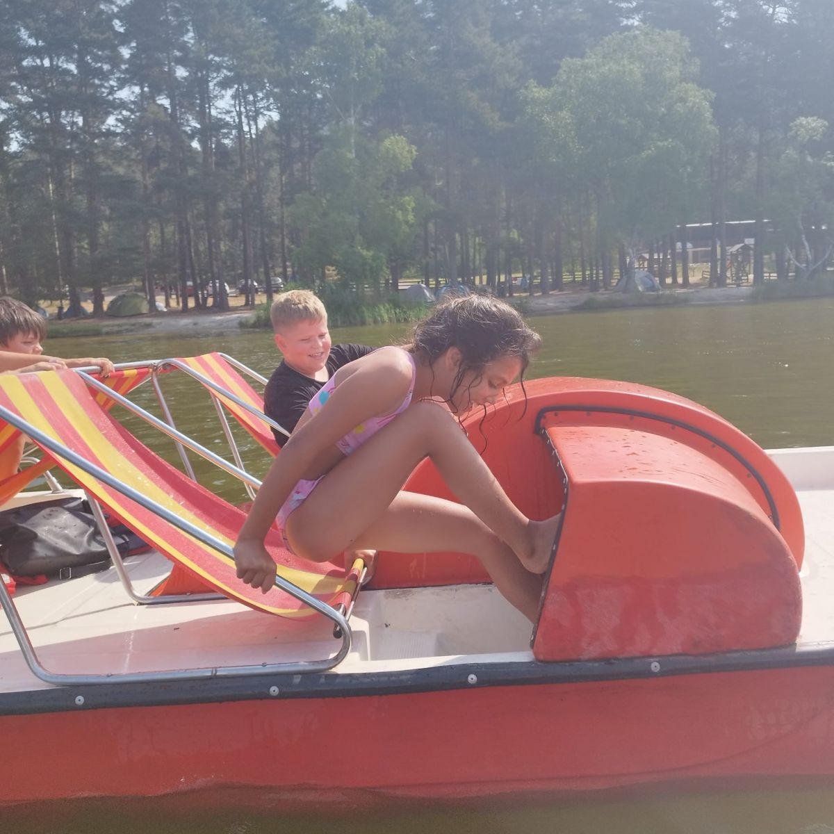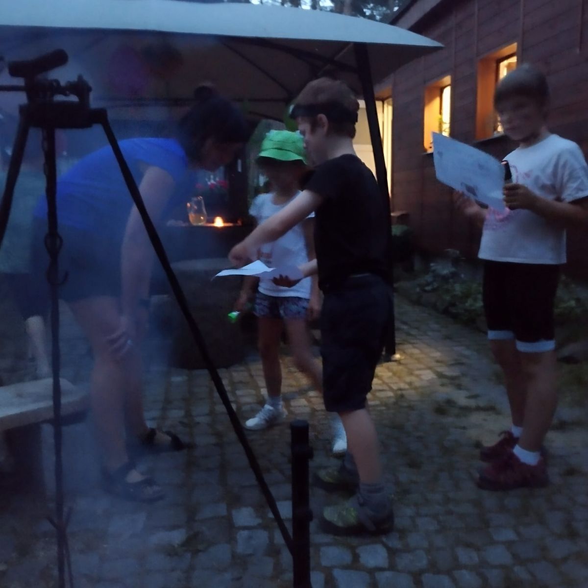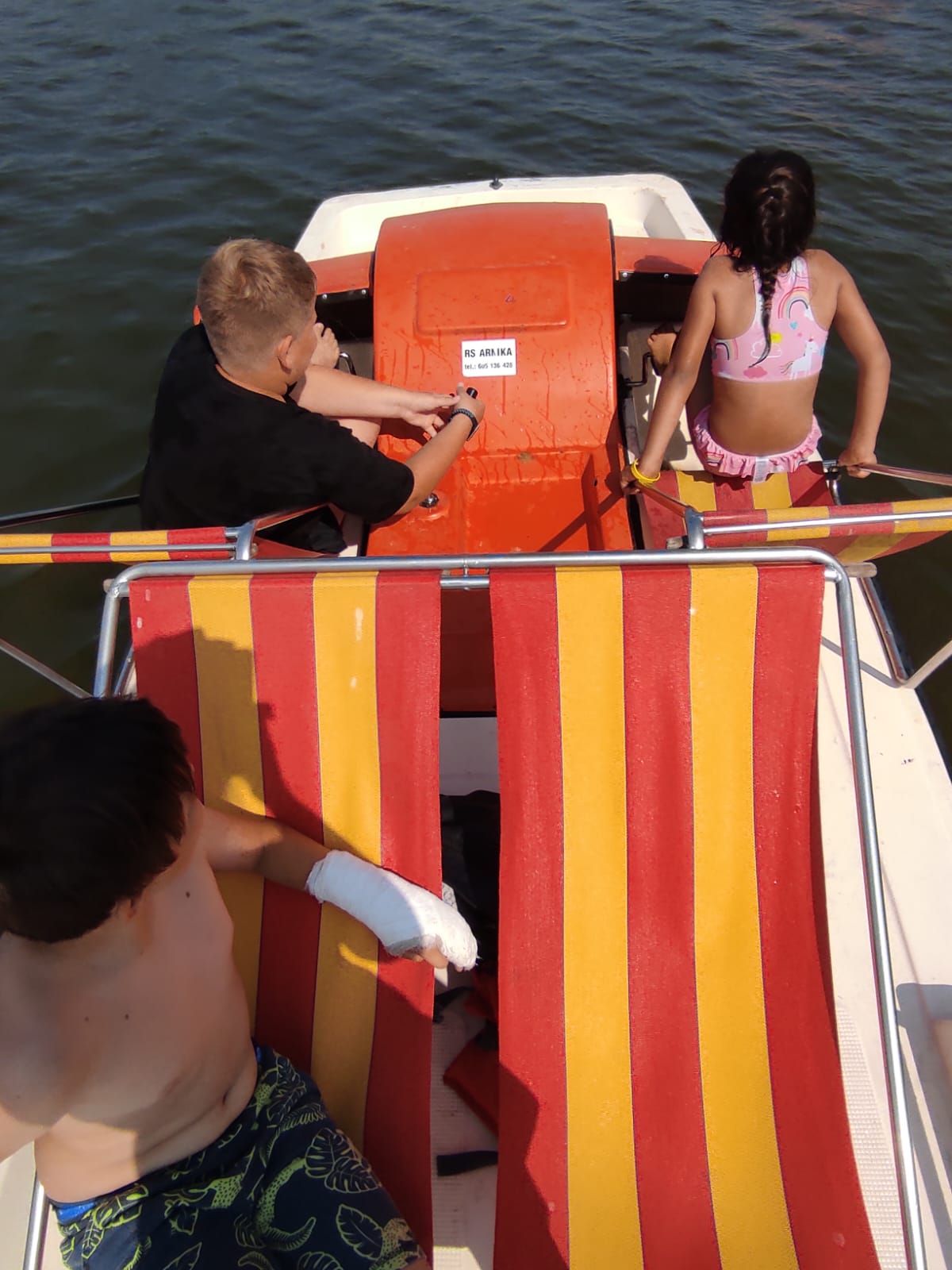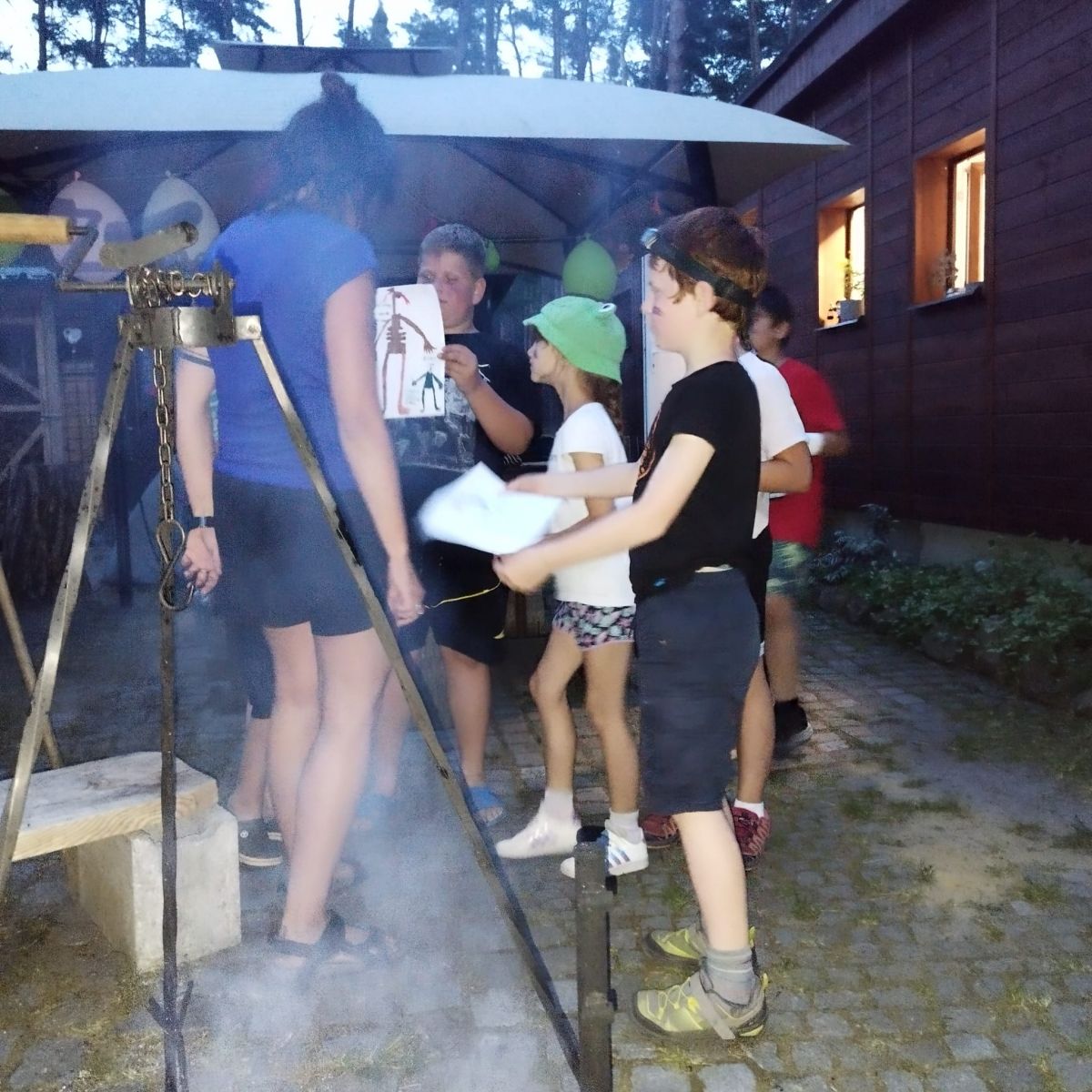 Výlet do Starých Splavů se nám pěkně vydařil. Prošli jsme se jedinečným borovým lesem, kde jsme si natrhali sladké borůvky dokonce i ve společnosti datlů. Po vydatném obědě jsme vyrazili k Máchovu jezeru, kam se děti moc těšily na vodní hrátky a bylo obtížné je dostat z jezera ven. Poté jsme jako správní trempové postavili stany, nasbírali dřevo a uvařili guláš v kotlíku. Večer byl poněkud strašidelný. Děti výtvarně znázornily bytosti, kterých se bojí a také se namaskovaly, aby se mohly vydat na stezku odvahy. Tam na ně čekala strašidla a plnění různých úkolů. Děti byly odvážné a výzvy výborně zvládly. Zkušeně ukořistily poklad a odměnou jim byly medaile a diplomy s pasováním na superhrdiny a nebojsy. Druhý den nám počasí opravdu přálo, tak jsme podnikli vyjížďku na šlapadlech. Výlet jsme si náramně užili. Děkujeme paní Vtipilové za možnost být v malebném prostředí chaty a skvělou spolupráci.