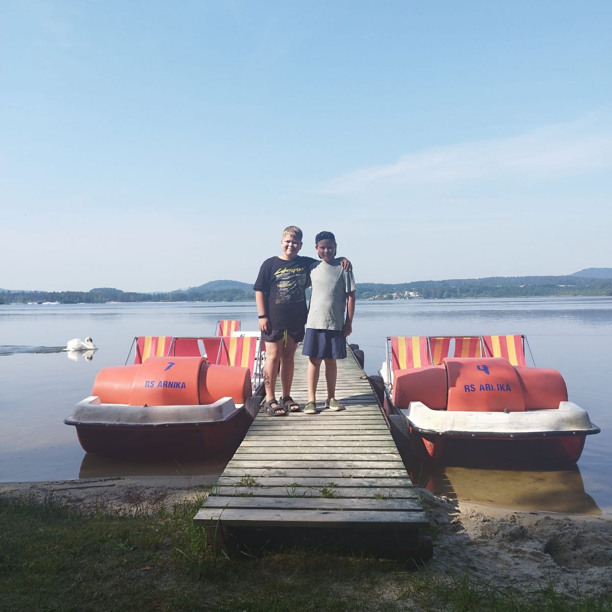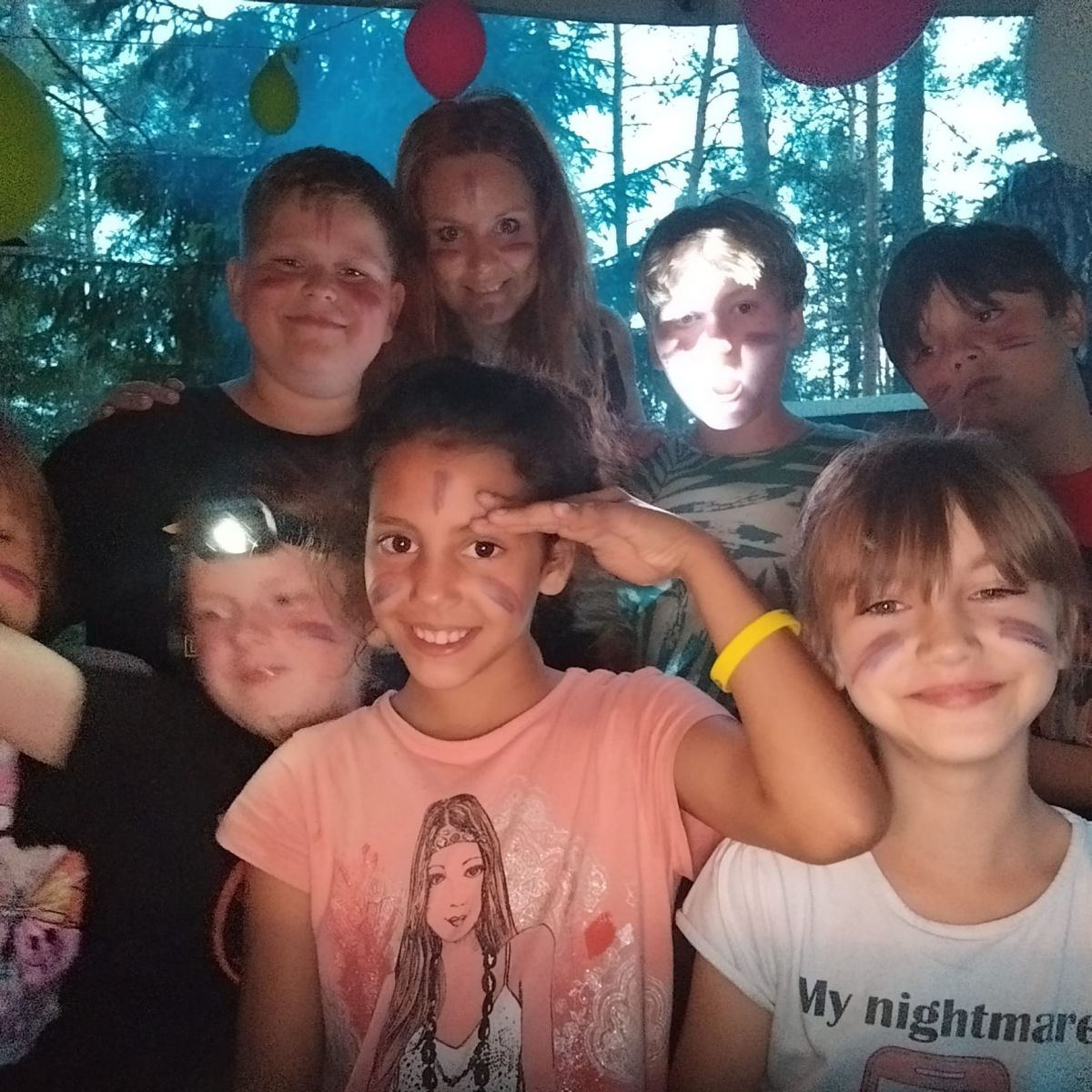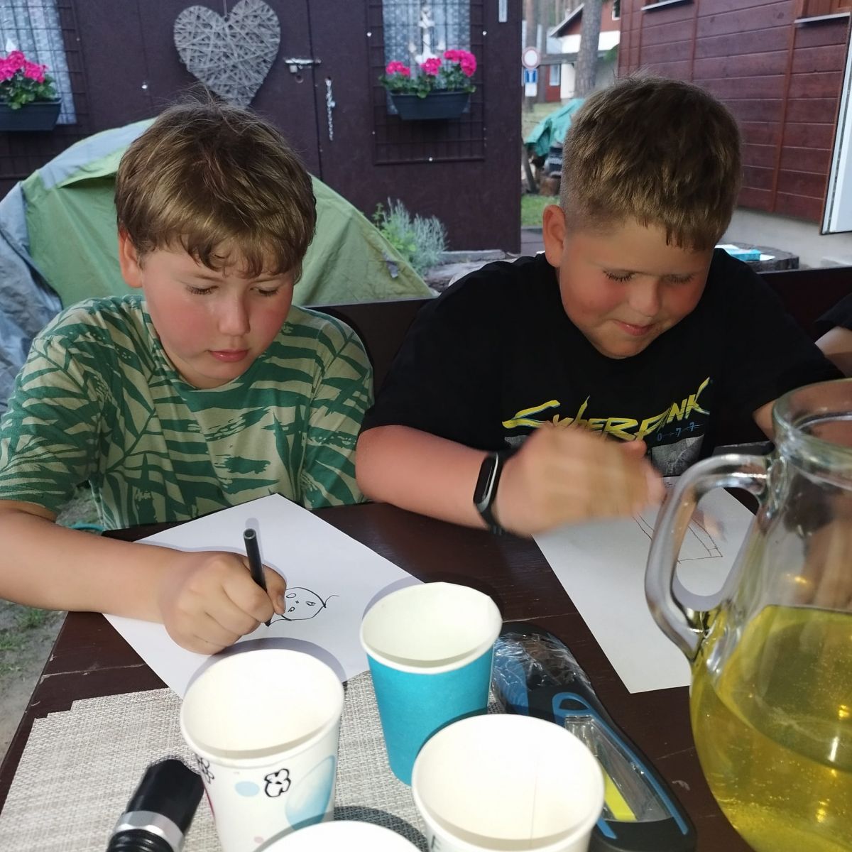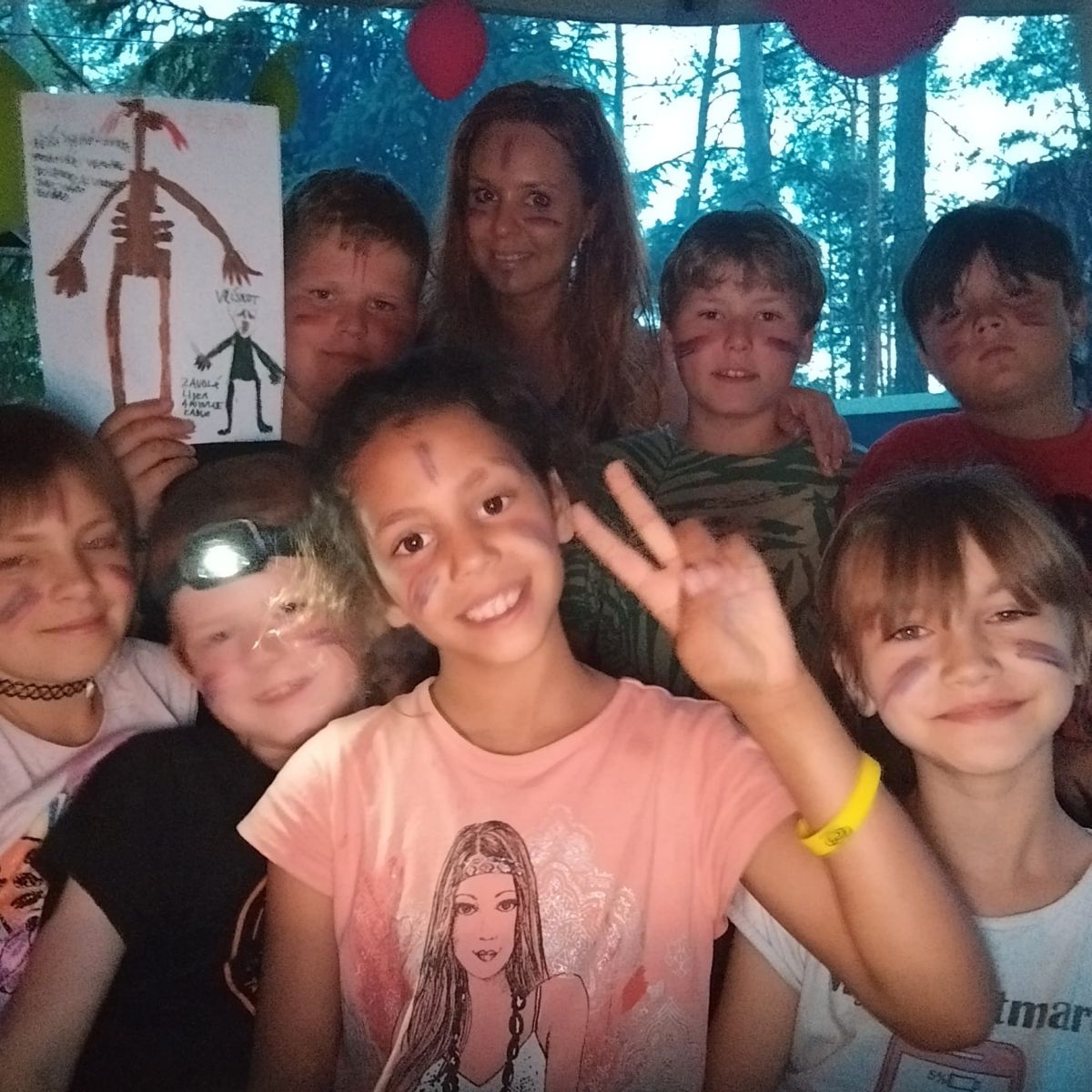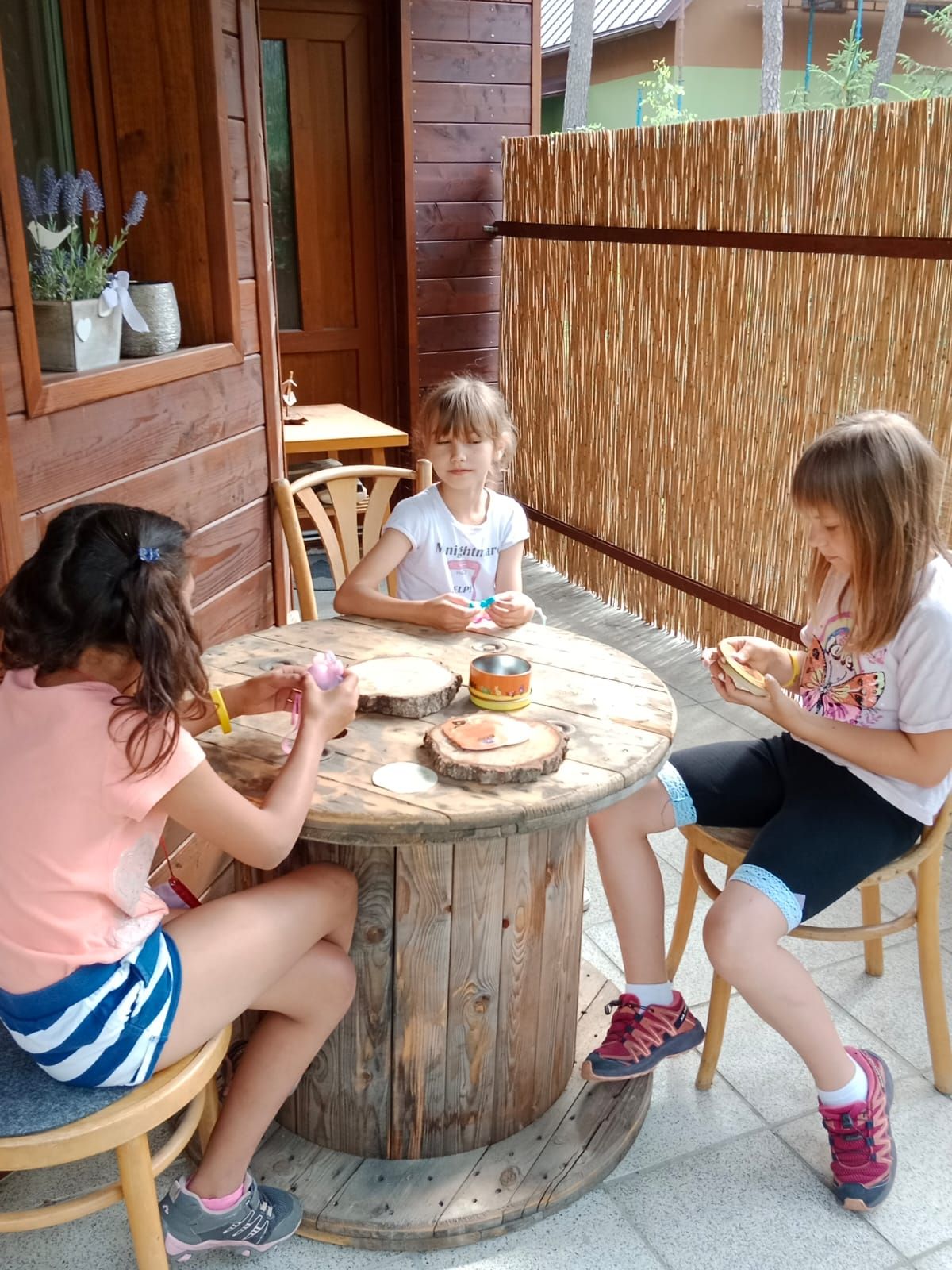 Výlet do Starých Splavů se nám pěkně vydařil. Prošli jsme se jedinečným borovým lesem, kde jsme si natrhali sladké borůvky dokonce i ve společnosti datlů. Po vydatném obědě jsme vyrazili k Máchovu jezeru, kam se děti moc těšily na vodní hrátky a bylo obtížné je dostat z jezera ven. Poté jsme jako správní trempové postavili stany, nasbírali dřevo a uvařili guláš v kotlíku. Večer byl poněkud strašidelný. Děti výtvarně znázornily bytosti, kterých se bojí a také se namaskovaly, aby se mohly vydat na stezku odvahy. Tam na ně čekala strašidla a plnění různých úkolů. Děti byly odvážné a výzvy výborně zvládly. Zkušeně ukořistily poklad a odměnou jim byly medaile a diplomy s pasováním na superhrdiny a nebojsy. Druhý den nám počasí opravdu přálo, tak jsme podnikli vyjížďku na šlapadlech. Výlet jsme si náramně užili. Děkujeme paní Vtipilové za možnost být v malebném prostředí chaty a skvělou spolupráci.