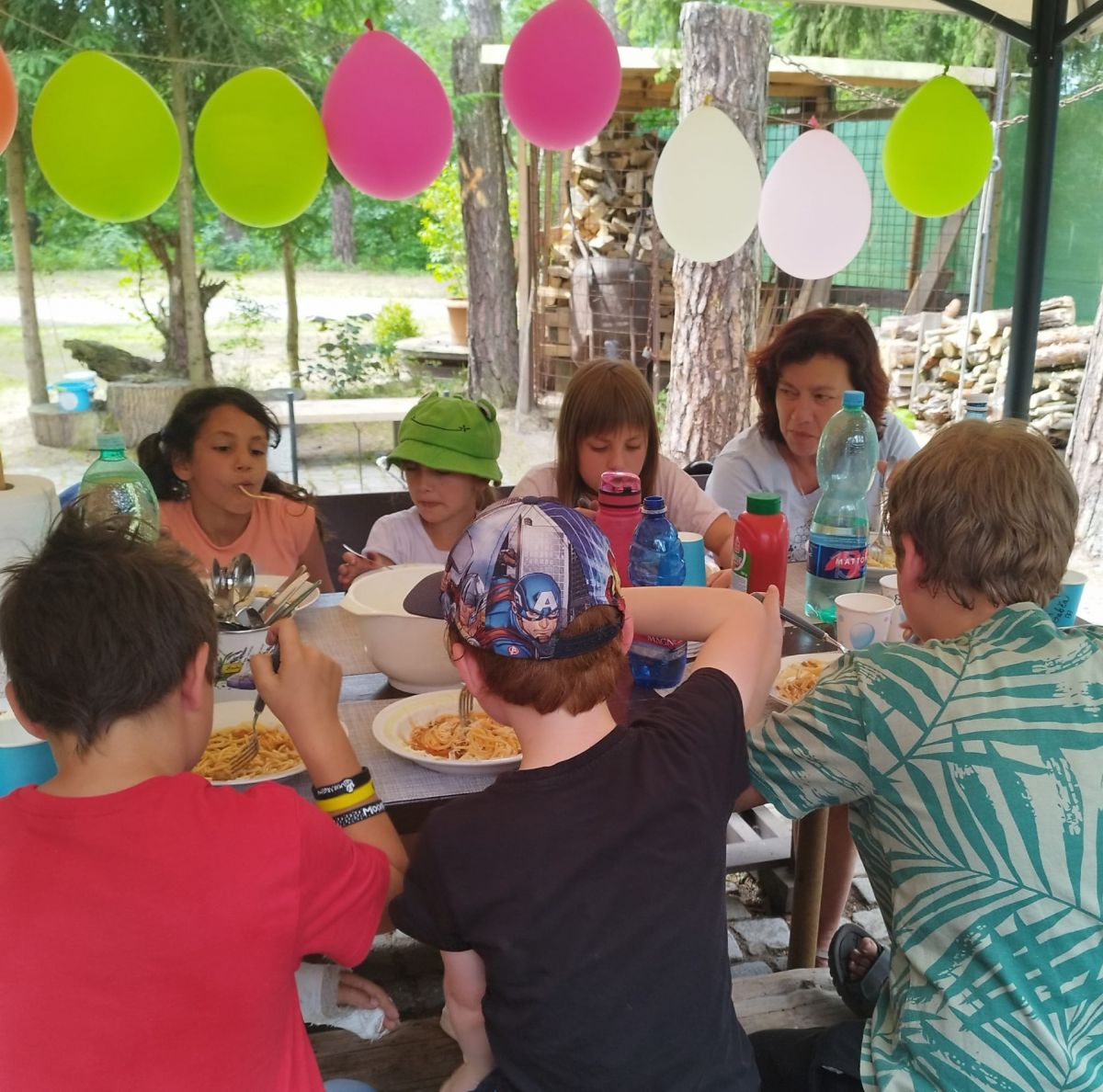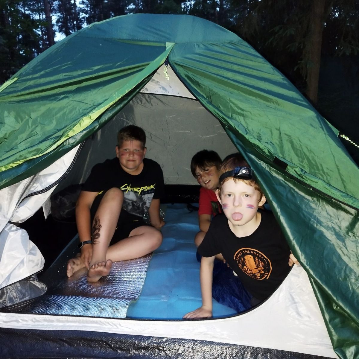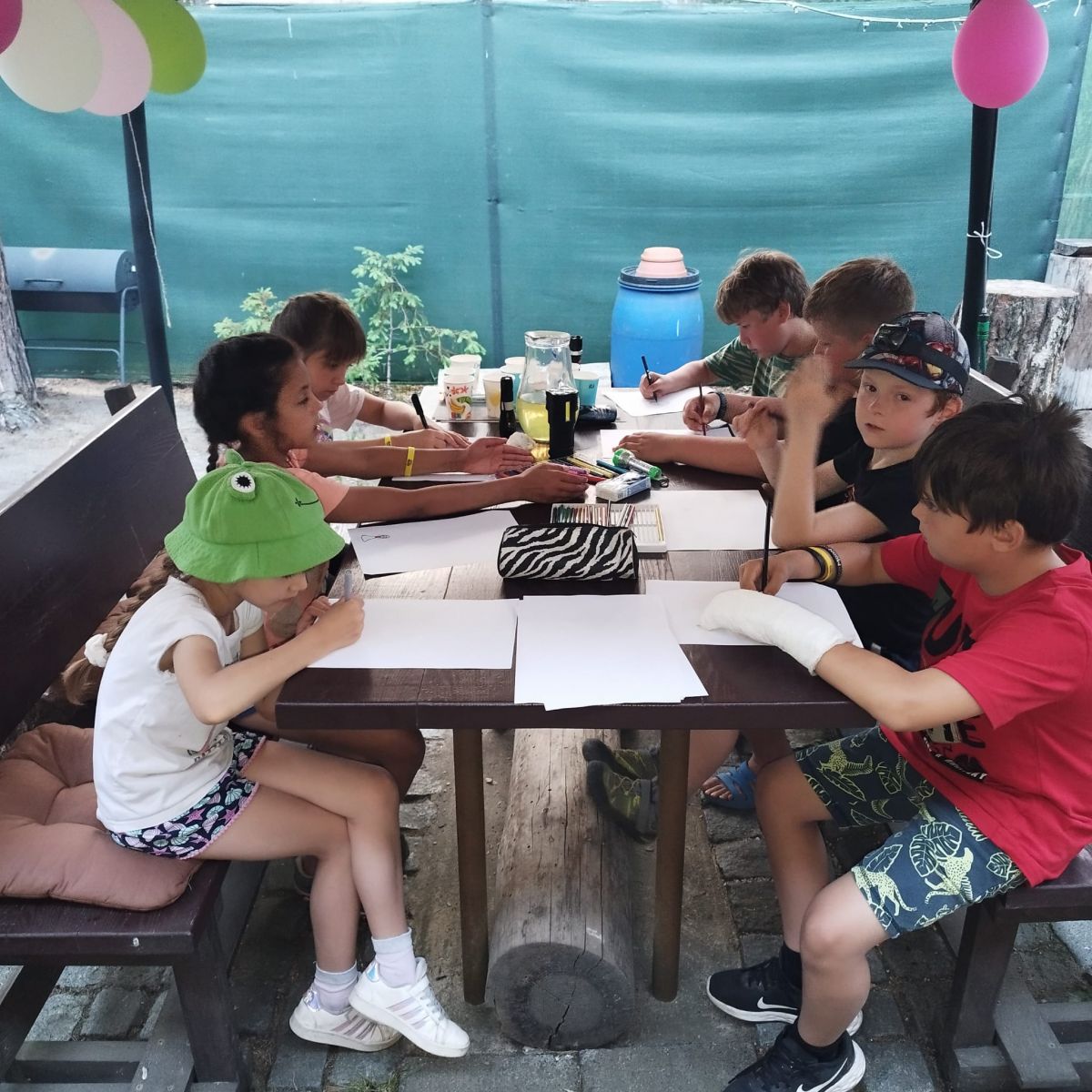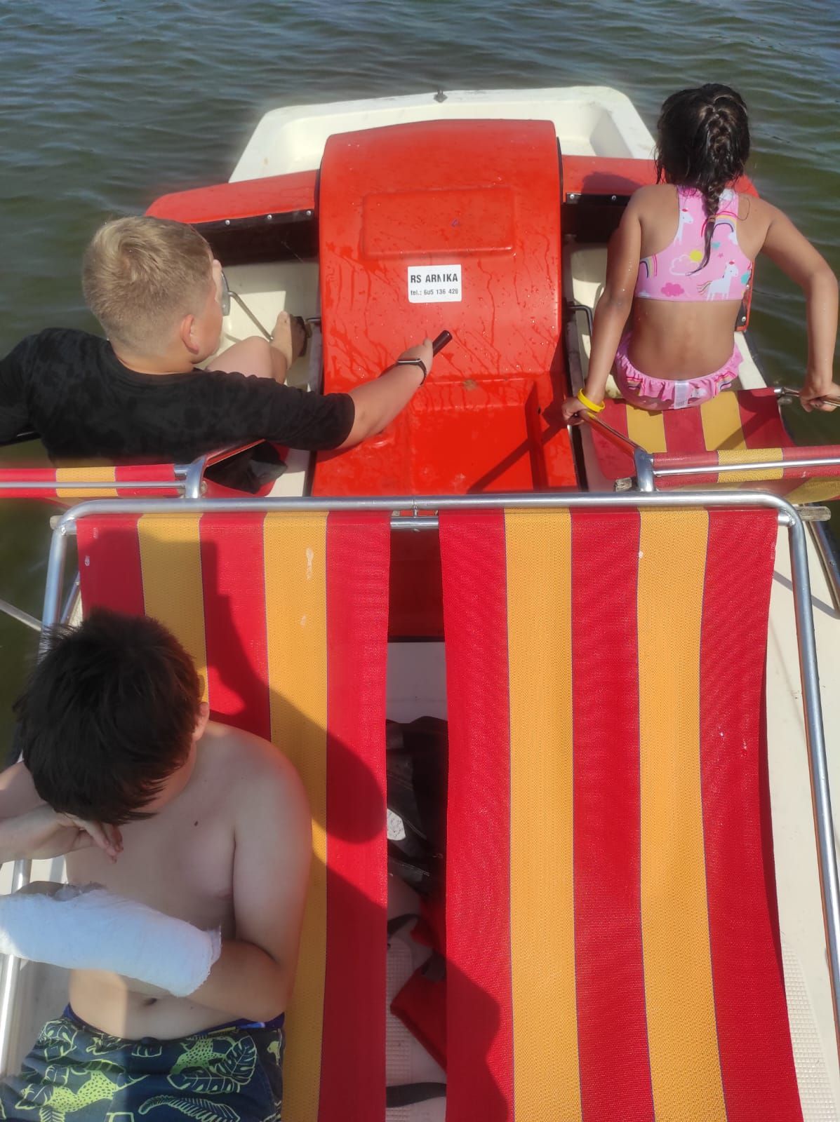 Výlet do Starých Splavů se nám pěkně vydařil. Prošli jsme se jedinečným borovým lesem, kde jsme si natrhali sladké borůvky dokonce i ve společnosti datlů. Po vydatném obědě jsme vyrazili k Máchovu jezeru, kam se děti moc těšily na vodní hrátky a bylo obtížné je dostat z jezera ven. Poté jsme jako správní trempové postavili stany, nasbírali dřevo a uvařili guláš v kotlíku. Večer byl poněkud strašidelný. Děti výtvarně znázornily bytosti, kterých se bojí a také se namaskovaly, aby se mohly vydat na stezku odvahy. Tam na ně čekala strašidla a plnění různých úkolů. Děti byly odvážné a výzvy výborně zvládly. Zkušeně ukořistily poklad a odměnou jim byly medaile a diplomy s pasováním na superhrdiny a nebojsy. Druhý den nám počasí opravdu přálo, tak jsme podnikli vyjížďku na šlapadlech. Výlet jsme si náramně užili. Děkujeme paní Vtipilové za možnost být v malebném prostředí chaty a skvělou spolupráci.