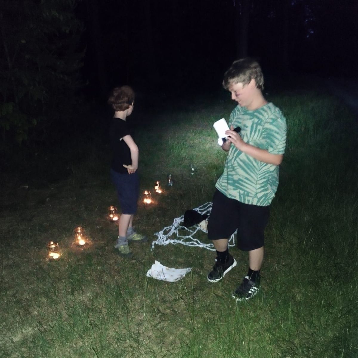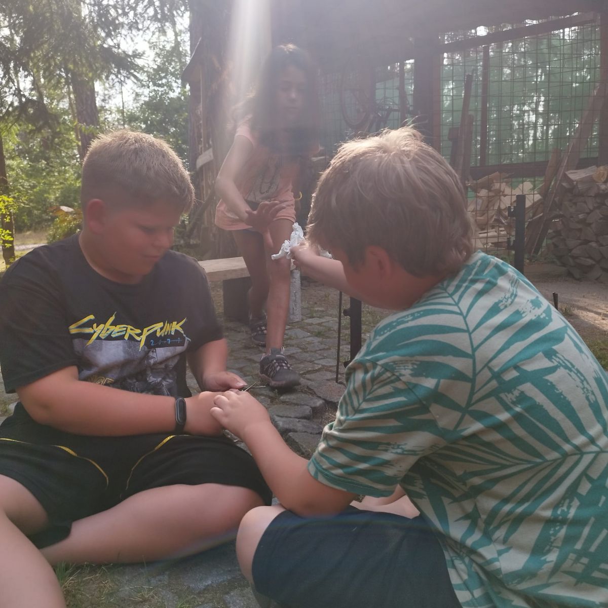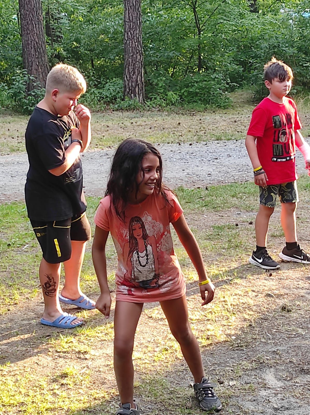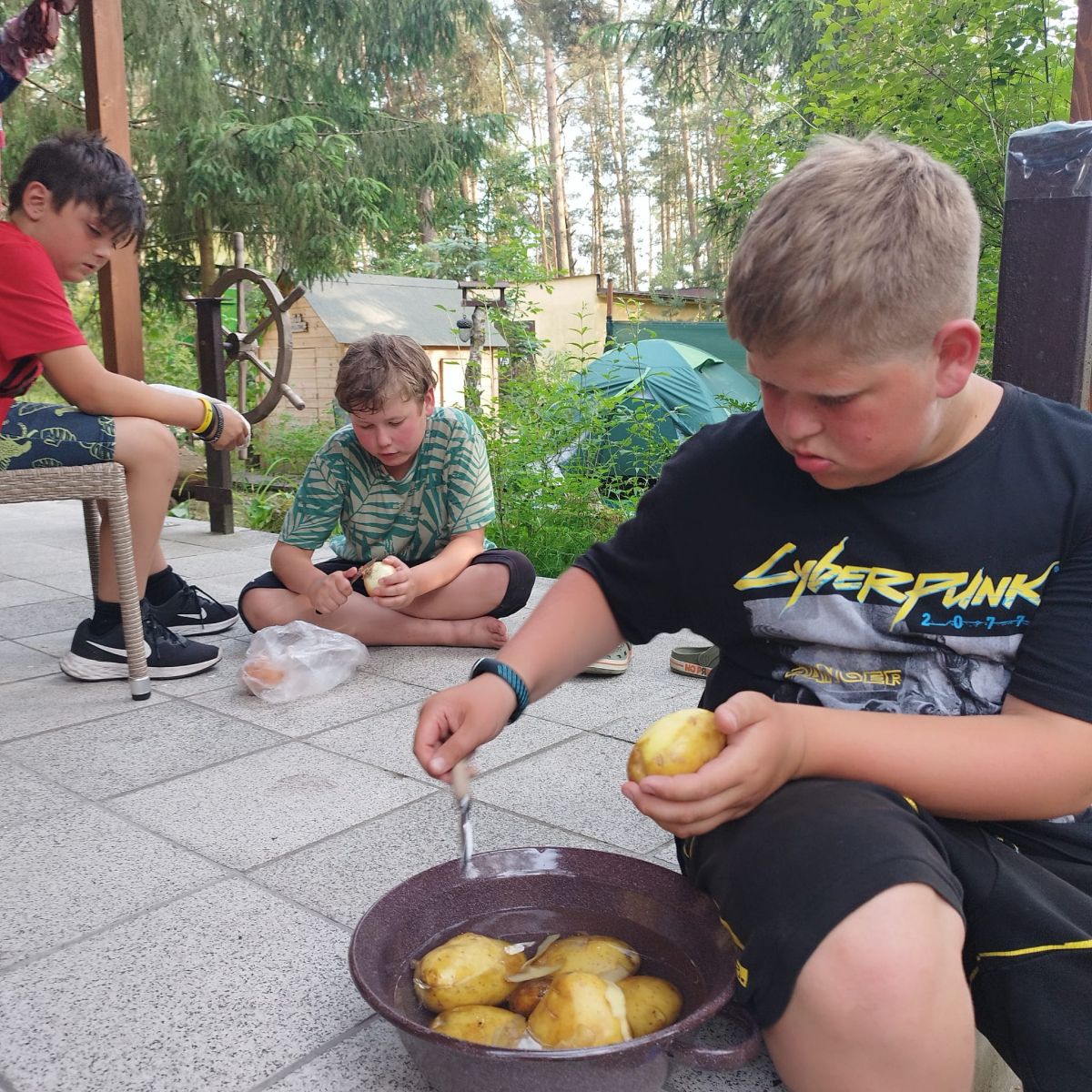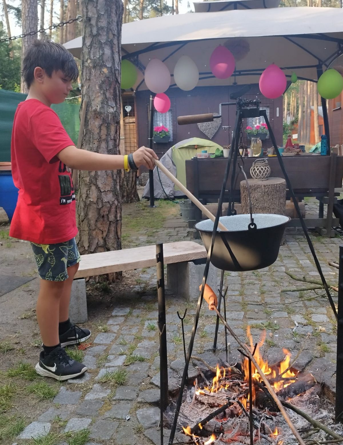 Výlet do Starých Splavů se nám pěkně vydařil. Prošli jsme se jedinečným borovým lesem, kde jsme si natrhali sladké borůvky dokonce i ve společnosti datlů. Po vydatném obědě jsme vyrazili k Máchovu jezeru, kam se děti moc těšily na vodní hrátky a bylo obtížné je dostat z jezera ven. Poté jsme jako správní trempové postavili stany, nasbírali dřevo a uvařili guláš v kotlíku. Večer byl poněkud strašidelný. Děti výtvarně znázornily bytosti, kterých se bojí a také se namaskovaly, aby se mohly vydat na stezku odvahy. Tam na ně čekala strašidla a plnění různých úkolů. Děti byly odvážné a výzvy výborně zvládly. Zkušeně ukořistily poklad a odměnou jim byly medaile a diplomy s pasováním na superhrdiny a nebojsy. Druhý den nám počasí opravdu přálo, tak jsme podnikli vyjížďku na šlapadlech. Výlet jsme si náramně užili. Děkujeme paní Vtipilové za možnost být v malebném prostředí chaty a skvělou spolupráci.